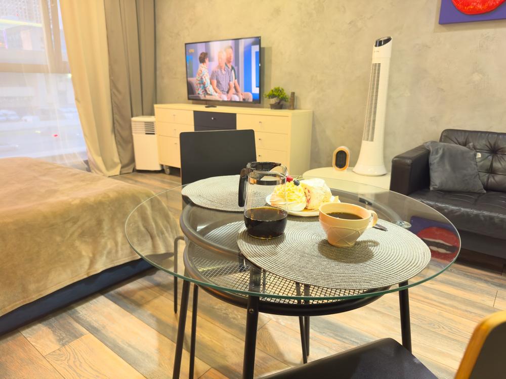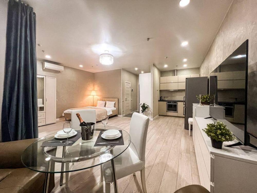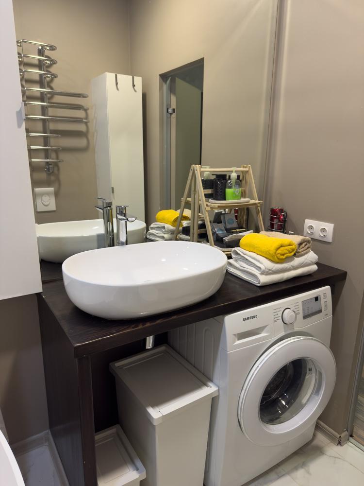Дорогие гости! В квартире есть все необходимое для проживания: постельное бельё, гигиенические принадлежности, полотенца, стиральная машинка, посудомоечная машина, холодильник, кондиционер, необходимая посуда, ТВ и вай-фай. Окна выходят во внутренней двор.