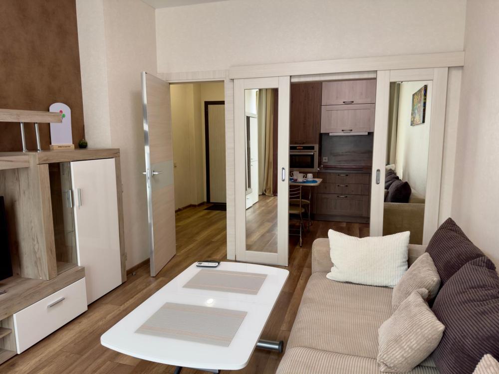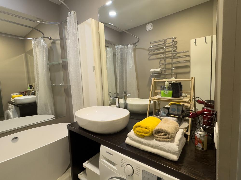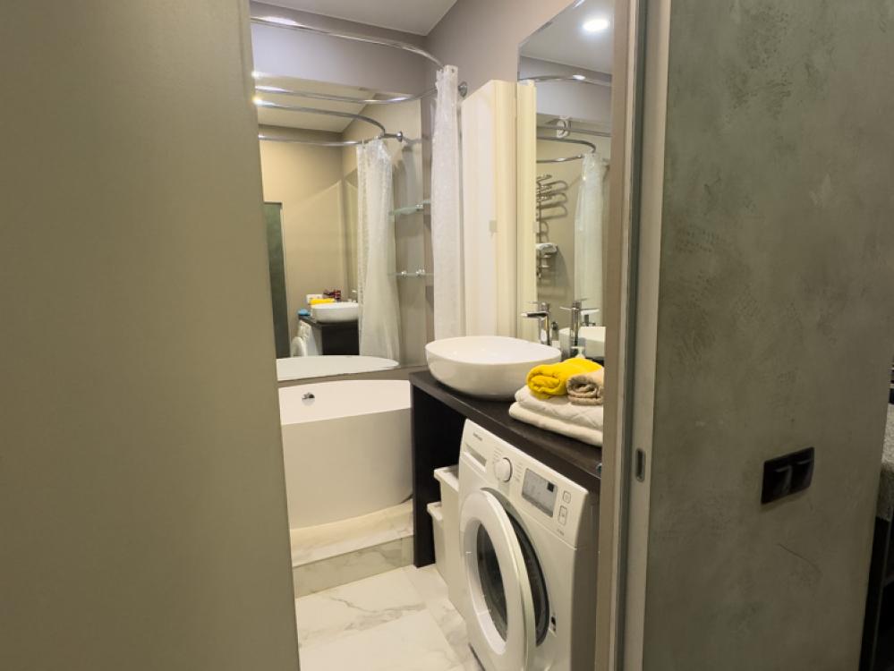 Дорогие гости! В квартире есть все необходимое для проживания: постельное бельё, гигиенические принадлежности, полотенца, стиральная машинка, посудомоечная машина, холодильник, кондиционер, ТВ и вай-фай. Окна выходят во внутренней двор.