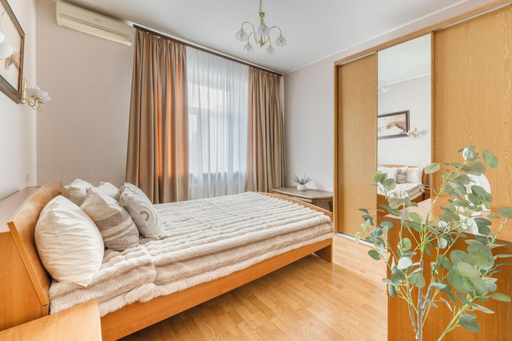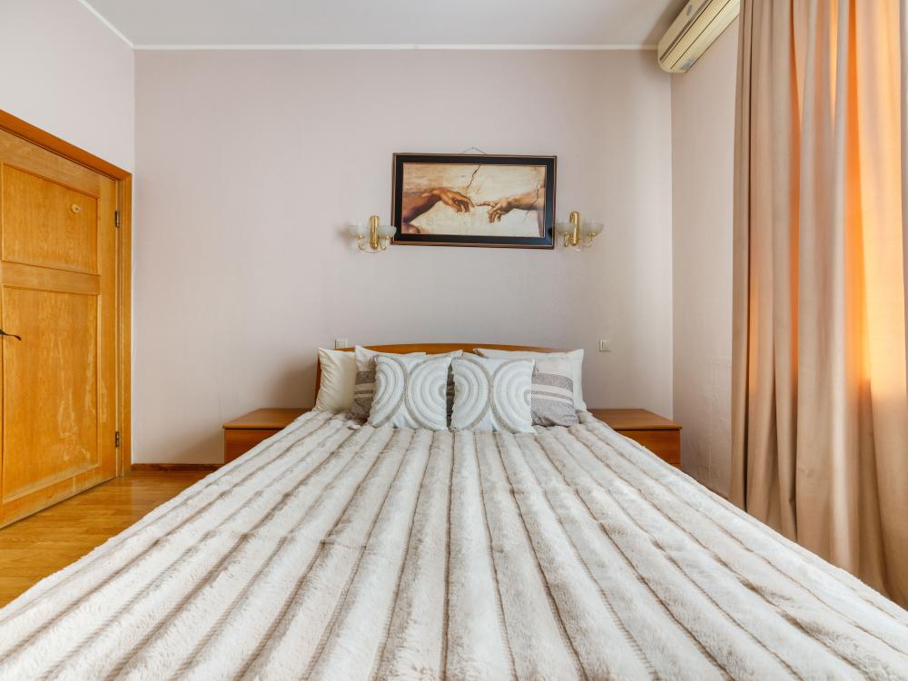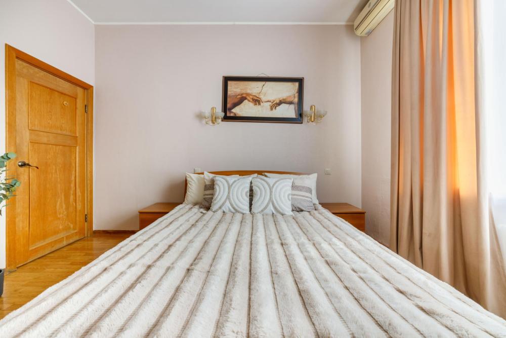 Двухкомнатная квартира в центре Москвы, в доме сталинской постройки, в шаговой доступности от метро Киевская. Большая, светлая, просторная квартира с качественным ремонтом. Охраняемая территория дома, большой светлый подъезд, высокие потолки, изолированные комнаты. Апартаменты расположены на 2 этаже. Поблизости находятся магазины, аптека, кафе, рестораны, набережная, большой торговый центр Европейский. Шесть минут пешком от станции метро Киевская, 10 минут на метро до Арбата, 15 минут до Красной Площади, улицы Тверской и прочих центральных достопримечательностей. Возможно комфортное размещение до 5 человек, 3 отдельных спальных места: две двуспальные кровати, диван. В апартаментах в есть вся необходимая посуда и бытовая техника: холодильник, микроволновая печь, посудомоечная машина, тостер, электрочайник, 2 телевизора, утюг, фен, безлимитный интернет.