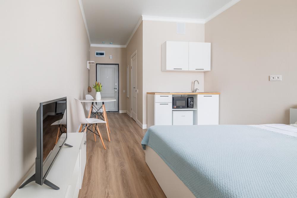 Студия от ArendaGrad. В студии: двуспальная кровать. Для удобства: кабельное тв, идеальное состояние и чистота квартиры, чистое и качественное постельное белье, удобные кровати, полотенца, набор средств личной гигиены, фильтр для воды, холодильник, плита, микроволновка, телевизор, стиральная машина, фен. Есть все необходимые предметы для комфортного проживания. Не сдается под мероприятия Не сдаётся лицам младше 21 года