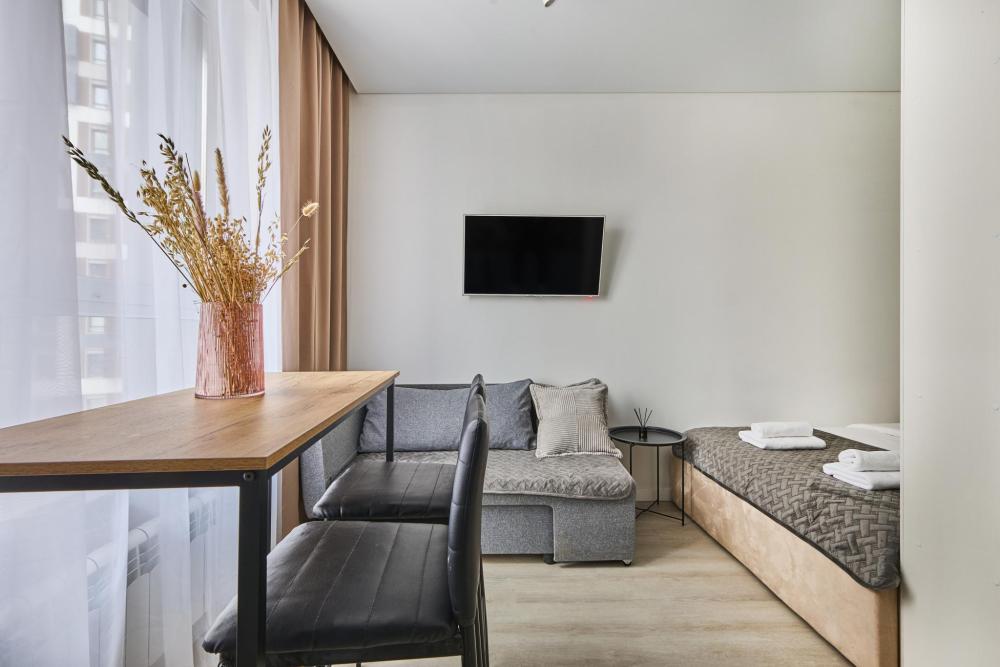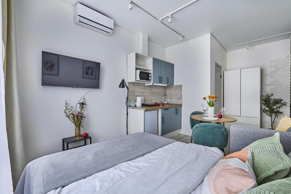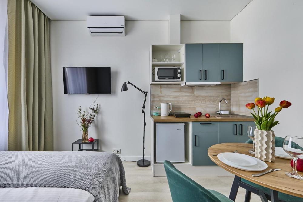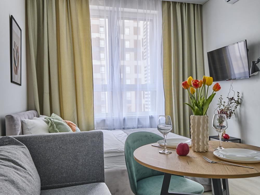 КОМФОРТ И УДОБСТВА ДЛЯ ВАС: - комфортная двуспальная кровать застелена свежим бельем, - односпальный диван, - TV с широким выбором каналов и фильмов, - безлимитный интернет для работы и отдыха, - удобная обеденная и кухонная зона с набором посуды, плитой, микроволновой печью - стиральная машина, гладильные принадлежности - фен, полотенца, шампунь, гель для душа, кондиционер для волос - зубной набор, тапочки, полотенца для каждого гостя