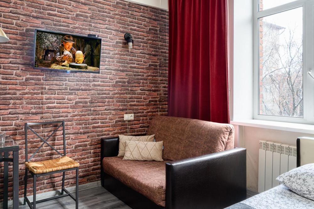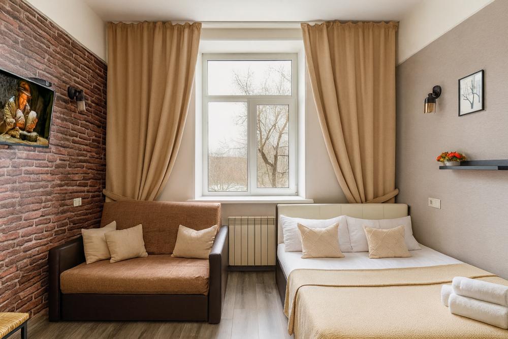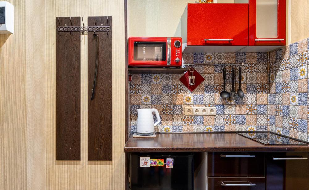 Уютная двухуровневая студия с дополнительным спальным местом на 2-ом этаже. К удобству гостей: - постельное белье, полотенца, ср-ва гигиены - кухонные принадлежности, фен, утюг, гладильная доска, сушилка - ТВ-плазма, wi-fi