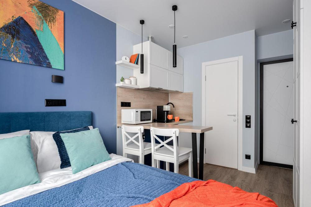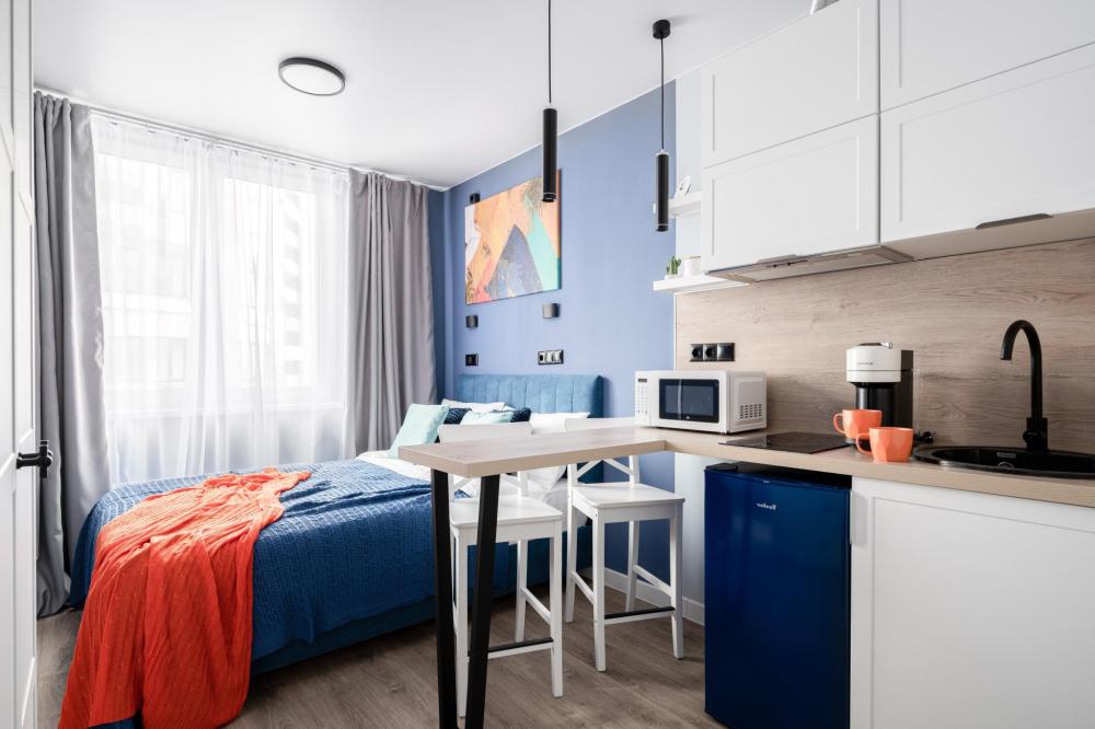 Уютные апартаменты в Сколково. Апартаменты находятся в шаговой доступности от Инновационного центра Сколково и МТС Арены . Современная и функциональная студия с свежим ремонтом, идеально подходящую для деловой поездки и комфортного отдыха. В шаговой доступности: Инновационный центр Сколково, МТС Арена, Парк наук имени Жореса Алферова; Сетевые магазины; Кофейни и рестораны. В квартире: Просторная двуспальная кровать с качественным ортопедическим матрасом и комплектом постельного белья. Полностью оборудованная кухня-гостиная:Холодильник , варочная панель, микроволновая печь, электрочайник. Полный набор посуды и кухонных принадлежностей.Чай, кофе. Высокоскоростной Wi-Fi. Стиральная машина, утюг и гладильная доска. Просторная ванная комната с тропическим душем и набором косметики (гель, шампунь, кондиционер, зубные щетки, тапочки).Полный комплект полотенец для каждого гостя. Кондиционер для создания идеального микроклимата. Доступна бесплатная парковка рядом с домом.