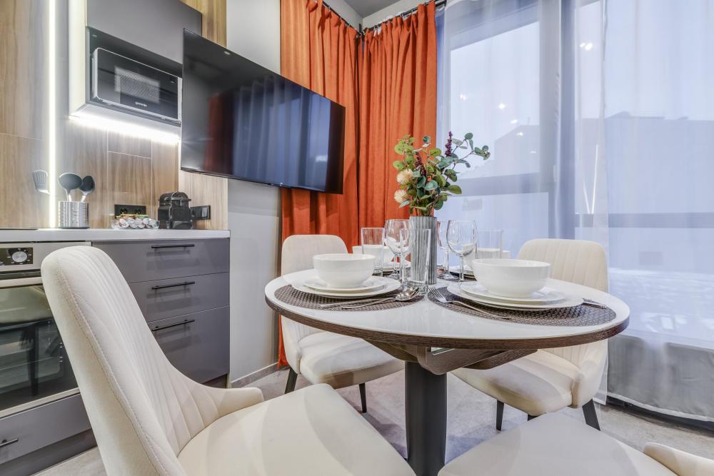 Замечательная квартира-студия рядом с парком. Премиальный ремонт и современная мебель. Метро ЦСКА - 1 минута пешком. Круглосуточное бесконтактное заселение. Отчетные документы. Высокий рейтинг по отзывам гостей. Идеально подходит бизнесменам, туристам, семьям с детьми и романтическим парам. Добро пожаловать в новую квартиру-студию Бизнес-класса "ЖК Лайнер" с охраняемой территорией. Парковка – бесплатная и платная. Удобства: - двуспальная кровать и раскладной диван. Белоснежное постельное бельё; - Wi-Fi, кабельное ТВ, кондиционер; - рабочее место; - в зоне кухни: кофемашина Nespresso, посудомоечная машина, духовой шкаф, электрочайник, вытяжка, посуда для приготовления и приема пищи, чай, кофе, сахар, соль; - в ванной комнате: душевая кабина, фен, стиральная машина, комплекты полотенец, тапочки, зубные щетки, жидкое мыло, гель для душа, шампунь, стиральный порошок; - утюг, гладильная доска, сушилка для белья, рожок для обуви, сушилка для обуви и другие мелочи. Преимущества: - все фото соответствуют действительности; - отчетные документы командировочным; - идеальная чистота; - высокий рейтинг по отзывам гостей; - скидки при долгосрочном бронировании. Расположение: До "Москва-сити" и "Экспо-центра" 10-12 минут на метро. На такси до Кремля 15-20 минут, Аэропорт "Шереметьево" 25-30 минут . Недалеко от комплекса находится Дворец спорта «Мегаспорт», Спорткомплекс “ЦСКА”, стадион “Динамо”, концертный зал “Adrenaline Stadium”. В шаговой доступности огромный супермаркет Европы «Авиапарк» с кинотеатром, фитнесом, фуд-кортом, ледовым катком, гипермаркет Ашан, Hoff,Obi. Правила: - Время заселения - с 14.00, расчетное время (время отъезда) - 12.00 - Круглосуточное бесконтактное заселение. - Для регистрации заезда необходим паспорт. - Страховой депозит 3000 руб. возвращается после уборки в день выезда. - Аренда халата 500 руб. за 1 шт. - Курение и проведение вечеринок в квартире запрещено. - Нельзя шуметь с 22.00 до 09.00 ч. Звоните! Рады гостям!
