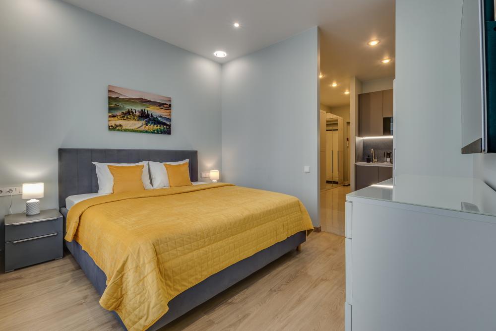 Добро пожаловать в стильные апартаменты-студию с дизайнерским ремонтом в ЖК "Headliner". Замечательная квартира-студия расположена в самом центре Москвы через дорогу от станции метро Шелепиха, напротив Москва Сити До Делового центра Москва сити можно добраться буквально за 5 минут. Круглосуточное бесконтактное заселение. Отчетные документы. Рядом с домом есть продуктовые магазины (Вкусвилл) и несколько пекарен, аптеки, почта и библиотека. Легко добраться до аэропорта Шереметьево - 10 минут на машине до белорусского вокзала, далее на экспрессе. Удобства: - двуспальная кровать с матрасом king size 180*200, белоснежное постельное белье отельного качества; - Wi-Fi, Google TV, кондиционер; - рабочее место; - в зоне кухни: кофемашина Xiaomi, посудомоечная машина, духовой шкаф, СВЧ печь, электрочайник, вытяжка, посуда для приготовления и приема пищи, чай, кофе, сахар и соль;- в ванной комнате: душевая кабина, фен, стиральная машина, комплекты полотенец, тапочки, зубные щетки, жидкое мыло, гель для душа, шампунь, стиральный порошок;- утюг, гладильная доска, сушилка для белья, рожок для обуви, сушилка для обуви и другие необходимые мелочи.