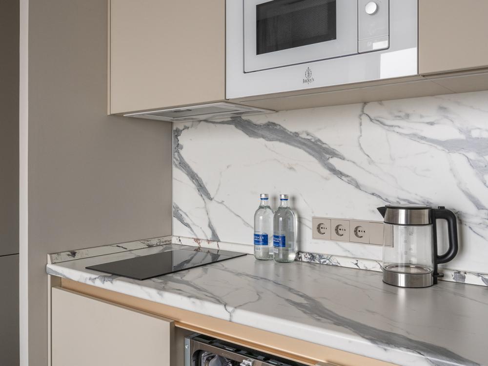 Мы предлагаем Вам наши стильные апартаменты рядом с Москва-Сити. Если Вы полны энергии и стремитесь покорять вершины, то эта квартира в современном стиле точно придётся Вам по душе... Площадь апартаментов составляет 24 кв. м. Характеристики: В квартире имеется одно двуспальное комфортное место - 140х200, которое представляет собой полноценную кровать - трансформер с удобным матрасом, опускается из ниши. В собранном виде кровать компактна, что экономит нам полезную площадь и место превращается в большую гостиную зону. Для проведения досуга есть wi-fi, телевизор (smart-tv) и книги. В вашем пользовании также кондиционер, холодильник, электрический чайник, турка, электроплита, СВЧ, посудомоечная машина, стиральная машина, фен, утюг (+ гладильная доска и сушилка для одежды). А тёплый пол в ванной комнате обеспечит Вам дополнительный комфорт! Для наших гостей мы предоставляем свежие полотенца, тапочки, набор гигиенических средств (мыло, шампунь, гель для душа, зубная щетка и паста). В кухонной зоне есть вся необходимая для приготовления и приема пищи посуда. При заселении вас ждёт наш приветственный набор: вода, чай и кофе! Инфраструктура: Здание находится под круглосуточной охраной и видеонаблюдением общественных зон. Есть возможность заезжать на подземный паркинг для разгрузки (пропуск заказывать заранее у нашего администратора). Рядом с комплексом есть бесплатная и платная парковка. Во дворе комплекса имеется большая, красивая детская площадка. Всего в 7-и минутах пешком располагается комплекс Москва- Сити с большим торгово-развлекательным комплексом «Афимолл», а также небоскрёбами с офисными пространствами!!! Вечером можно погулять вдоль набережной Москва реки. Это один из самых зелёных районов — почти треть его территории занимают парки: Филёвский, Парк Победы, парки Красная Пресня и Красногвардейские пруды, Серебряный Бор с несколькими благоустроенными пляжами — доехать до них на автомобиле можно за 10–12 минут. Область вокруг ЖК входит в территорию, известную как «Большой Сити». Транспортная доступность: Для автомобилистов есть выезд на 3-ю Магистральную улицу (около 2 км от жилого комплекса, 5 минут за рулём), по ней можно быстро добраться до Третьего транспортного кольца или Звенигородского шоссе. До Садового кольца можно доехать за 13 минут, до МКАД — за 15 минут. Ближайшая станция метро — «Шелепиха» Большой кольцевой линии и МЦК. Добраться до станции можно пешком за 7 минут (940 м.) Также рядом с комплексом есть автобусные остановки «Романовская школа», «Причальный проезд» и «Шелепихинское шоссе», но магистральные маршруты здесь не ходят. Если выйти на Шмидтовский проезд, можно доехать до Белорусского вокзала — пройти чуть дальше станции «Шелепиха» и сесть на автобус № 366. Правила проживания: - заезд после 15:00, выезд до 12:00; - вечеринки запрещены; - курение запрещено; При длительном проживании возможны скидки %. При заселении взимается страховой депозит в размере 5 000 руб. (возвращается в день выезда), заполняется онлайн-договор на проживание. Для командированных сотрудников можем предоставить отчетные документы для бухгалтерии и выставить счет на компанию. Заселение в данные апартаменты возможно до 22 00, остальное время обсуждается индивидуально. Администратор на связи с 9.00 часов до 21.00 часов. В наших апартаментах действует круглосуточно
