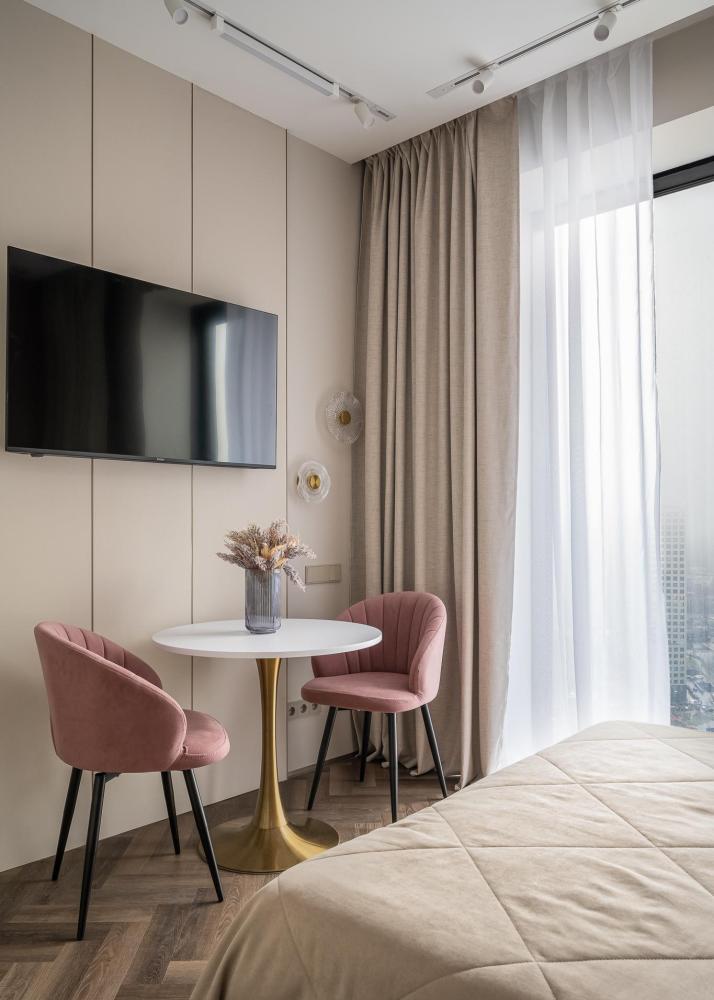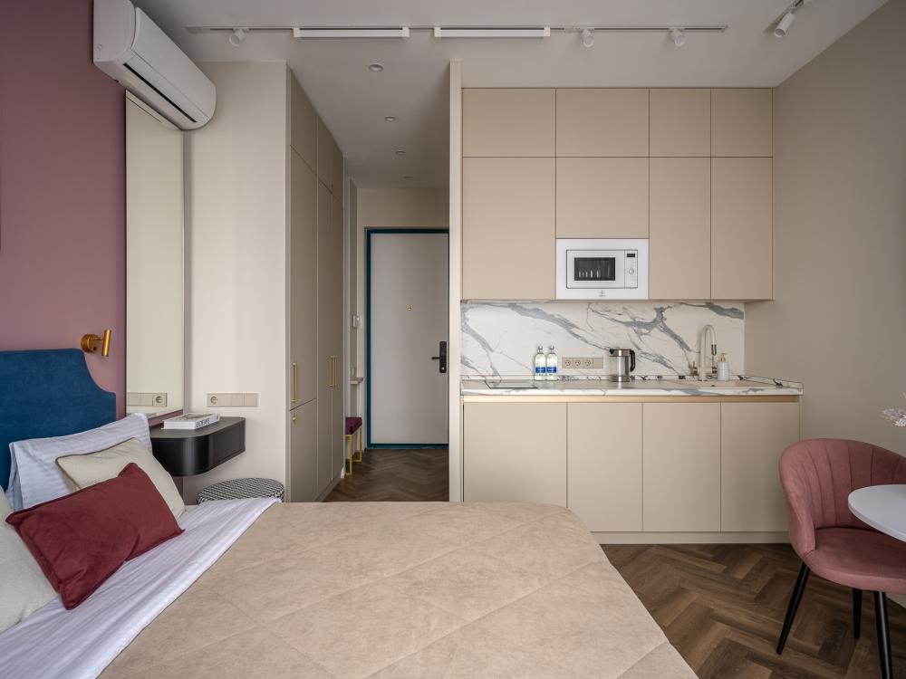 Приглашаем Вас в нежные, утонченные апартаменты возле Москва-сити с потрясающим видом на р. Москва и мост Академика Королева, наслаждаться которым можно прямо с кровати через светлые панорамные окна! Площадь апартаментов составляет 20 кв. м. Характеристики: В квартире имеется одно двуспальное комфортное место - кровать 140х200 Для проведения досуга есть wi-fi, телевизор (smart-tv). В вашем пользовании также кондиционер, холодильник, посудомоечная машина, электрический чайник, электроплита, капсульная кофемашина, СВЧ, стиральная машина, фен, утюг (+ гладильная доска и сушилка для одежды). А тёплый пол в ванной комнате обеспечит Вам дополнительный комфорт! Для наших гостей мы предоставляем свежие полотенца, тапочки, набор гигиенических средств (мыло, шампунь, гель для душа, зубная щетка и паста). В кухонной зоне есть вся необходимая для приготовления и приема пищи посуда. При заселении вас ждёт наш приветственный набор: вода, чай и кофе! Инфраструктура: Здание находится под круглосуточной охраной и видеонаблюдением общественных зон.Есть возможность заезжать на подземный паркинг для разгрузки (пропуск заказывать заранее у нашего администратора). Рядом с комплексом есть бесплатная и платная парковка. Во дворе комплекса имеется большая, красивая детская площадка. Всего в 7-и минутах пешком располагается комплекс Москва- Сити с большим торгово-развлекательным комплексом «Афимолл», а также небоскрёбами с офисными пространствами! Вечером можно погулять вдоль набережной Москва реки. Это один из самых зелёных районов — почти треть его территории занимают парки: Филёвский, Парк Победы, парки Красная Пресня и Красногвардейские пруды, Серебряный Бор с несколькими благоустроенными пляжами — доехать до них на автомобиле можно за 10–12 минут. Область вокруг ЖК входит в территорию, известную как «Большой Сити». Транспортная доступность: Для автомобилистов есть выезд на 3-ю Магистральную улицу (около 2 км от жилого комплекса, 5 минут за рулём), по ней можно быстро добраться до Третьего транспортного кольца или Звенигородского шоссе. До Садового кольца можно доехать за 13 минут, до МКАД — за 15 минут. Ближайшая станция метро — «Шелепиха» Большой кольцевой линии и МЦК. Добраться до станции можно пешком за 7 минут (940 м.) Также рядом с комплексом есть автобусные остановки «Романовская школа», «Причальный проезд» и «Шелепихинское шоссе», но магистральные маршруты здесь не ходят. Если выйти на Шмидтовский проезд, можно доехать до Белорусского вокзала — пройти чуть дальше станции «Шелепиха» и сесть на автобус № 366. Правила проживания: - заезд после 15:00, выезд до 12:00; - вечеринки запрещены; - курение запрещено; - при заселении взимается страховой депозит в размере 5 000 руб. (возвращается в день выезда), заполняется онлайн-договор на проживание. При длительном проживании возможны скидки %. Для командированных сотрудников можем предоставить отчетные документы для бухгалтерии и выставить счет на компанию. Заселение в данные апартаменты возможно до 22 00, остальное время обсуждается индивидуально. Администратор на связи с 9.00 часов до 21.00 часов. В наших апартаментах действует круглосуточное бесконтактное заселение, но при позднем заезде оплату необходимо внести до 21.00 часов. На все интересующие Вас вопросы администратор отвечает также до 21.00 часов. Ждем Вас в гости!