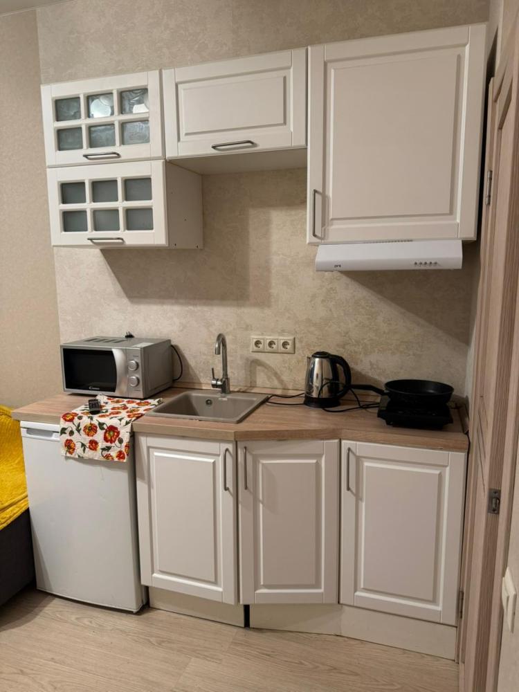 В КВАРТИРЕ ИМЕЕТСЯ: — Удобный раскладной диван; — Душевые комплекты (гель для душа, шампунь, туалетная бумага, мыло, зубные щетки), свежие комплекты полотенец; — Высокоскоростной Wi-fi; — Телевизор со смарт ТВ; — Чистое постельное белье; — Кухня оборудована всей необходимой бытовой техникой (индукционная плита, холодильник, микроволновка) и посудой; — Утюг, стиральная машина, фен.