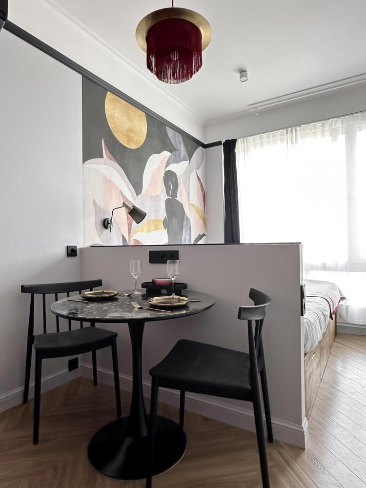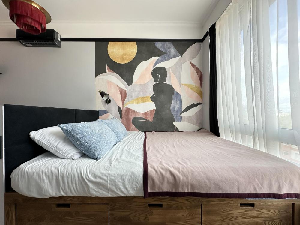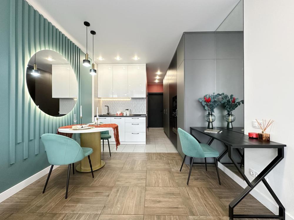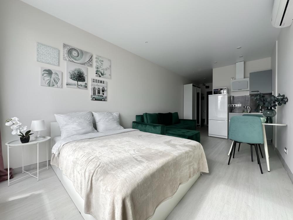 Сеть апартаментов "Диван - Кровать" предлагает снять апартаменты с дизайнерским ремонтом в ЖК Мята. В апартаментах спальных мест 2 - двуспальная кровать, мультимедиа: Wi-Fi, телевизор смарт ТВ; бытовая техника: холодильник, плита, фен, утюг, стиральная машина, СВЧ; махровые полотенца, свежее постельное белье, средства личной гигиены, полный комплект посуды и столовых приборов.