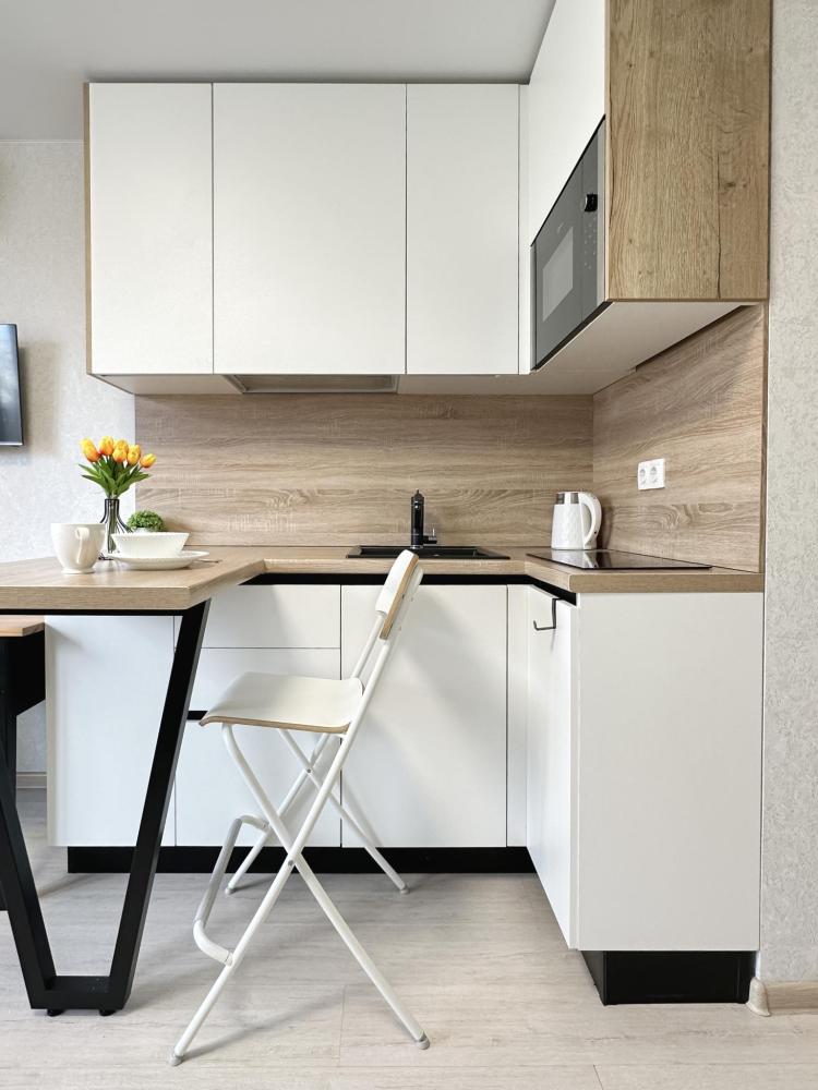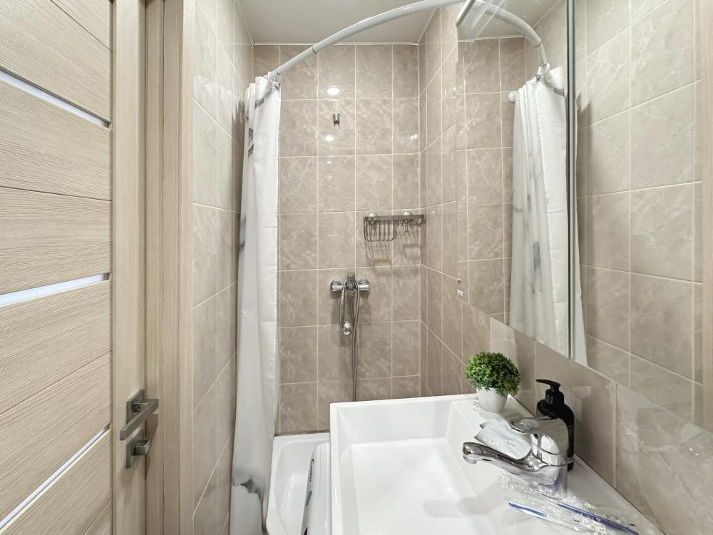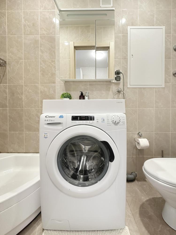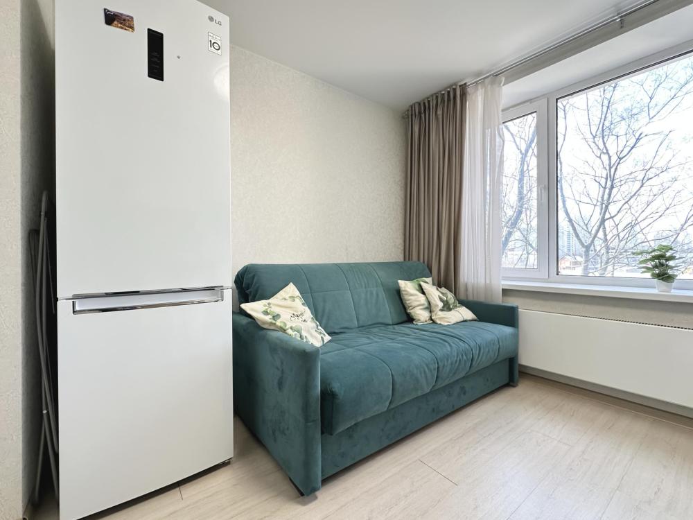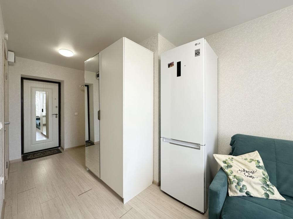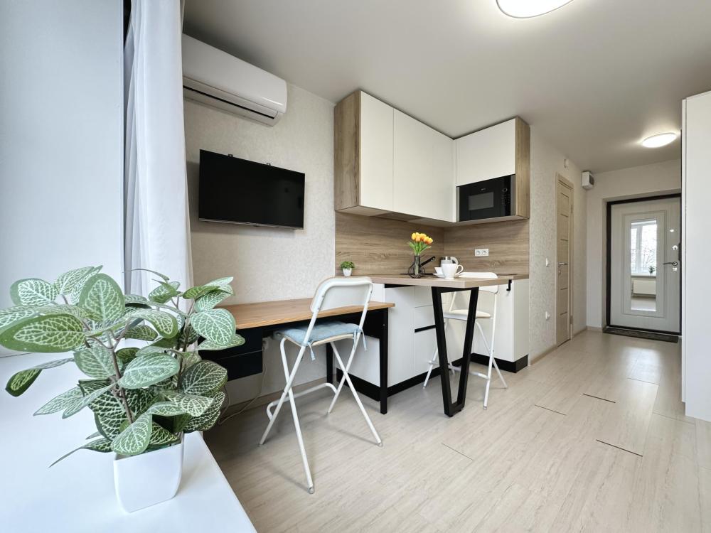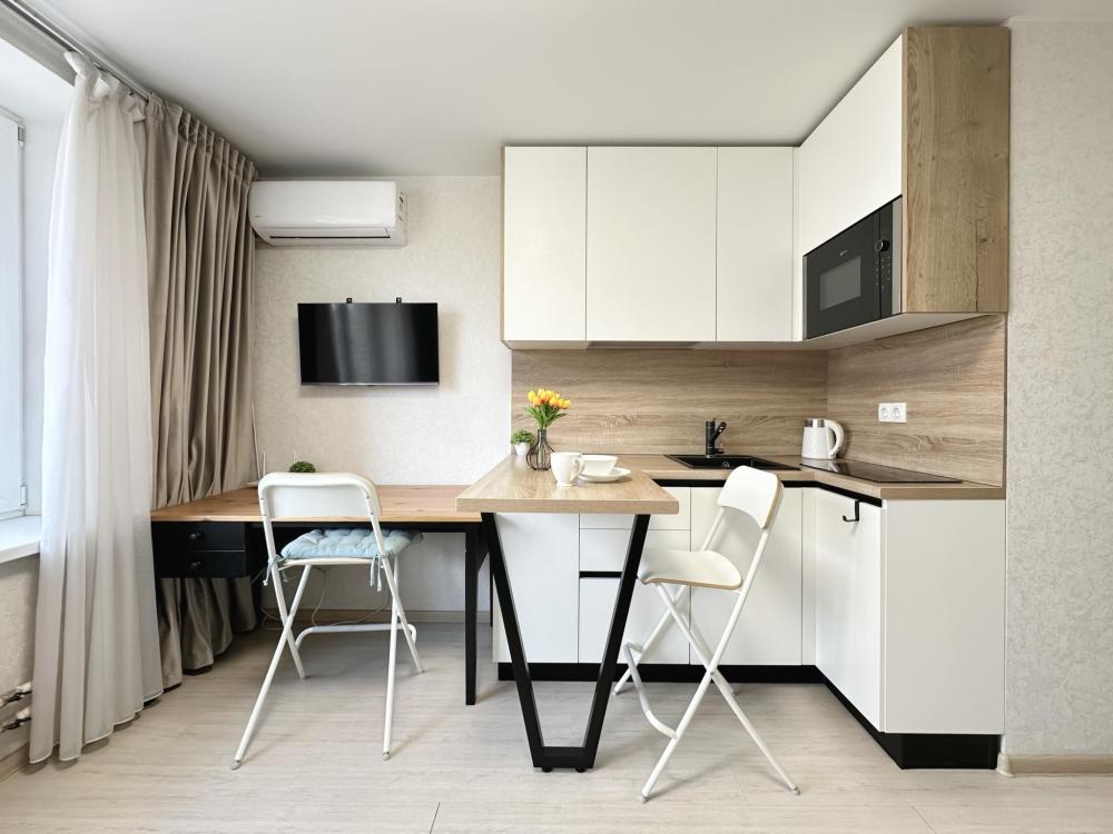 Просторная студия с шикарным ремонтом Апартаменты оснащены всем необходимым для комфортного проживания: двуспальный диван, Wi-Fi, телевидение со Смарт-ТВ, телевизор, стиральная машина, электрическая плита, холодильник, микроволновая печь, электрочайник, кондиционер, фен, утюг. Дополнительно также имеются посуда, кухонные принадлежности, свежее хрустящее постельное белье и мягкие полотенца, одноразовые средства гигиены, чай, кофе.