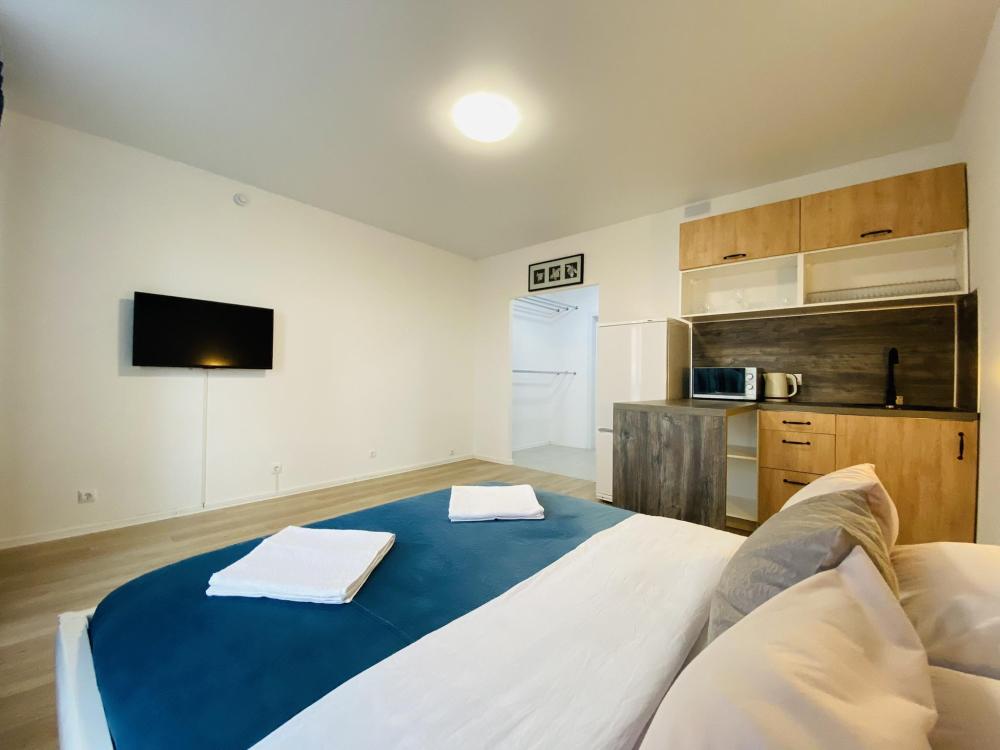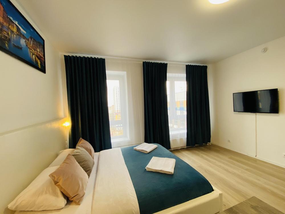 В распоряжении гостей: двуспальная кровать с ортопедическим удобным матрасом. Плазменный телевизор, кабельное телевидение. Застеленное чистое постельное белье. Пушистые полотенца, тапочки. Чай, кофе, сахар бесплатно. Оборудованная кухня, посуда, все для приготовления еды. Стиральная машина, фен, утюг, микроволновка. Ванна/душ.