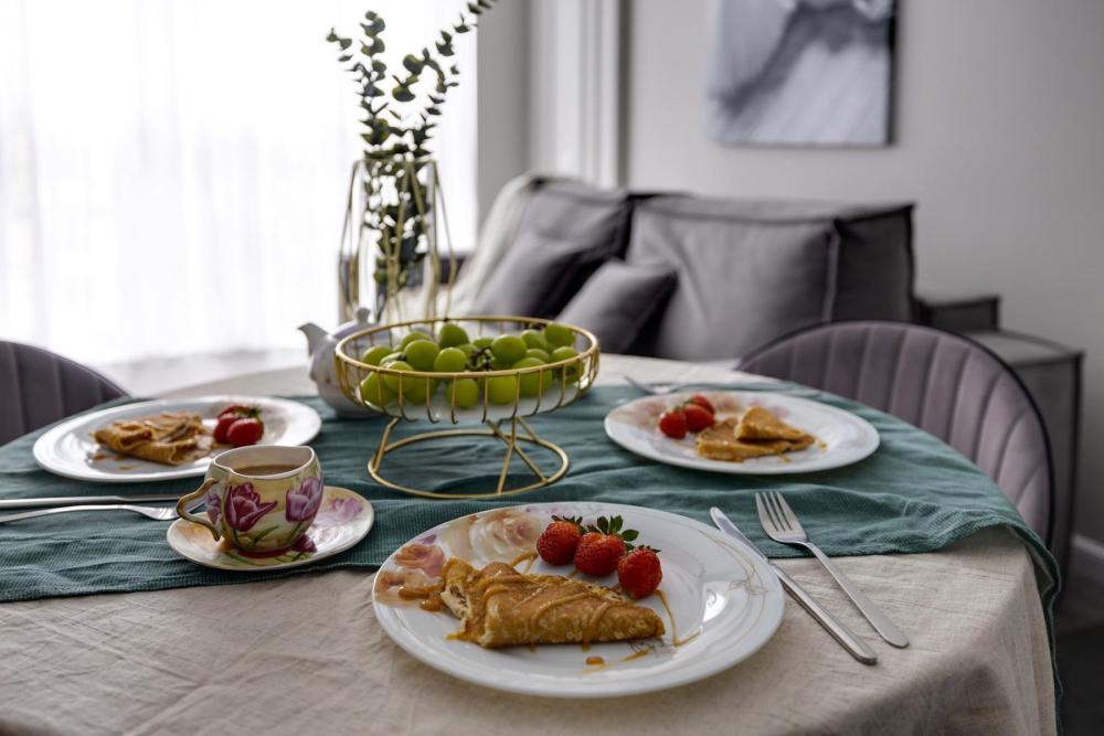 Стильная однокомнатная квартира «Жизель» от HOME24 в ЖК "Испанские кварталы". Погрузитесь в атмосферу современного комфорта в элегантной квартире бизнес-класса на 7-м этаже с панорамными окнами в пол. Это идеальный вариант для тех, кто ценит удобство и стиль. Вместимость: до 4 человек. Для комфортного проживания гостей апартаменты оборудованы всем необходимым: кондиционер, посудомоечная и стиральная машины,духовка, тостер, бесплатный Wi-Fi и телевизор со Smart TV. Фильтр для воды обратного осмоса - вода из крана как из горного источника. Гарантия отличного сна: уютная спальня с двуспальной кроватью 160x200 см с ортопедическим матрацем и шторами blackout для полного затемнения. В гостиной — удобный раскладной диван. Продуманное освещение: потолочная лампа с пультом для создания идеальной атмосферы. Полное оснащение: современная кухня со всей техникой и посудой, а также приветственный набор (чай, кофе, сахар, специи). Забота о гостях: комплекты полотенец, средства гигиены (шампунь, гель, мыло) и тапочки. В спальне есть книги - для уютных вечеров.