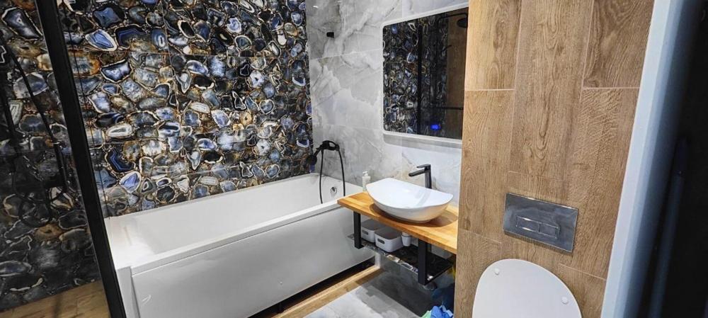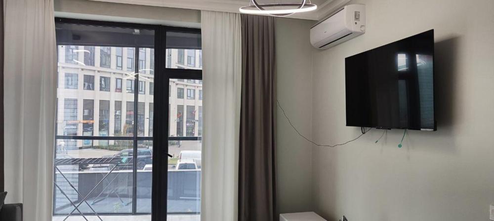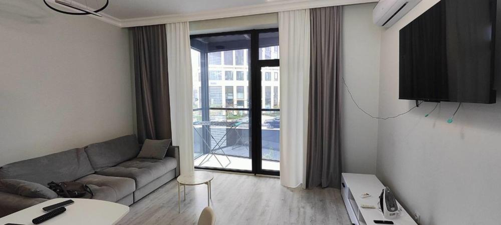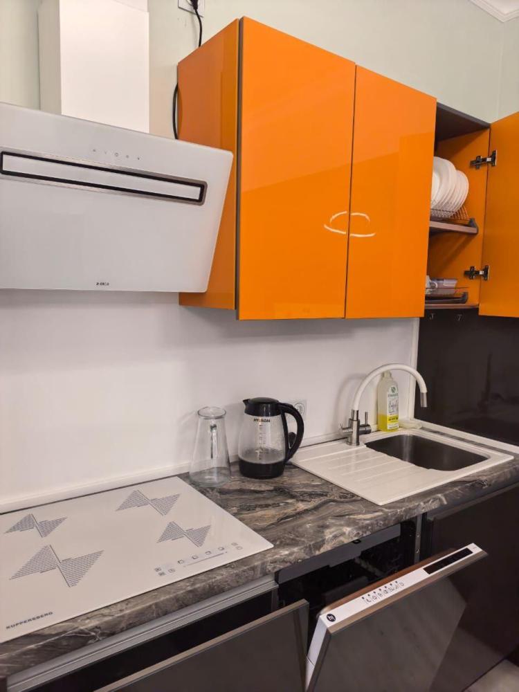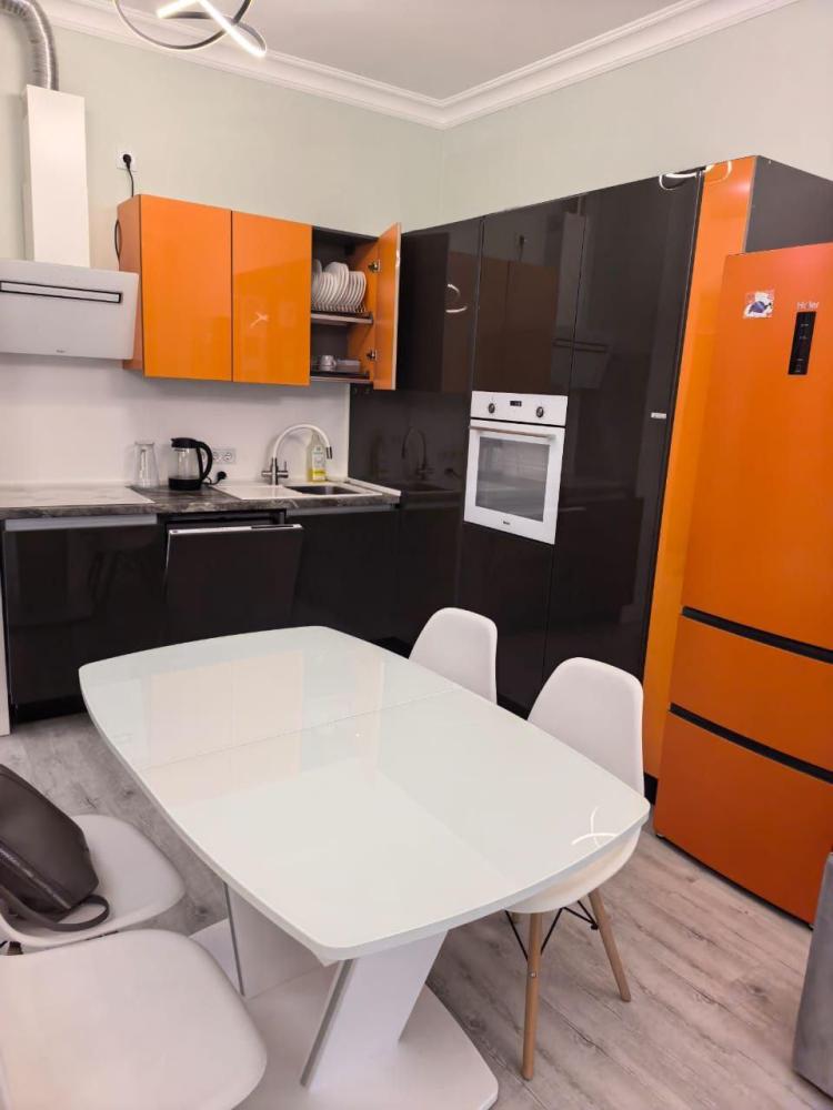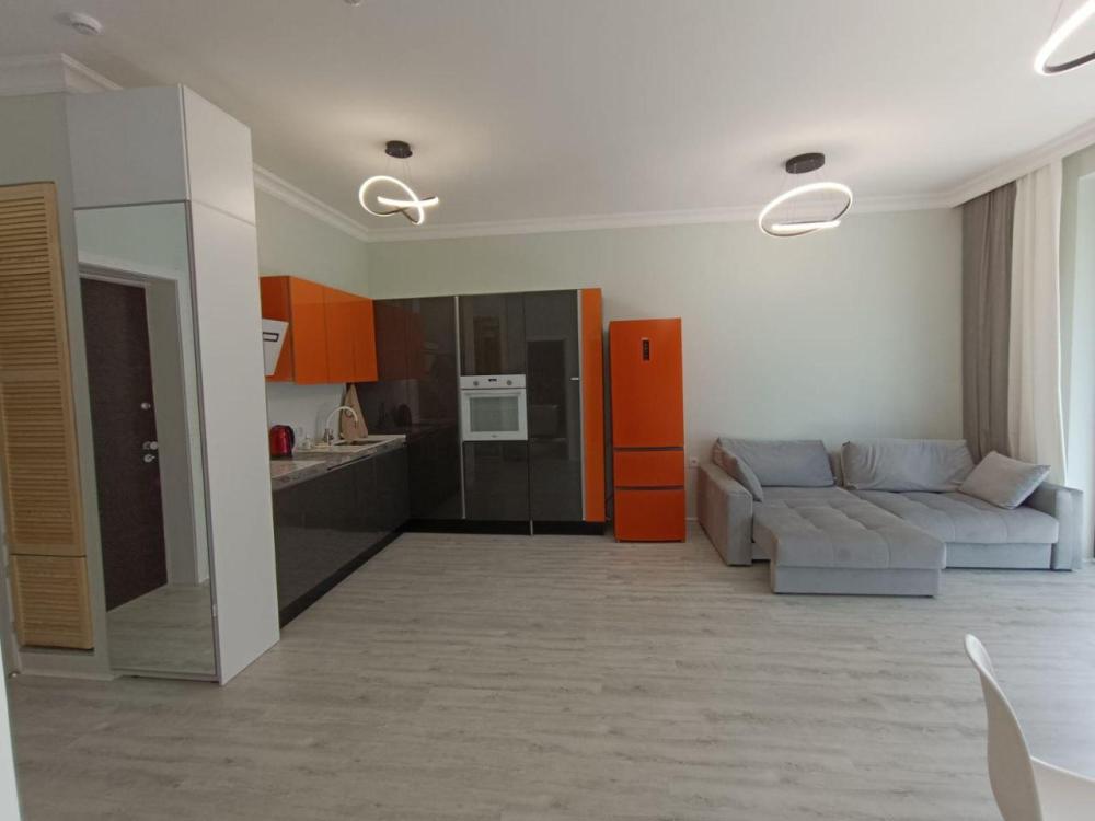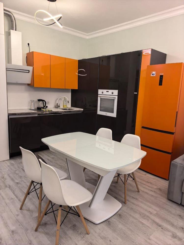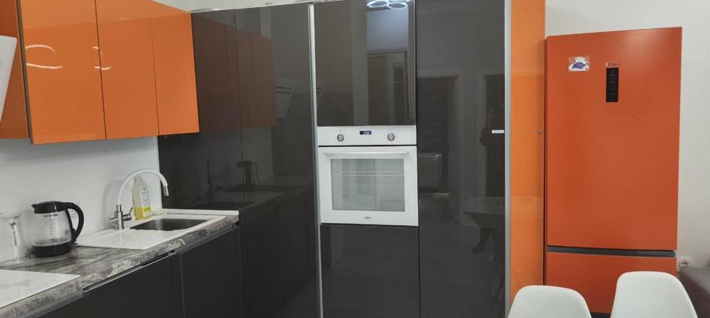 Просторная кухня-гостиная с современной техникой и полным комплектом посуды