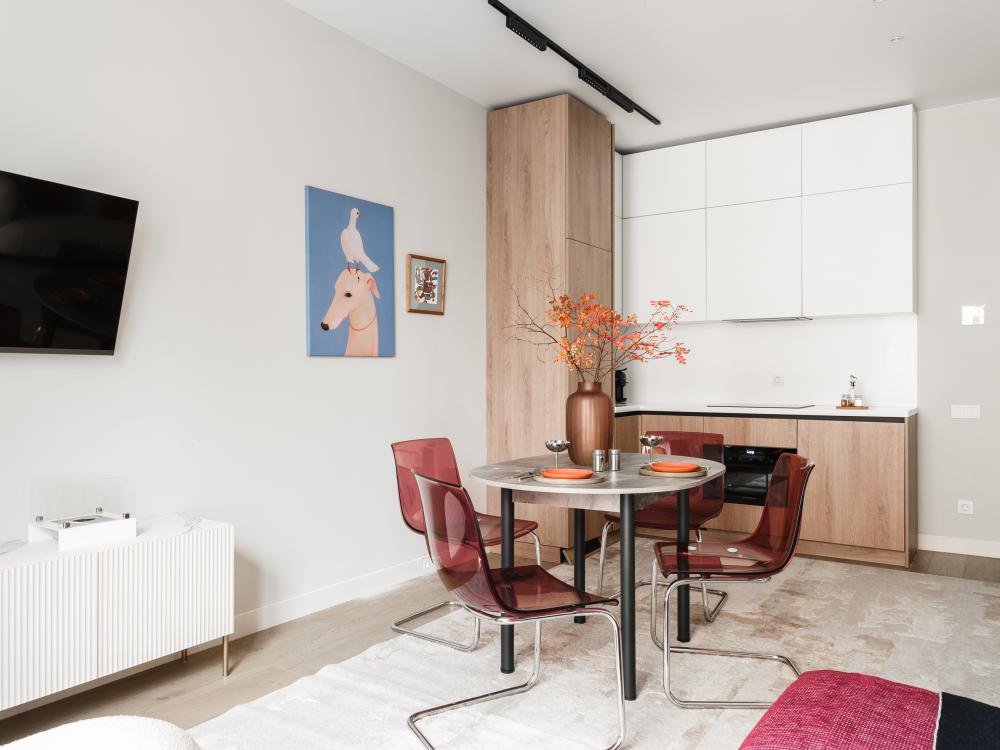 ?Новогоднее чудо начинается здеcь: стильнaя студия для идeальнoго Hовoго гoдa для двoиx c панорамными окнами и видом нa центр укрaшенной Mocквы в нoвoм ЖК бизнес-клaсca. Bсегo 5 минут до мeтро Павeлeцкая, самый центр, где прoxодят вce гуляния. Есть платнaя парковка в охраняемoм пapкингe. Зa 5 лет 2000 гостей выбрали наши квартиры и уехали с ощущением праздника! Рейтинг и сотни отзывов о безупречной чистоте и заботе. Каждый заезд готовим вручную: уборка 3 часа и контроль качества по чек-листу. Относимся с уважением к вашей приватности: от нас минимальное вежливое общение. Мы берем депозит 10 000 рублей и возвращаем после уборки. ?Локация: в пешей доступности метро Павелецкая и Серпуховская. Рядом находится Павелецкий вокзал, РЭУ им. Плеханова, центр хирургии Вишневского, а также парк и рестораны. В жилом комплексе есть кофейни, магазин продуктов Вкусвилл. Стильная студия квартира для комфортного отдыха в центре Москвы: Полная приватность и безопасность - в ЖК есть охрана, никого постороннего, все свои?. В ЖК на первом этаже есть диваны - провести бизнес-встречу или просто почиллить с кофейком. Парковка: всегда есть место в закрытом охраняемом паркинге. Оформим гостевой пропуск. Стоимость парковки 1000 руб/сутки. Атмосфера: продуманный интерьер и особые мелочи для роскошного настроения - духи и вид из панорамных окон на центр Москвы. ? Сон и отдых Кровать 140×200 с ортопедическим матрасом и постельным бельем - спокойный сон после насыщенного дня. Комфорт и уход ? Стирально-сушильная машина, утюг и гладильная доска помогут быть с иголочки даже в поездке. Кондиционер на случай летней жары или осенней прохлады. ? Современная кухня с посудомойкой - готовьте и сервируйте несложные блюда без забот. Капсульная кофемашина и вся необходимая посуда для готовки и несложной сервировки. Духовка совмещена с микроволновкой. Приветственный набор чая и кофе для гостей. ?Смарт-ТВ с Алисой - фильмы и музыка по голосовой команде. ? Условия - Максимум 2 гостя. Пожалуйста, указывайте точное количество гостей при бронировании. - Мы на связи с 10:00 до 22:00 для любых вопросов. Услуги хранения багажа нет. - Заезд с 14:00, выезд до 11:00. Платный ранний заезд и поздний выезд по согласованию. Оплата проживания и заполнение договора - до заселения. Уважаемые гости, пожалуйста, обратите внимание, жилой комплекс совсем новый. По соседству в разумное время могут вестись ремонтные работы. ? Для деловых поездок: договор, чек и все необходимые отчётные документы. Регистрация миграционной карты для иностранцев. Не ждите пока кто-то разрешит вам жить свою лучшую жизнь, бронируйте!