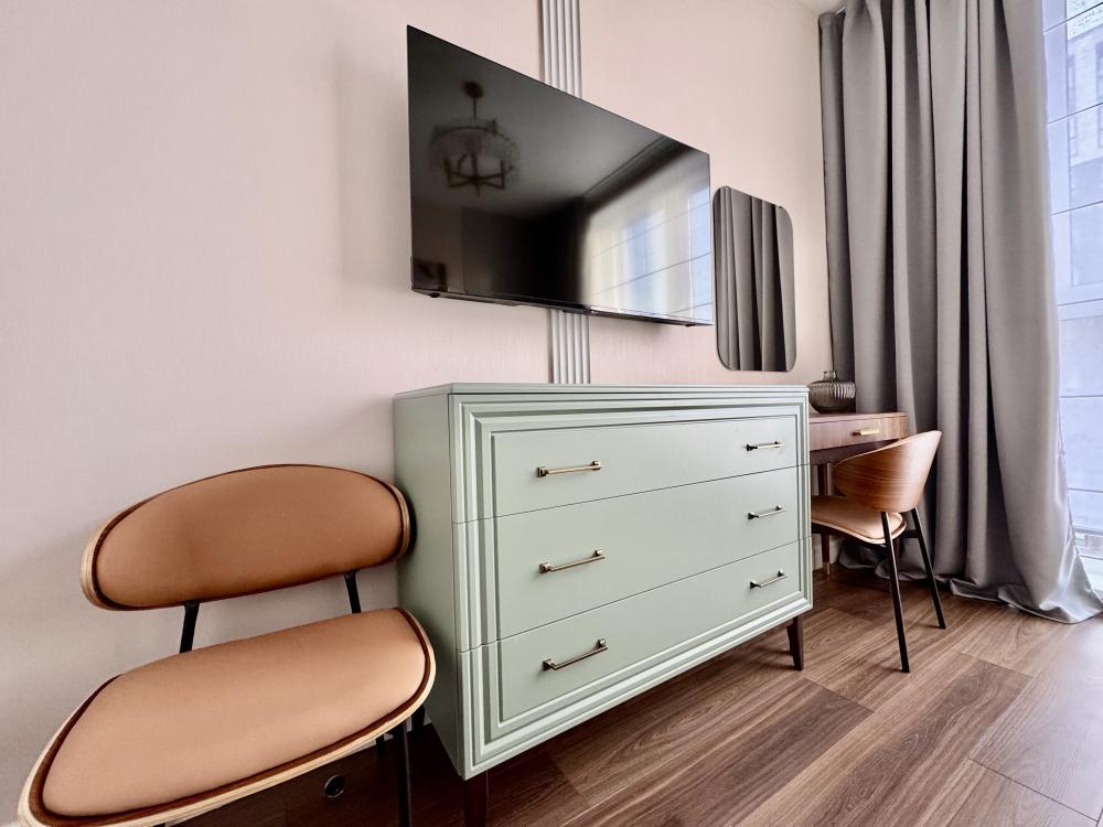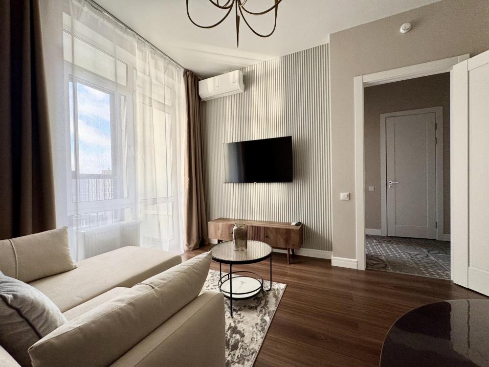 Комфорт: - В спальне двуспальная кровать с ортопедическим матрасом - В гостиной диван - Хлопковое постельное белье - Разные источники освещения - Кондиционер - Утюг, гладильная доска, сушилка Ванная: - Совмещенная ванна - Пушистые хлопковые полотенца - Тапочки/зубные наборы - Шампунь/ гель для душа - Стиральная машина с сушкой, фен Кухня: - Холодильник, посудомоечная машина, плита, духовой шкаф, микроволновая печь, чайник Отдых: - 2 современных SMART TV - Скоростной Wi-Fi - Закрытый двор с детскими площадками - Открытая парковка - Вид во двор и на Xованский пpуд