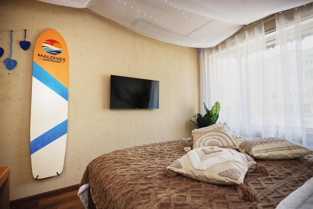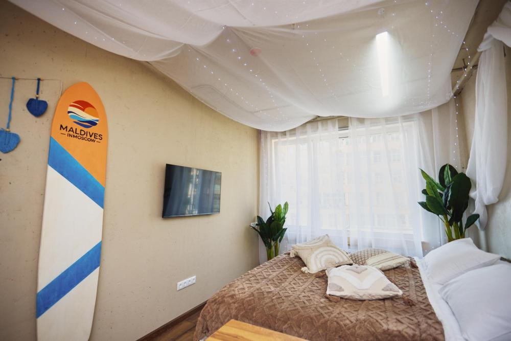 Уникальный дизайн Мальдивы в Москве В студии 23 м2 Шикарная кровать размером 200*200 Матрас на котором круто не спать. Три световых сценария и атмосфера отдыха на пляже. Мы сделали все чтобы тебе было комфортно. Напомню что мы берём залог и из залога единоразово вычитаем стоимость уборки 1000 рублей. Уборку делает клининг, поэтому качество на 5 звёзд. Хочешь дополнительные услуги для романтического свидания - только скажи и мы все возьмем в свои руки. Мальдивы в Москве это место куда хочется возвращаться вновь и вновь.