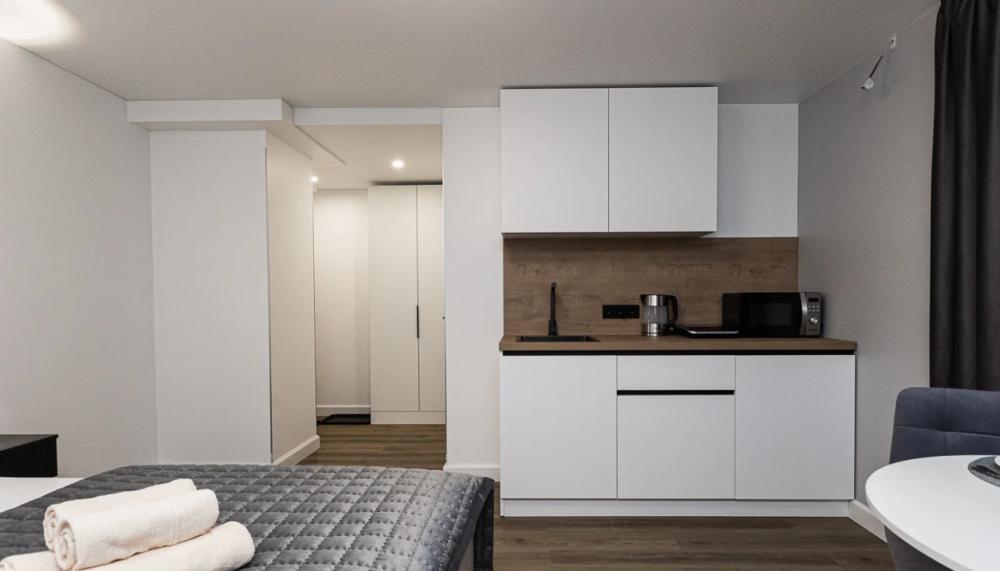 Апартаменты оснащены всем необходимым для комфортного проживания: стиральная машина, телевизор со SMART TV и множеством каналов, кухня с холодильником, плитой, микроволновкой, чайником и посудой, фен, утюг, сушилка для белья и гладильная доска, чистое постельное белье и махровые полотенца, высокоскоростной Wi-Fi.