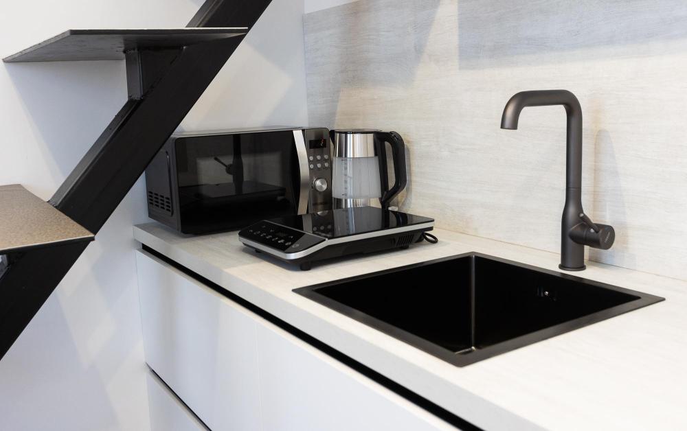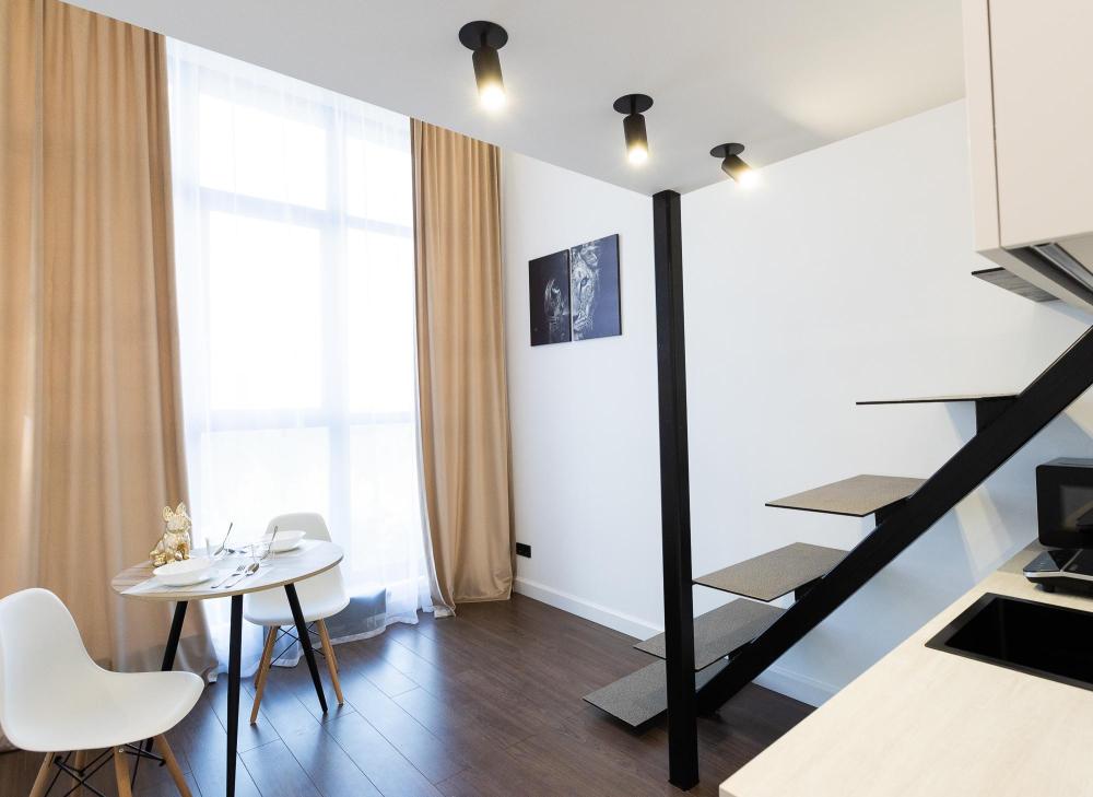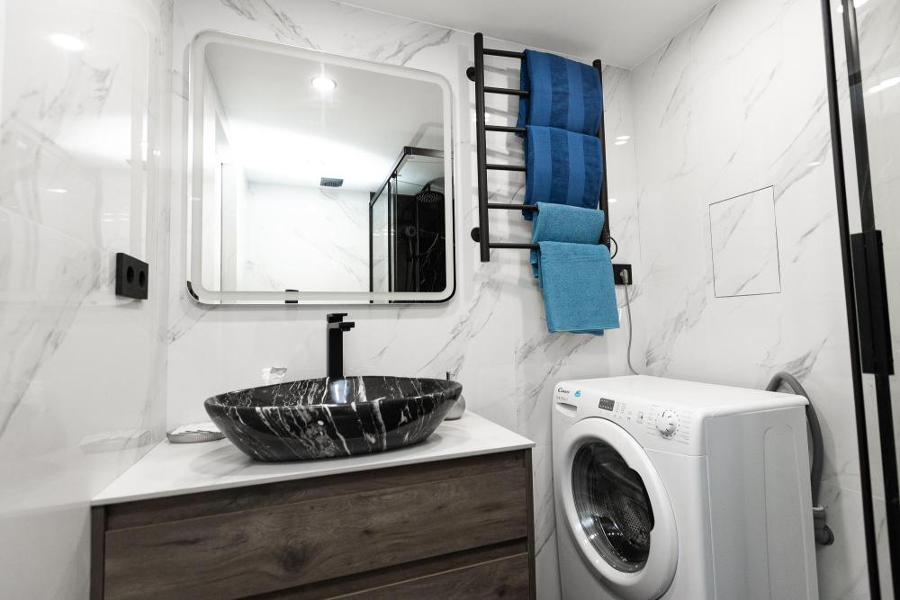 Апартаменты оснащены всем необходимым для комфортного проживания: стиральная машина, телевизор со SMART TV и множеством каналов, кухня с холодильником, плитой, микроволновкой, чайником и посудой, фен, утюг, сушилка для белья и гладильная доска, чистое постельное белье и махровые полотенца, высокоскоростной Wi-Fi.