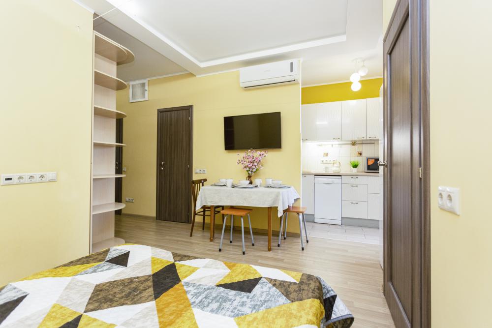Для комфортного проживания есть всё необходимое: кондиционер, микроволновая печь, холодильник, стиральная машина, посудомоечная машина, утюг с гладильной доской, чайник, посуда, кухонная плита,постельное белье.