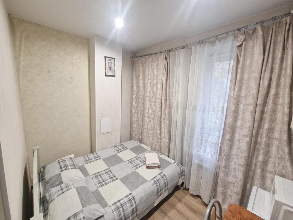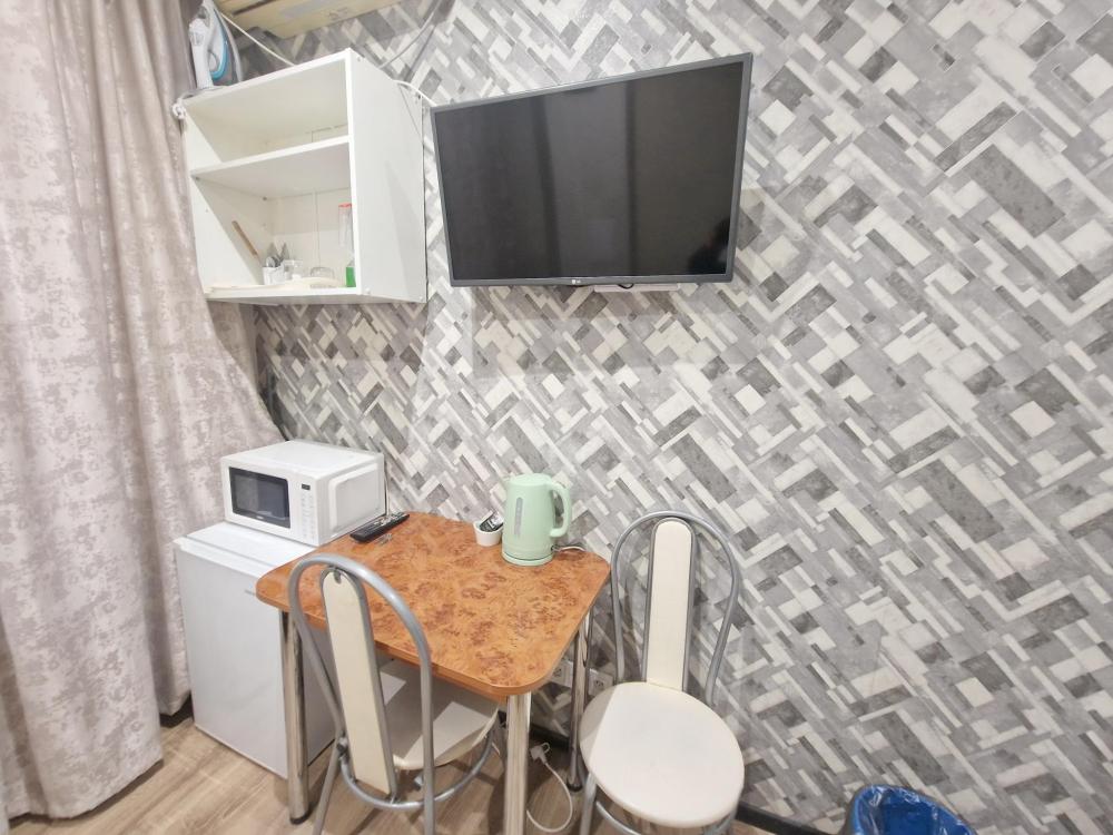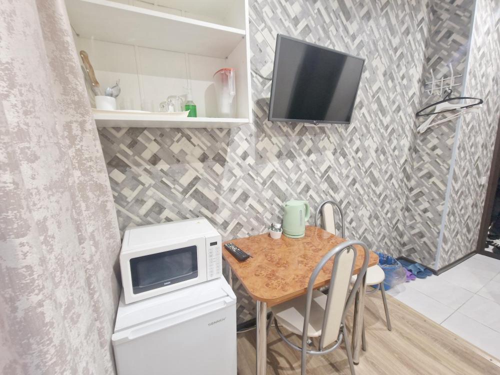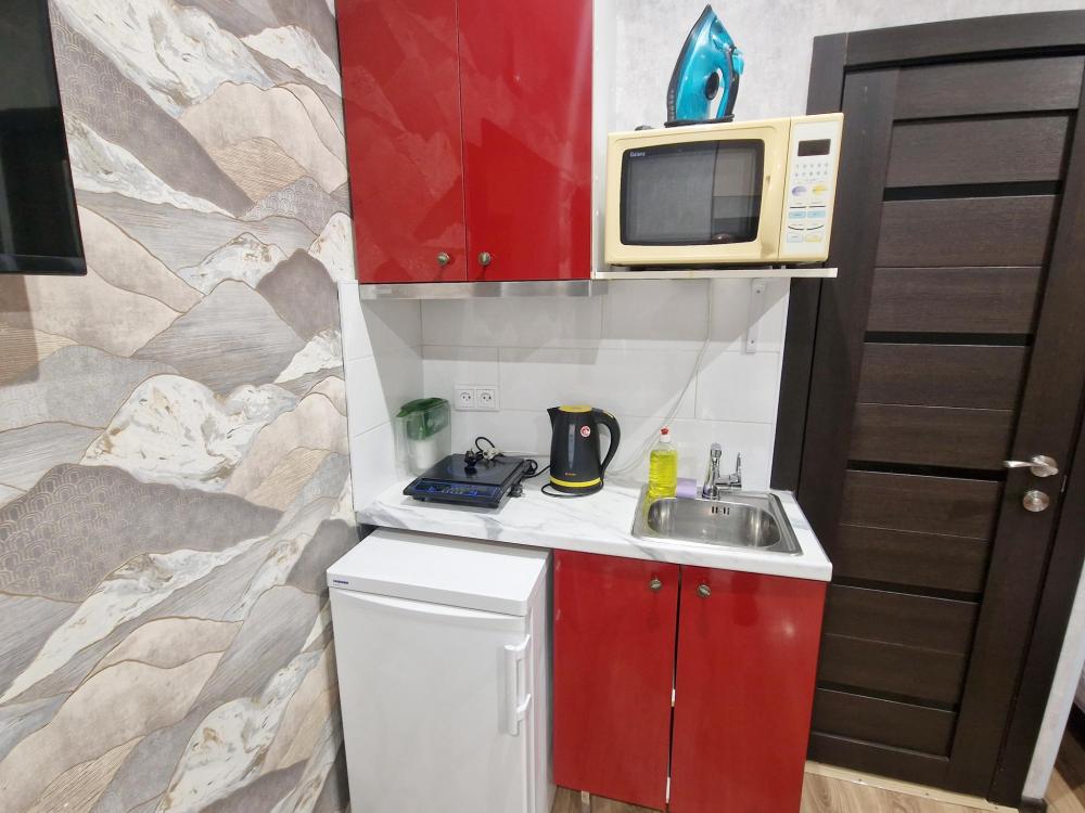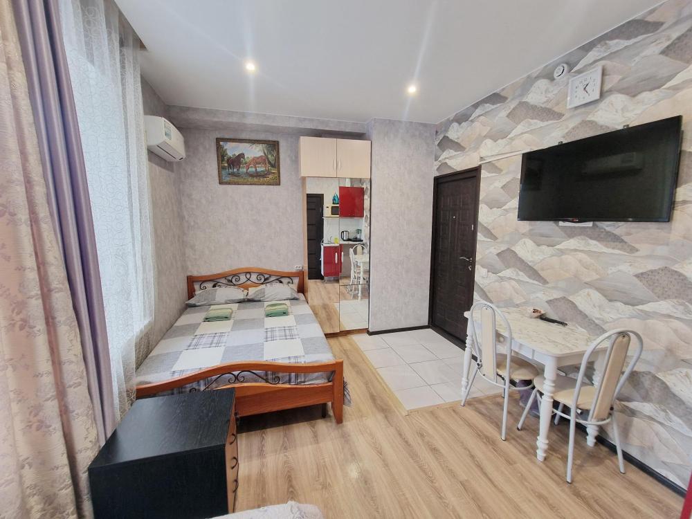 Студия с вместимостью до 2 гостей. В квартире есть все, что нужно для комфортного проживания: двуспальная кровать, постельное белье и полотенца, посуда, микроволновка, телевизор, Wi-Fi, гигиенические и гладильные принадлежности, холодильник, фен.