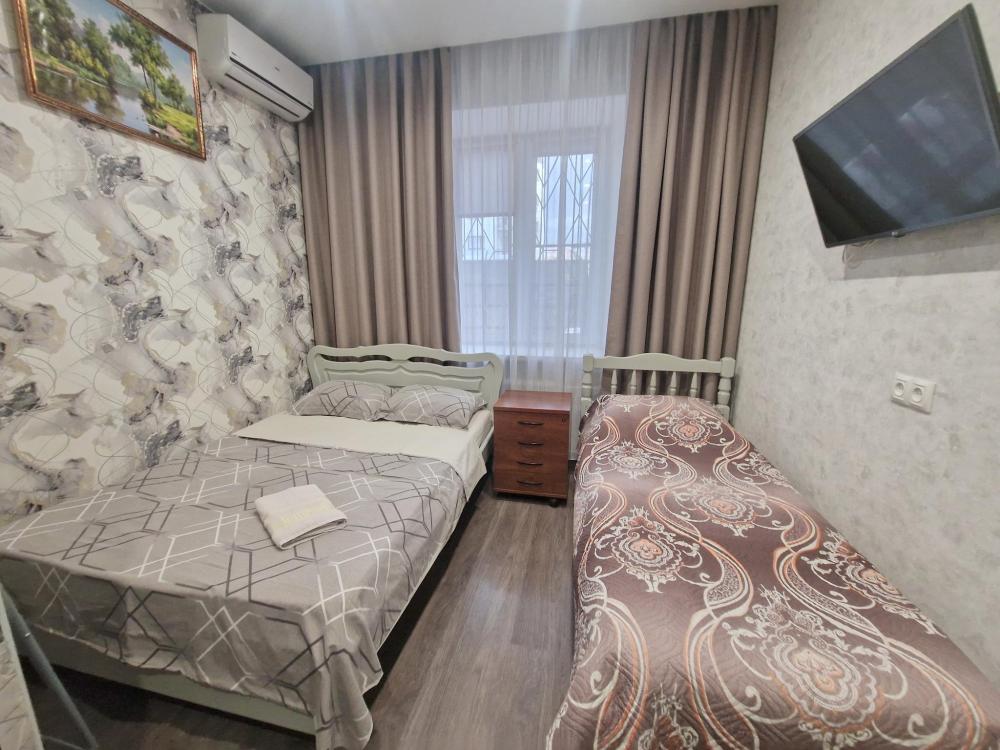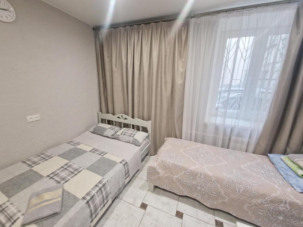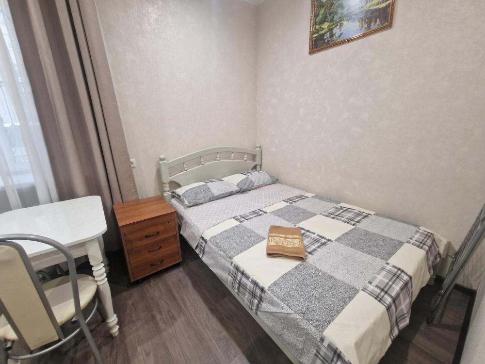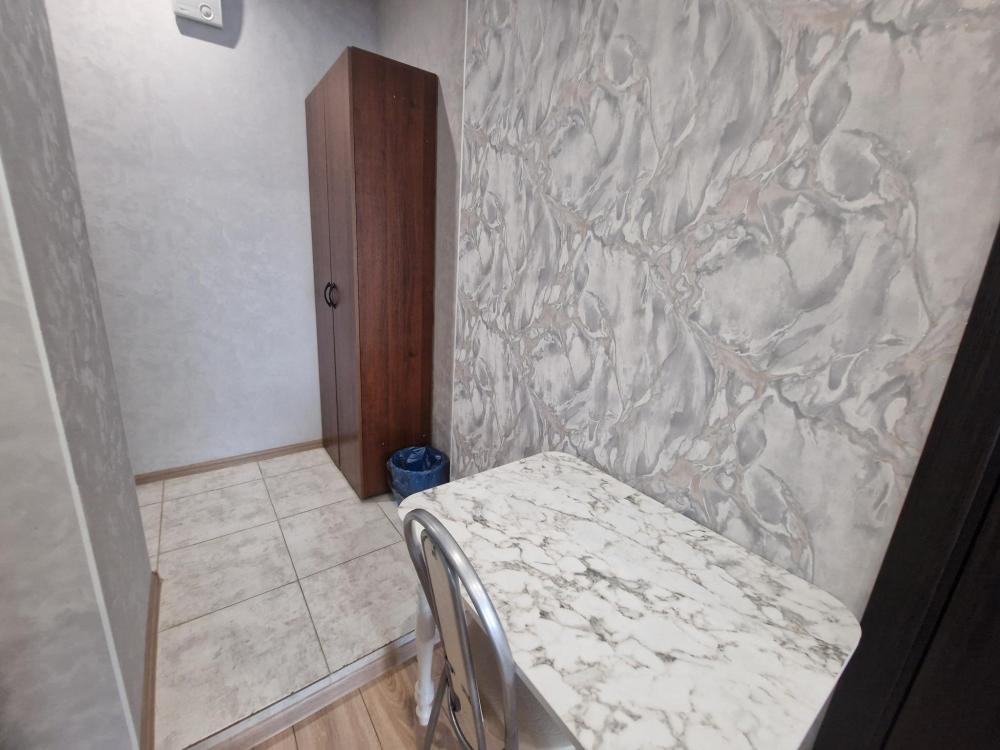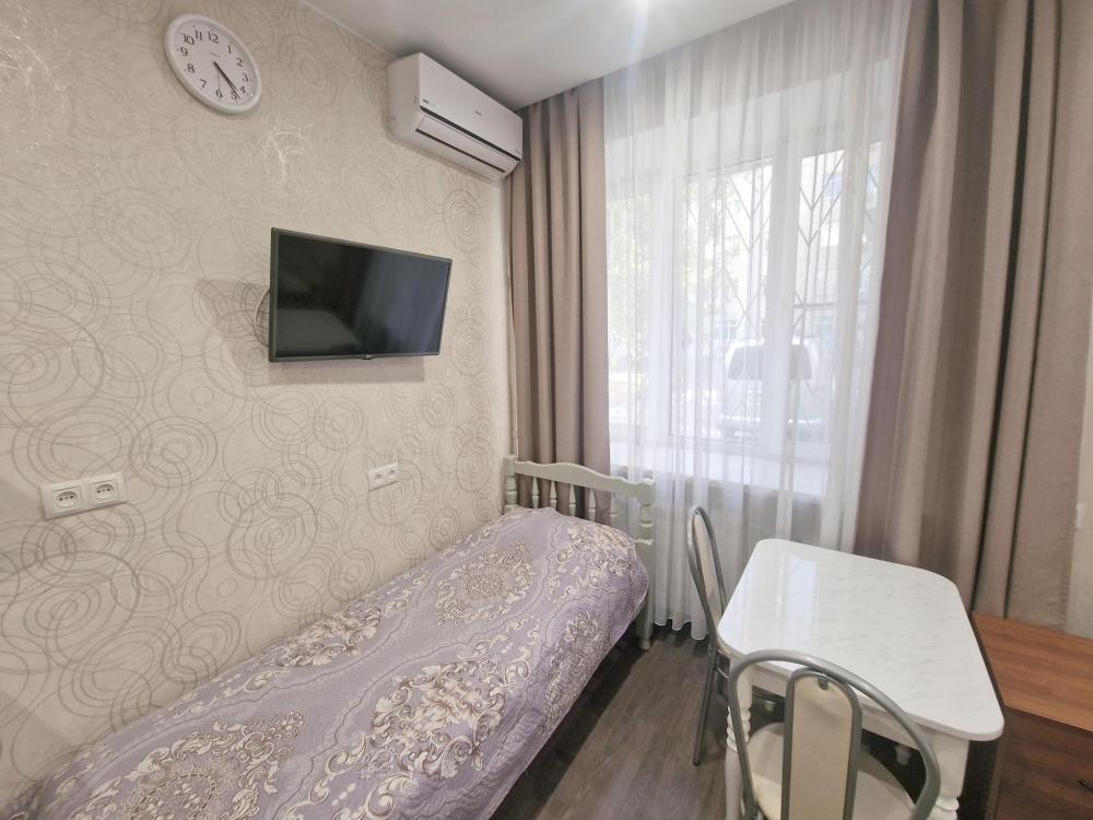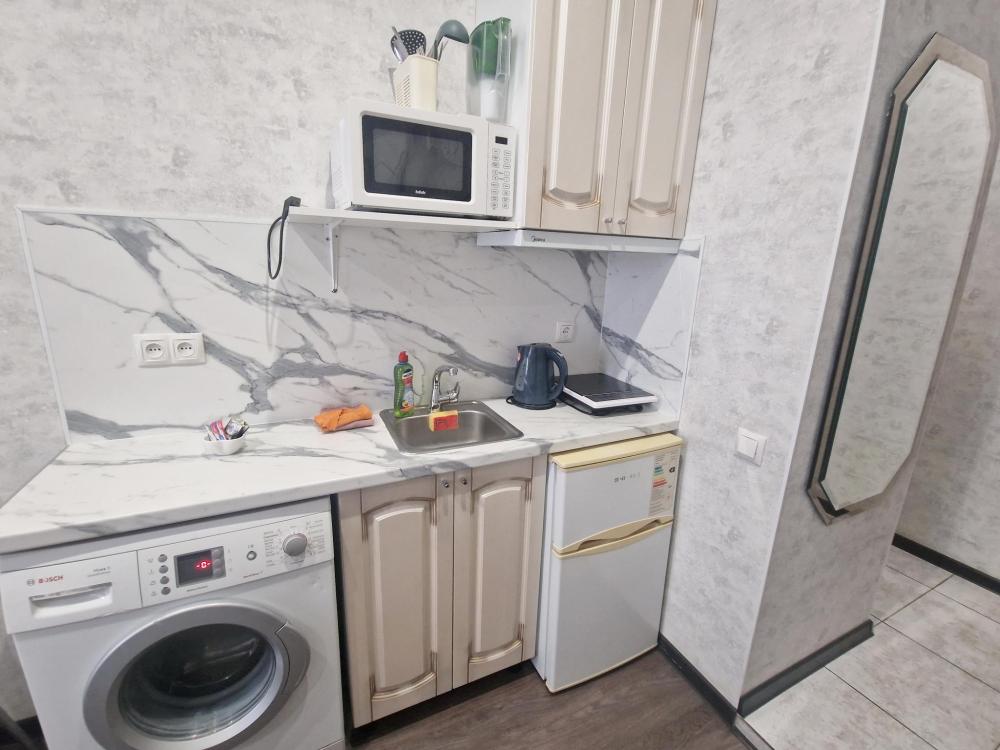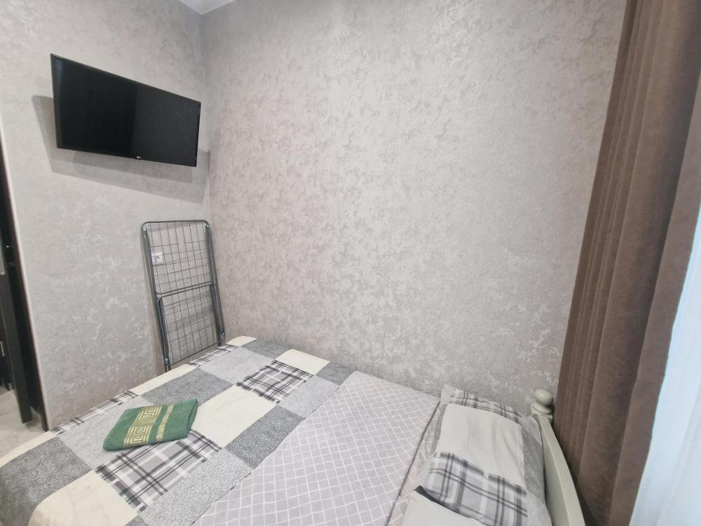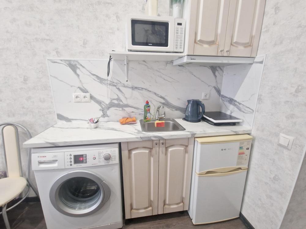 Студия с вместимостью до 3 гостей. В квартире есть все, что нужно для комфортного проживания: двуспальная и односпальная кровати, постельное белье и полотенца, посуда, микроволновка, телевизор, Wi-Fi, гигиенические и гладильные принадлежности, стиральная машина в общей зоне, холодильник, фен.