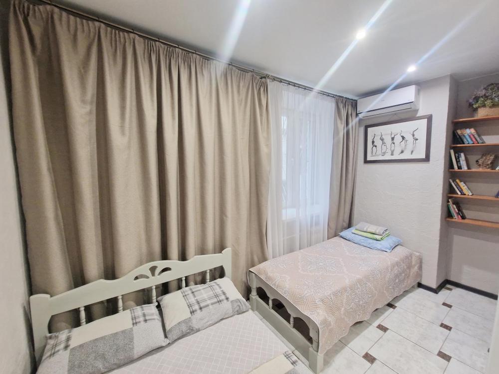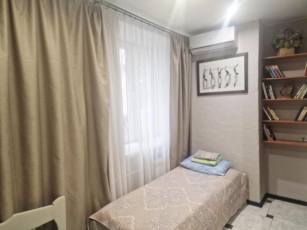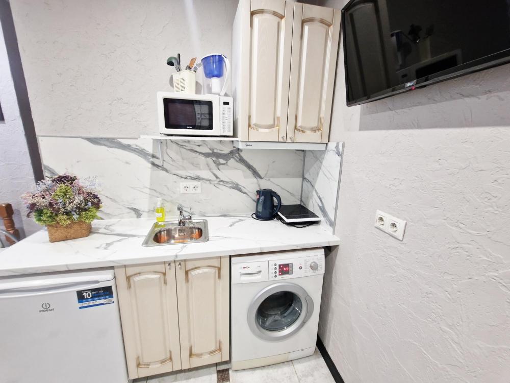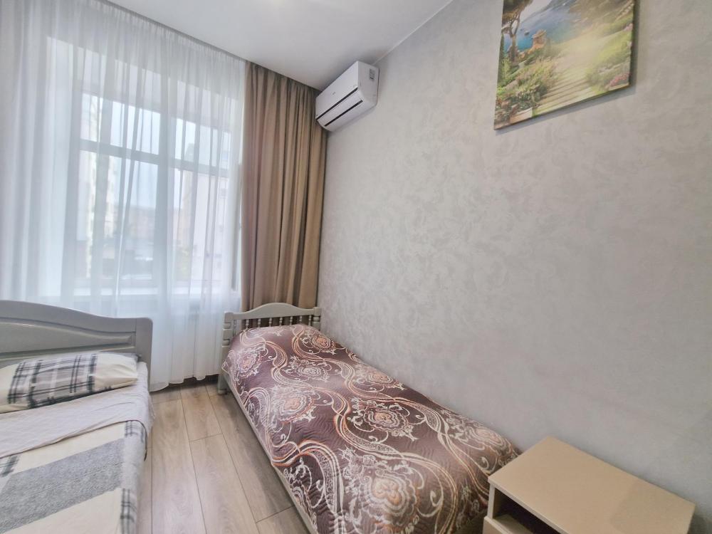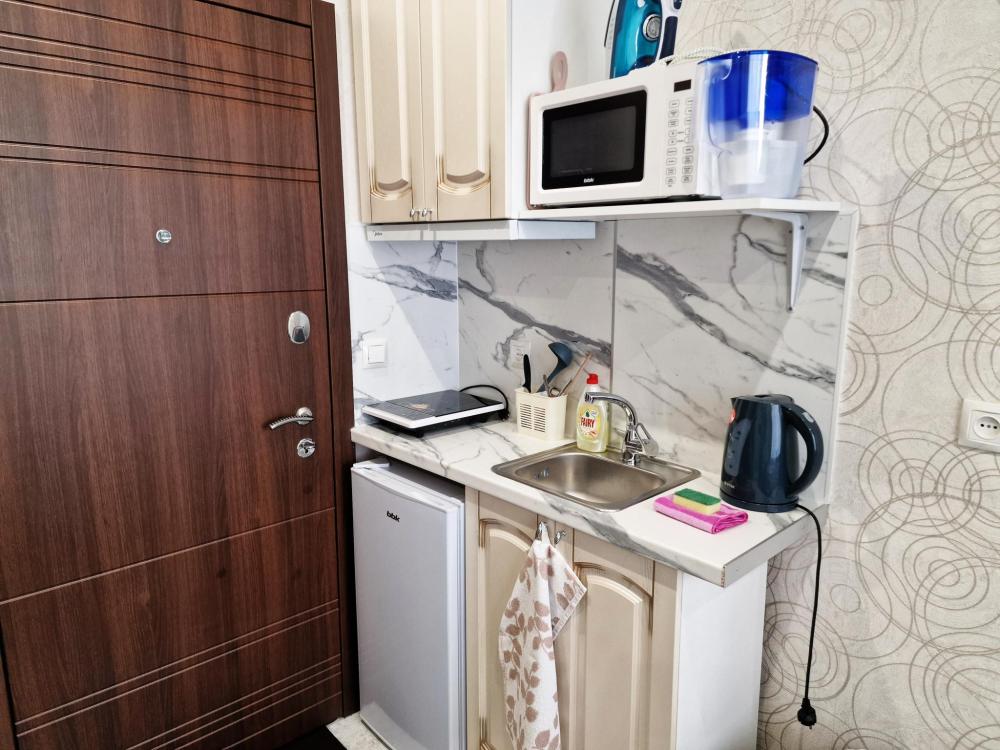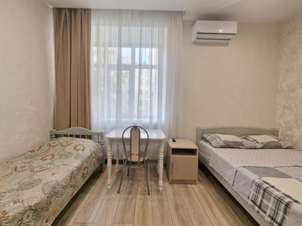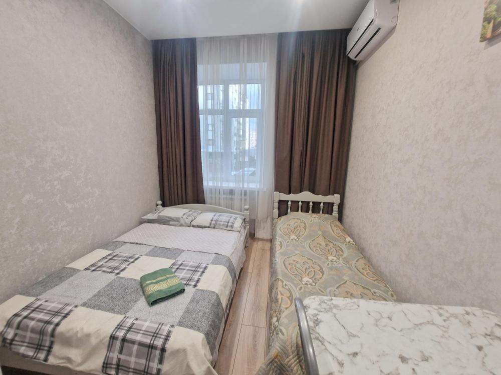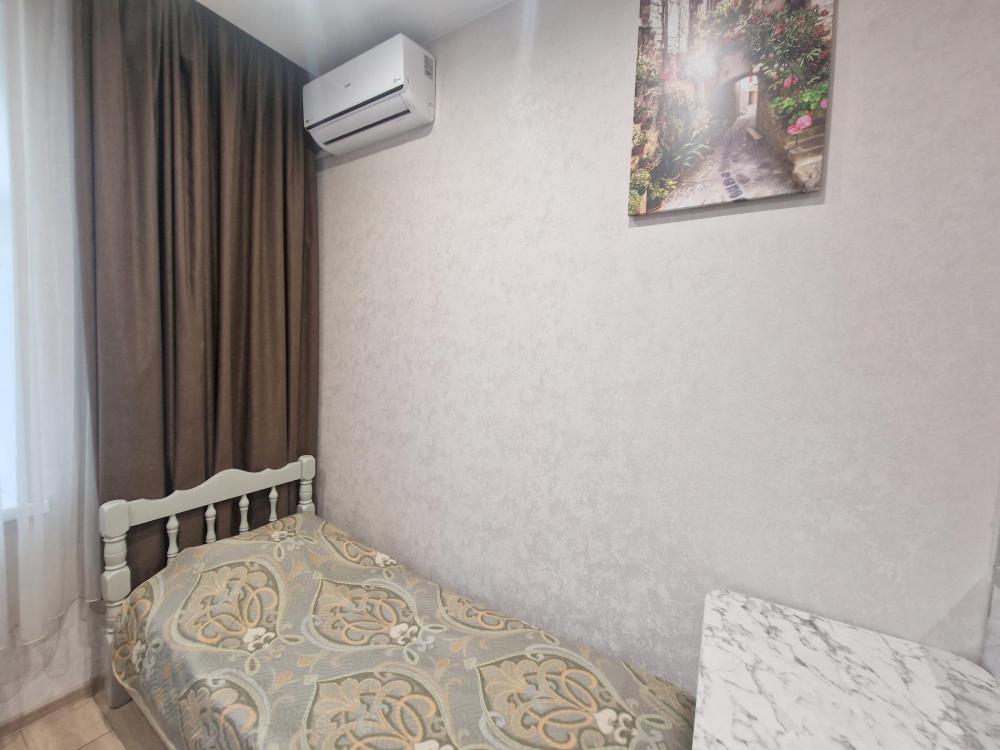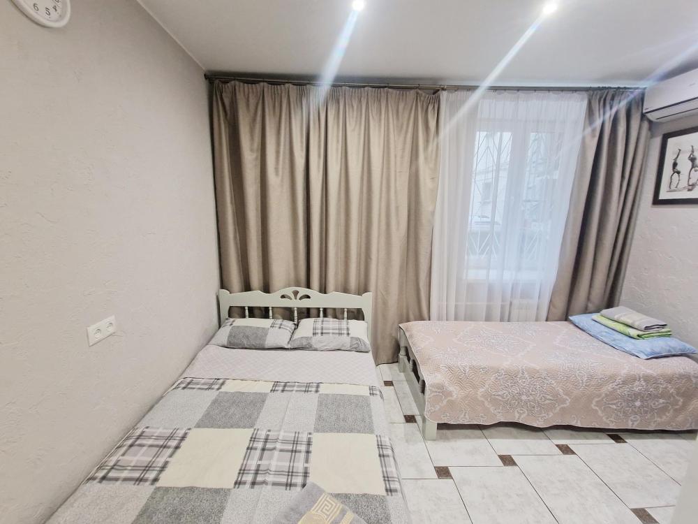 Студия с вместимостью до 3 гостей. В квартире есть все, что нужно для комфортного проживания: двуспальная и односпальная кровати, постельное белье и полотенца, посуда, микроволновка, телевизор, Wi-Fi, гигиенические и гладильные принадлежности, стиральная машина в общей зоне, холодильник, фен.