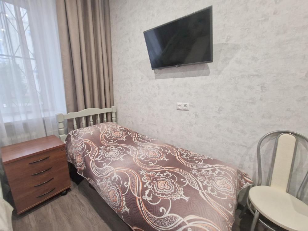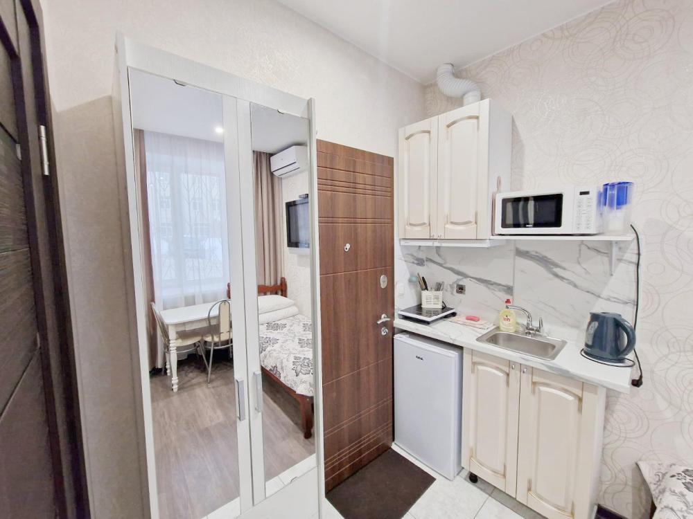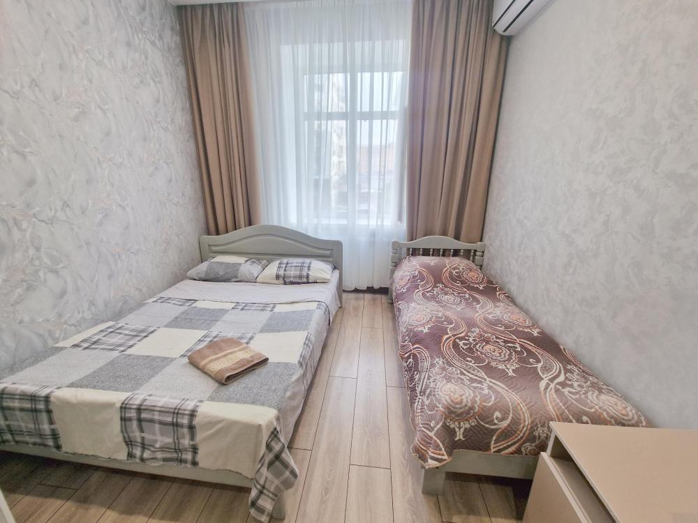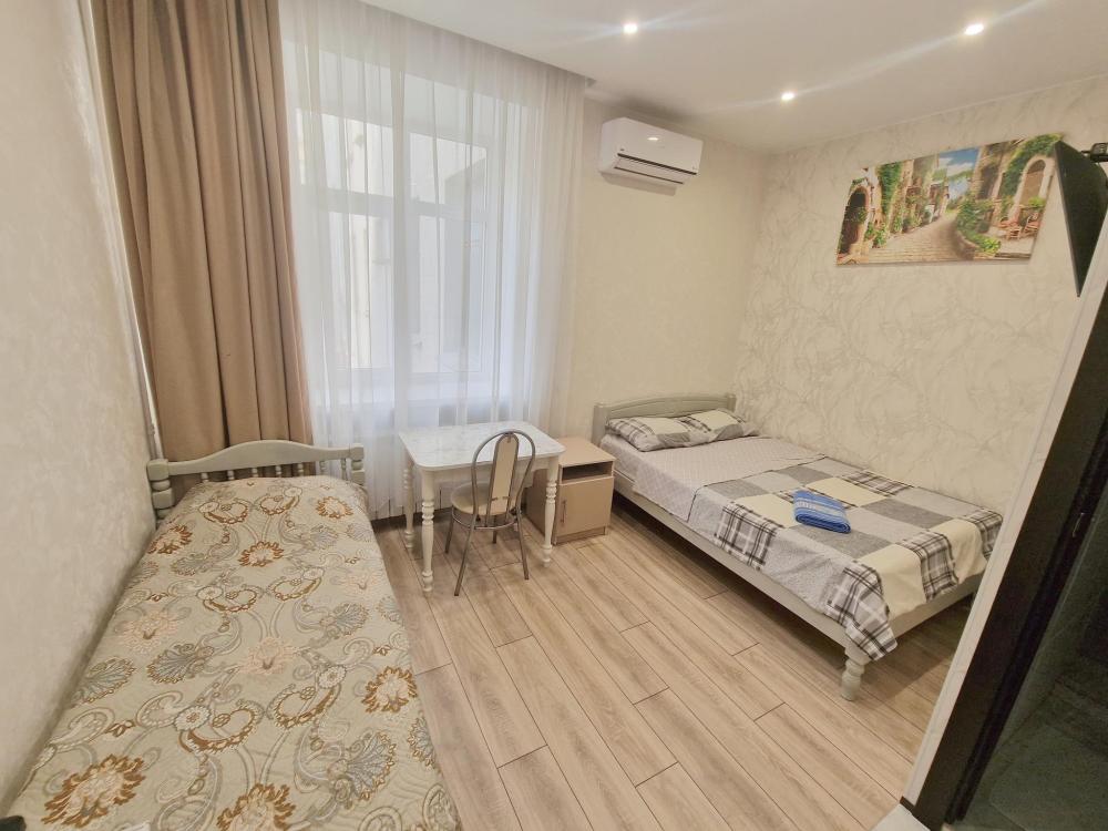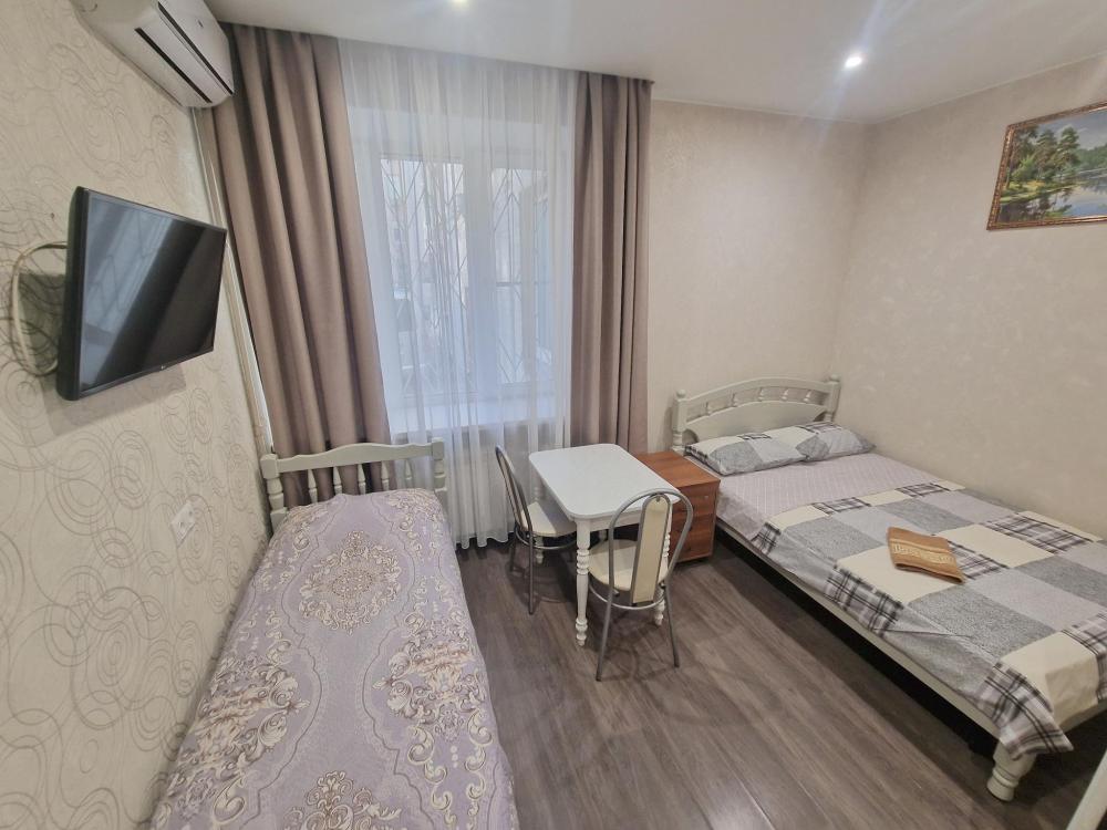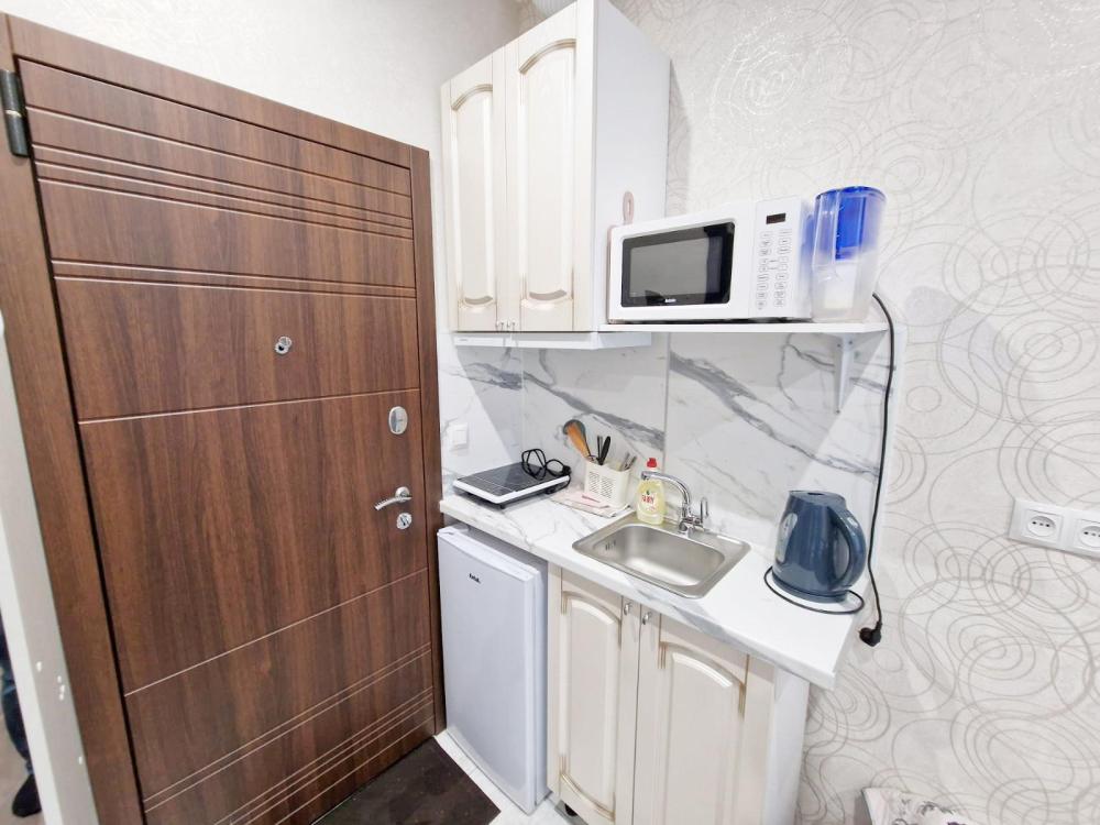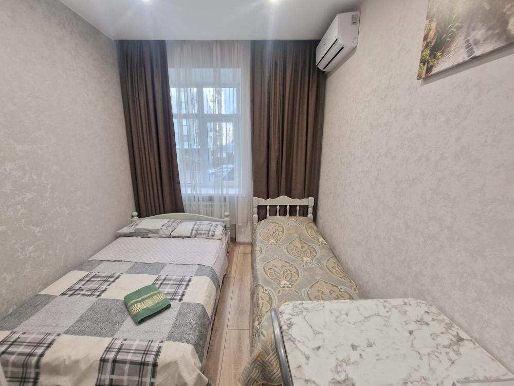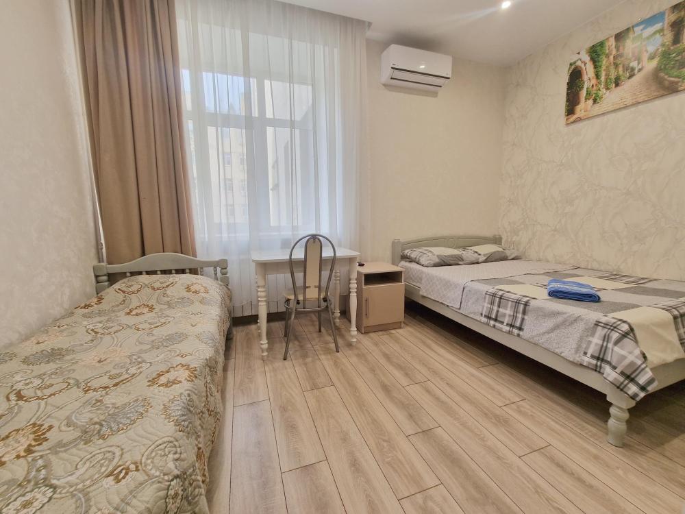 Студия с вместимостью до 3 гостей. В квартире есть все, что нужно для комфортного проживания: двуспальная и односпальная кровати, постельное белье и полотенца, посуда, микроволновка, телевизор, Wi-Fi, гигиенические и гладильные принадлежности, стиральная машина в общей зоне, холодильник, фен.