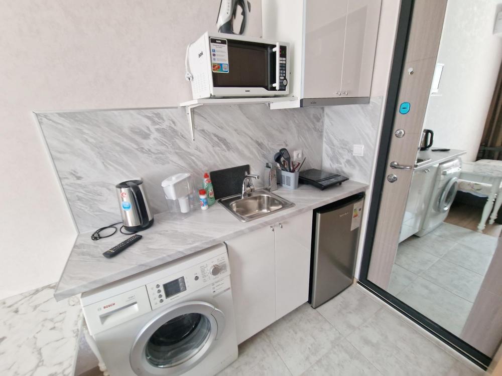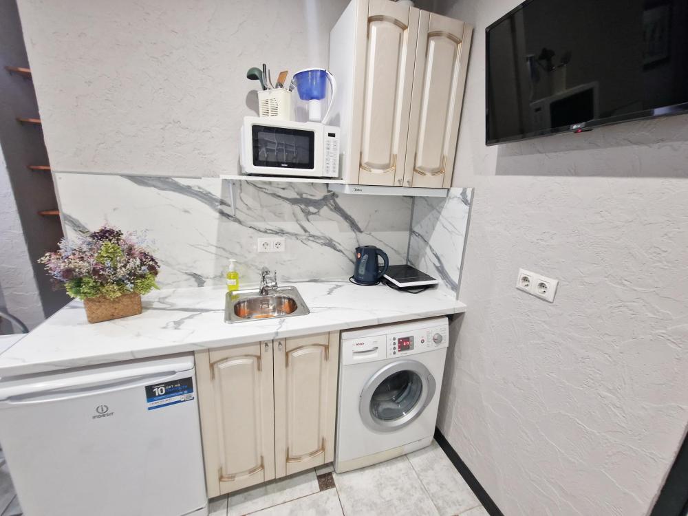 Студия с вместимостью до 3 гостей. В квартире есть все, что нужно для комфортного проживания: двуспальная кровать, раскладной диван, постельное белье и полотенца, посуда, микроволновка, телевизор, Wi-Fi, гигиенические и гладильные принадлежности, стиральная машина в общей зоне, холодильник, фен.