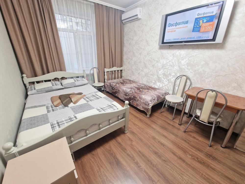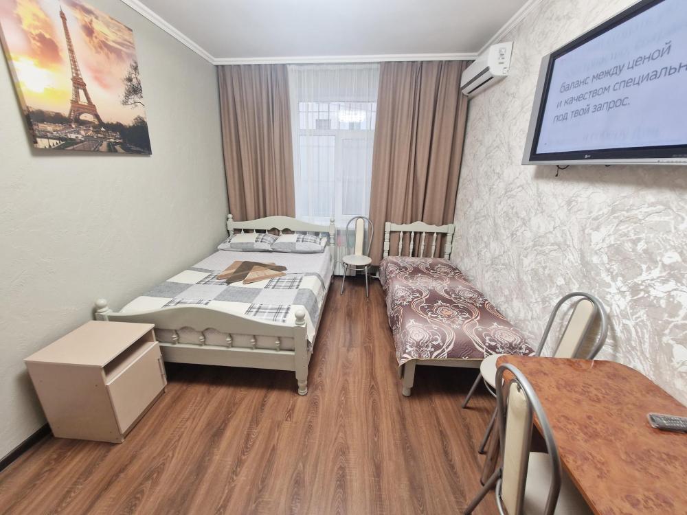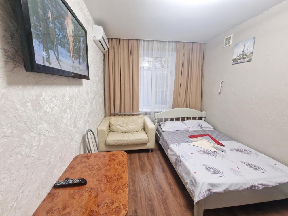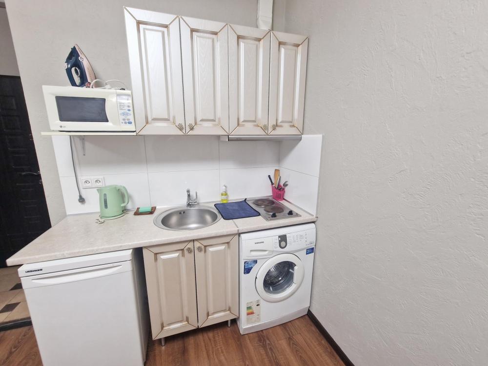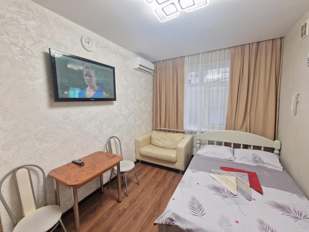 Студия с вместимостью до 3 гостей. В квартире есть все, что нужно для комфортного проживания: двуспальная кровать, раскладной диван, постельное белье и полотенца, посуда, микроволновка, телевизор, Wi-Fi, гигиенические и гладильные принадлежности, стиральная машина, холодильник, фен.