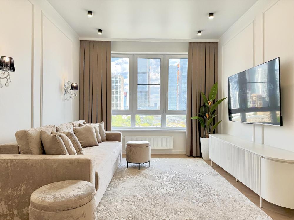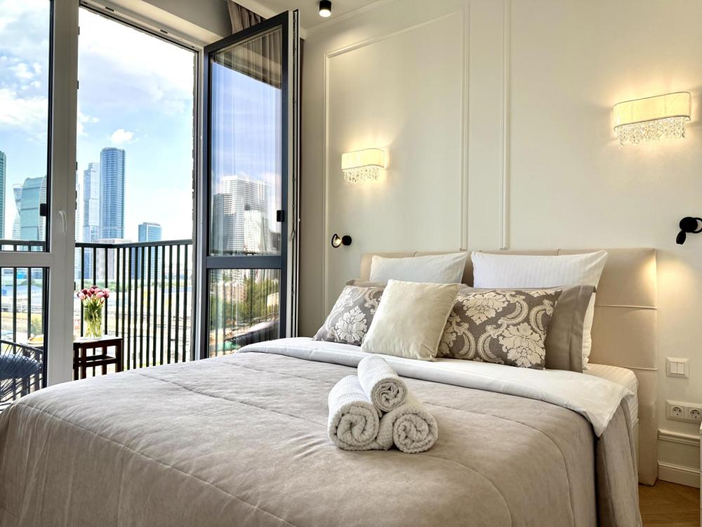 Роскошный дизайнерский люкс с видом реку и Москва-Сити! Лучший вид в этом ЖК - ближайшая башня к Сити с 12 этажа вид из всех окон и балкона! Находится в премиальном жилом комплексе бизнес-класса, первая линия с видом на Москва-Сити, двором-парком и детскими площадками?️ Расположение: 430 метров до метро Фили, автовокзала (пешком 3 минуты)!!! До центра 12 минут! Воспользуйтесь преимуществами: потрясающий вид на Сити, собственный балкон. Авторская удобная планировка и респектабельный дизайн. Французское окно в спальне. Продуманная система сна: премиальный ортопедический матрас, дорогое постельное белье страйп-сатин. В квартире есть вся бытовая техника и мебель (кондиционеры, посудомойка, фен, утюг, гладильная доска, стиральная машина, плита, холодильник, СВЧ-печь, кондиционер, духовой шкаф , обеденная зона, шкафы, и т.д.); -белоснежно-ароматные полотенца и постельное белье; -высокоскоростной wi-fi; -одноразовые косметические принадлежности, шампунь, гель, зубные наборы, одноразовые тапочки.