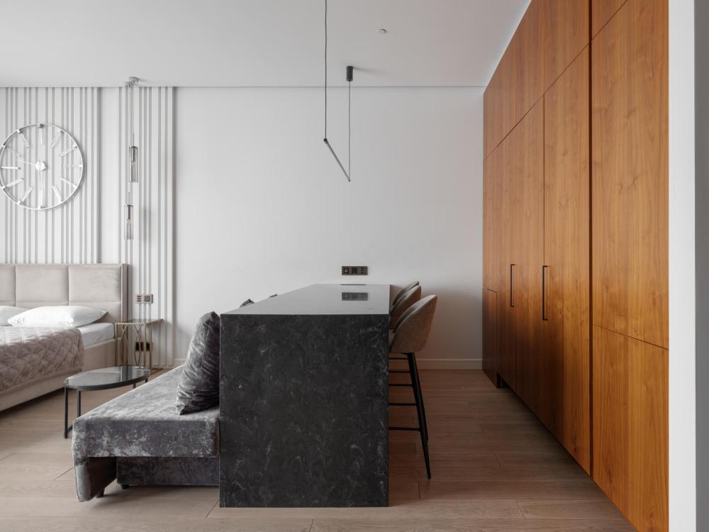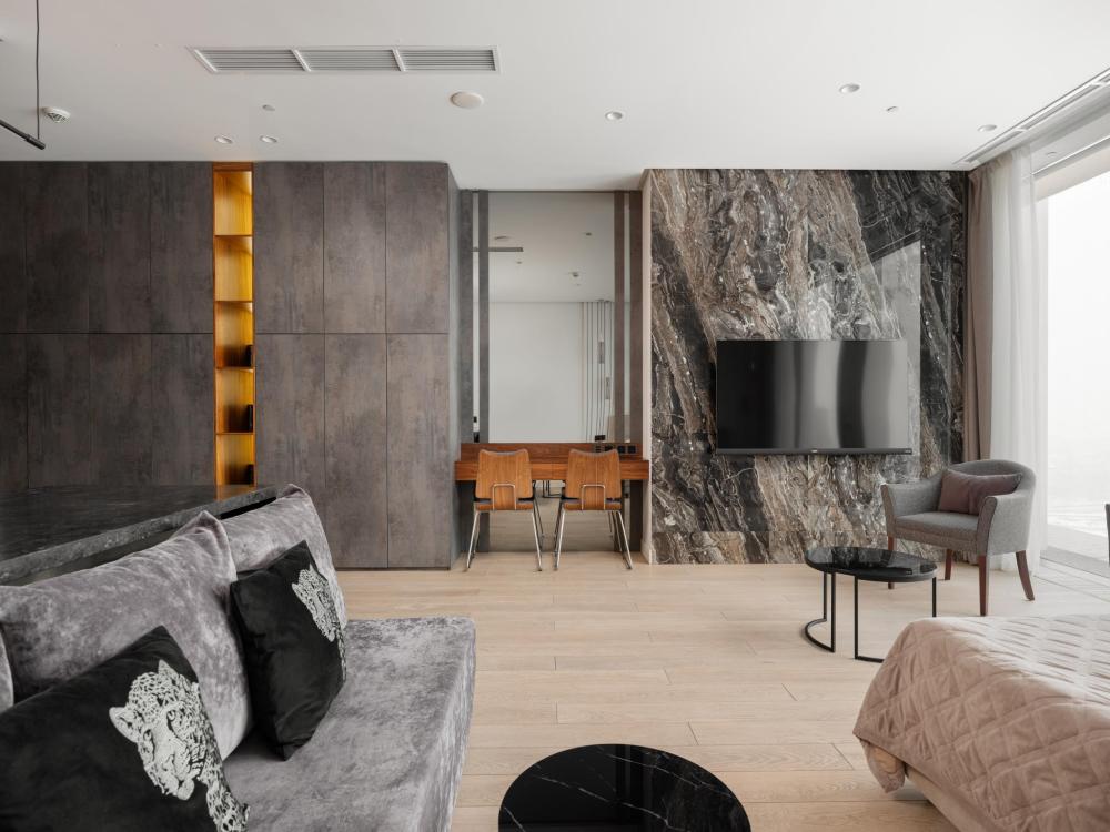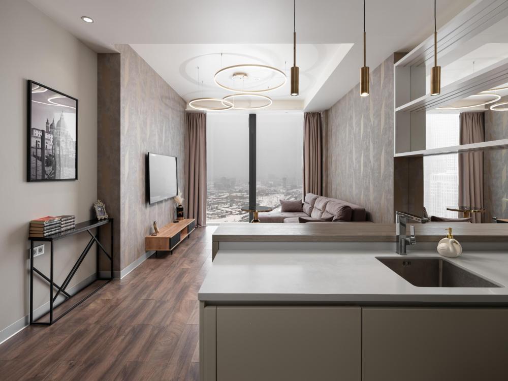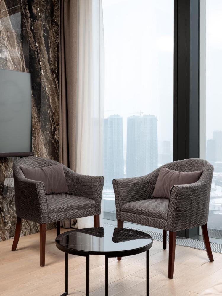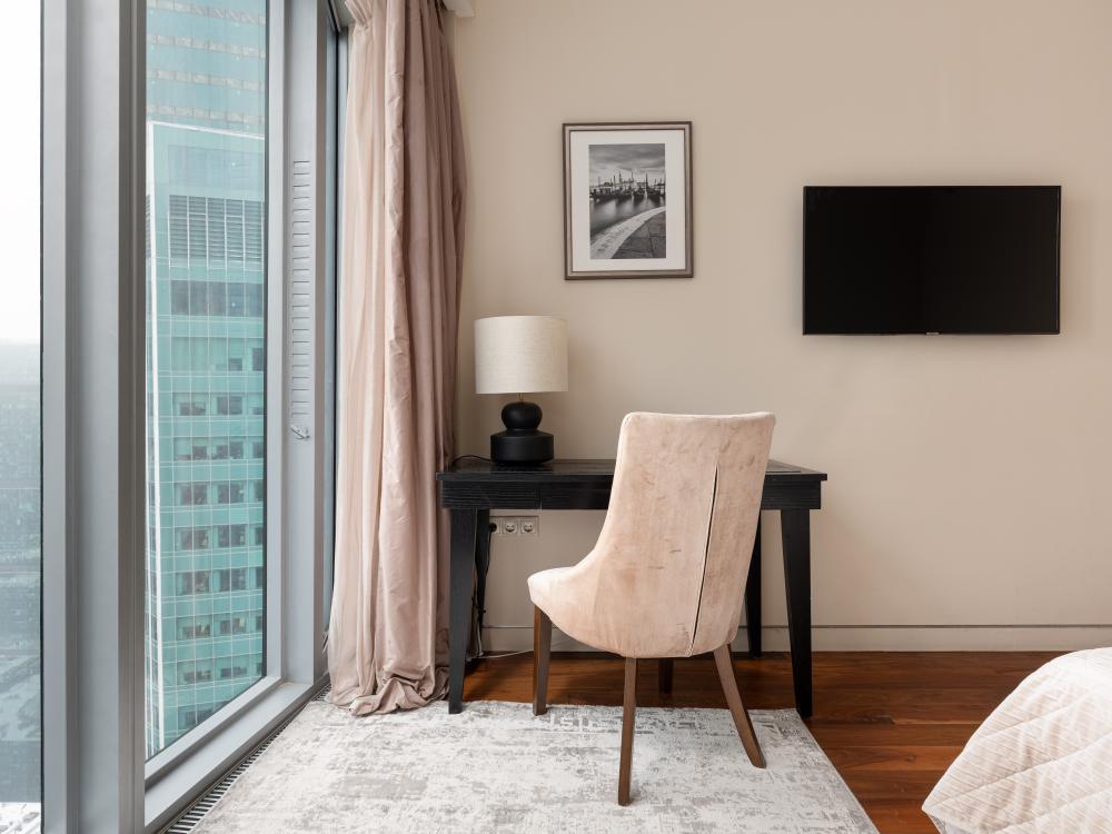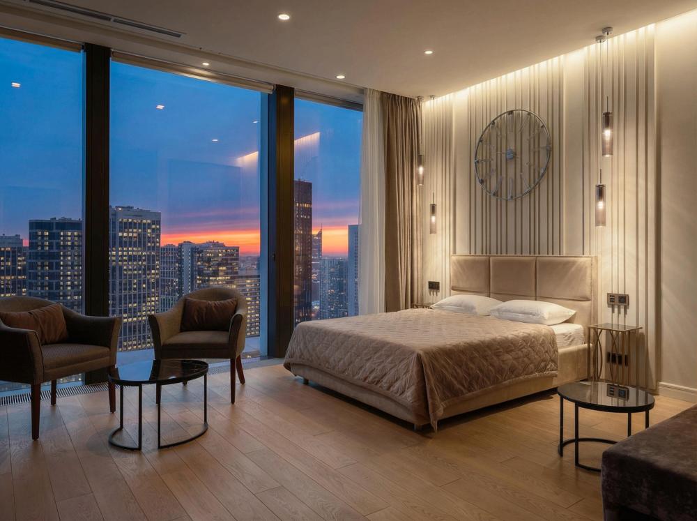 Уютная студия апартамент в башне "Нева" Sirius 51 кв.м. на 28 этаже с дизайнерским ремонтом и видом на городскую панораму. Вид на закатную сторону! Одна из самых новых башен Москвы Сити.