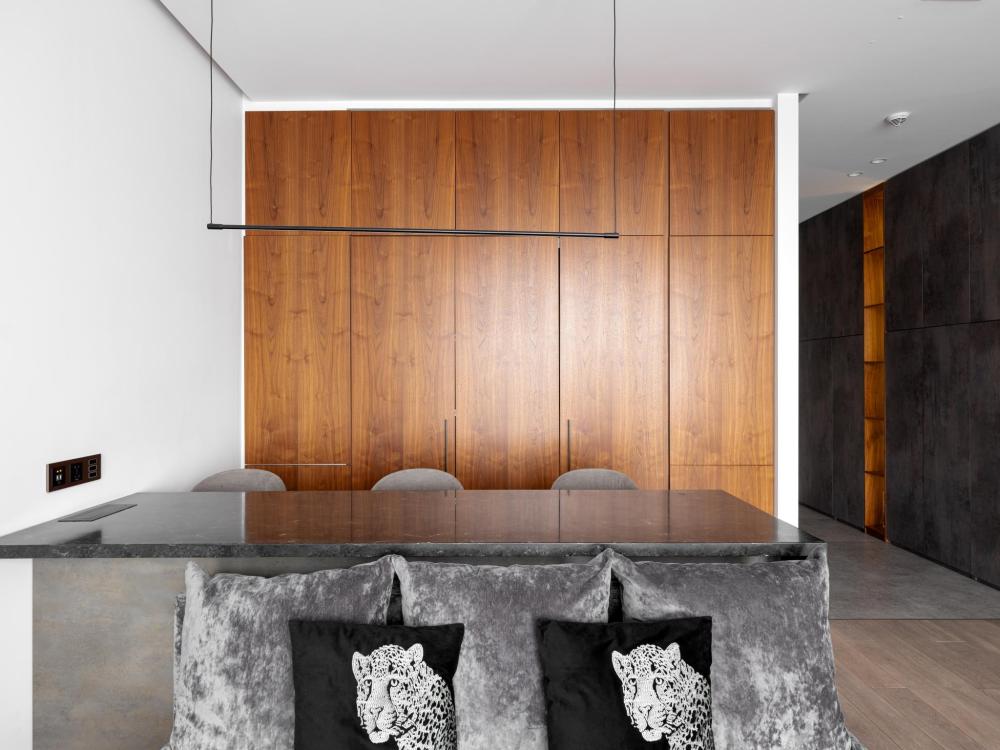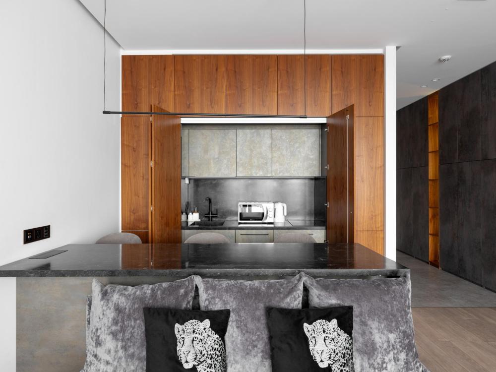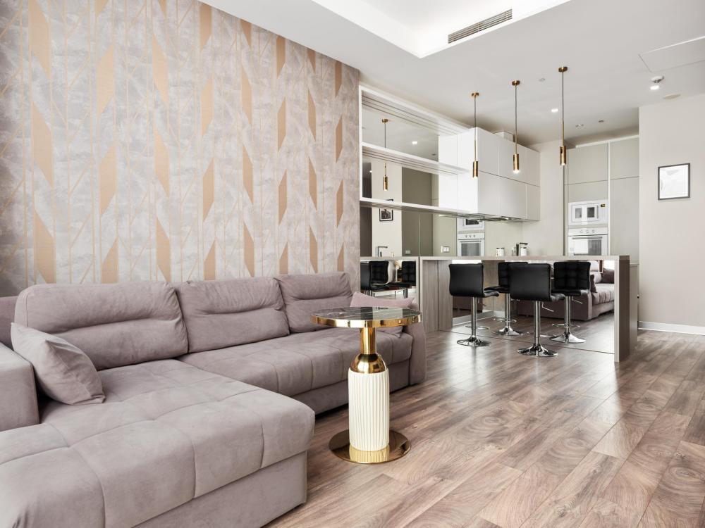Уютный двухкомнатный апартамент в башне "Нева" Libra 70 кв.м. на 38 этаже с дизайнерским ремонтом и видом на панораму башен Москвы Сити. Большой уютный раскладной диван и стильная черная кухня. Одна из самых новых башен Москвы Сити.