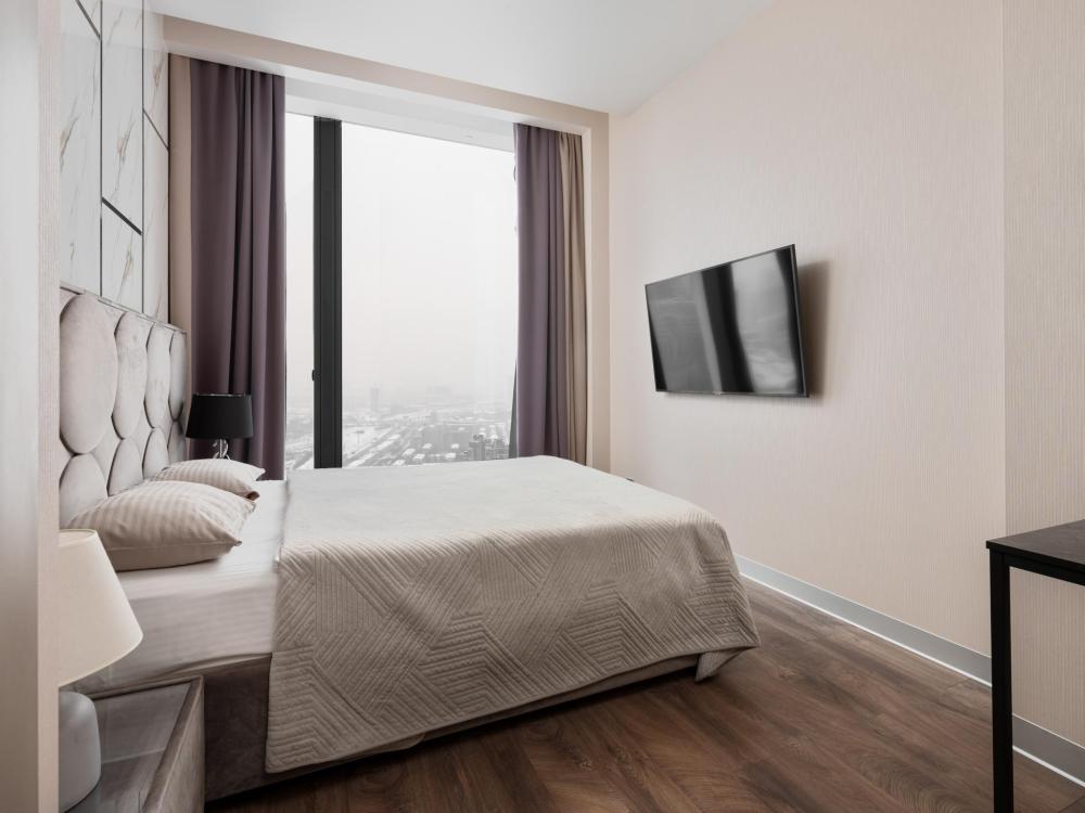В башне Нева на 47 этаже расположен прекрасный двухкомнатный апартамент с замечательным видом на городи на башни Москвы Сити. В апартаментах находится всё необходимое для комфортного проживания: кухня со встроенной бытовой техникой, санузел, полноценная ванная комната, включающая в себя ванную, душ, туалет, раковину и все необходимые туалетные принадлежности. Система Климат-контроля, бесплатный Wi-Fi. В квартире имеется всё необходимое для проживания.