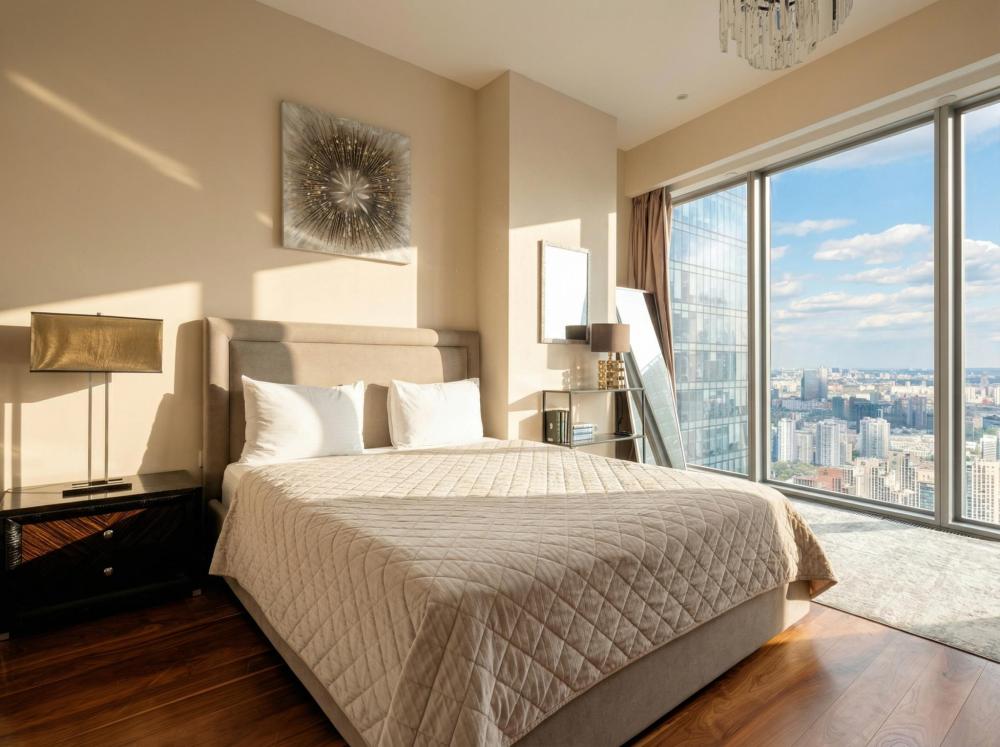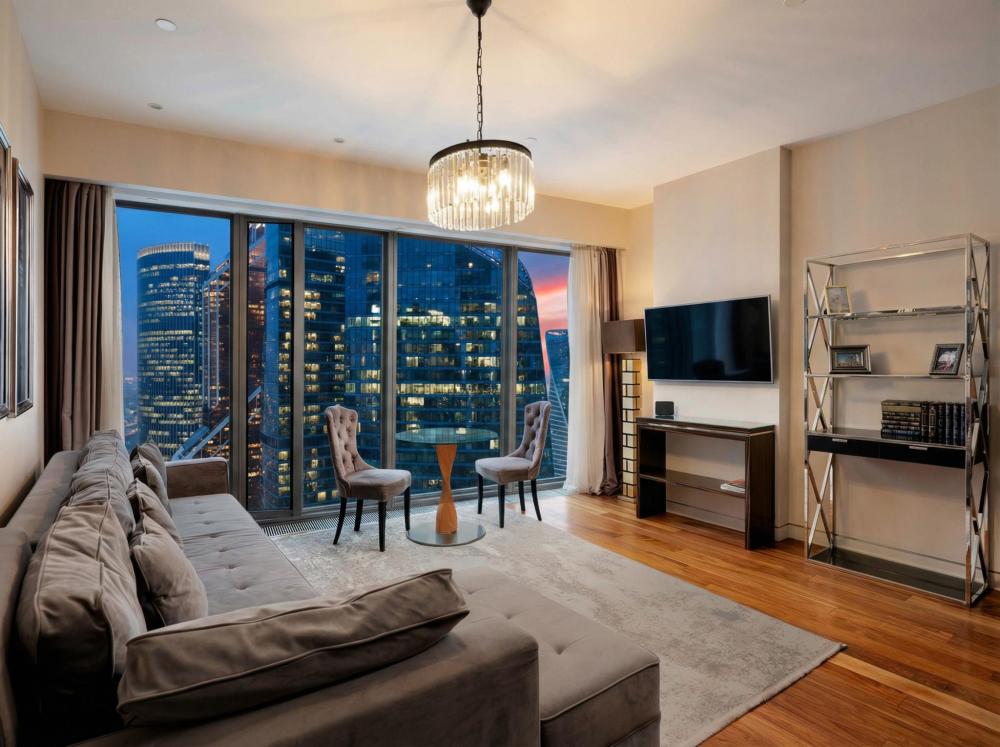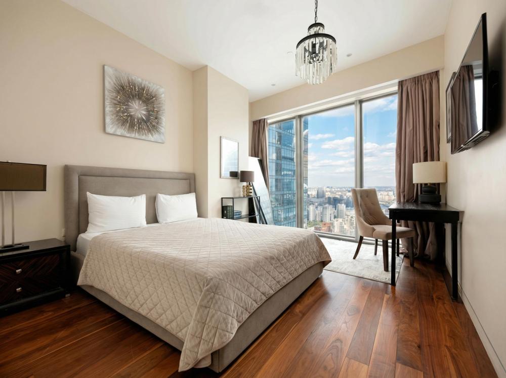 Элитные трёхкомнатные апартаменты с панорамным видом и 2 спальнями и гостиной. Вид на Москву реку, расположены на 23 этаже в небоскрёбе Город Столиц с дизайнерской и дорогостоящей мебелью. В Апартаментах есть все необходимое для проживания: Wi-Fi, кондиционер, полотенца, тапочки, халаты, кухня, посуда, ванные и туалетные принадлежности, чай, кофе, вода. Отличное месторасположения как для бизнеса так и для отдыха.