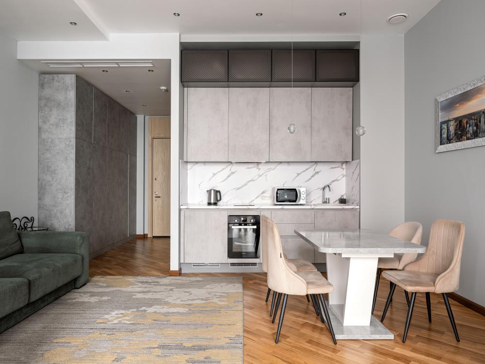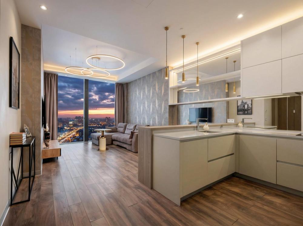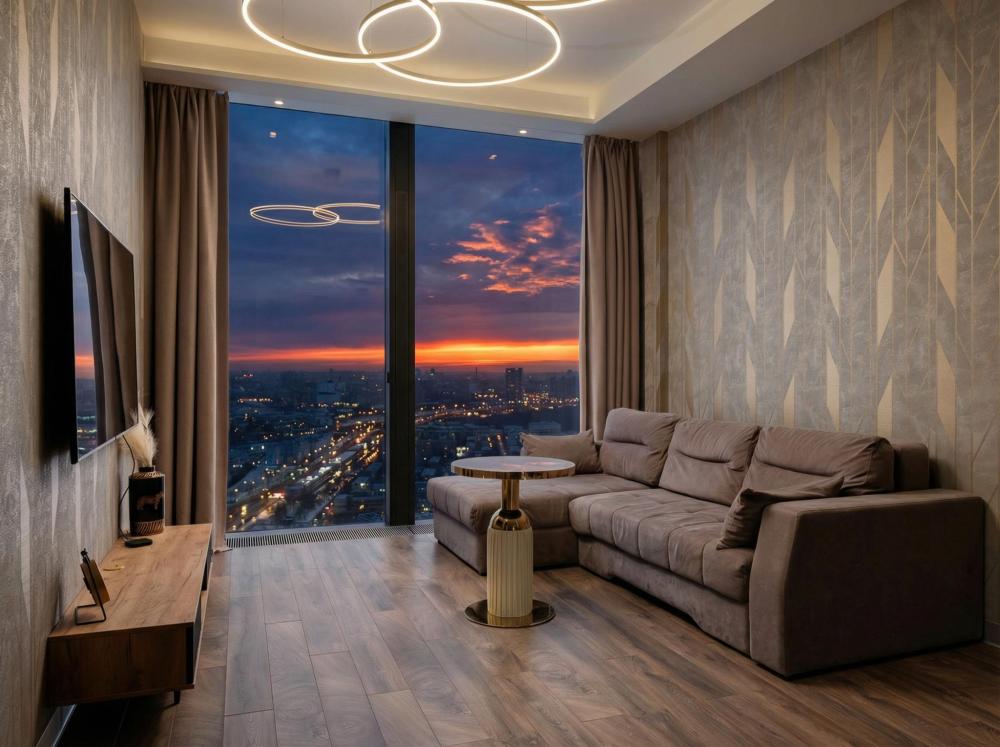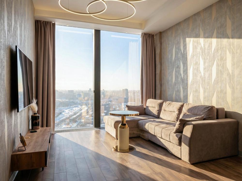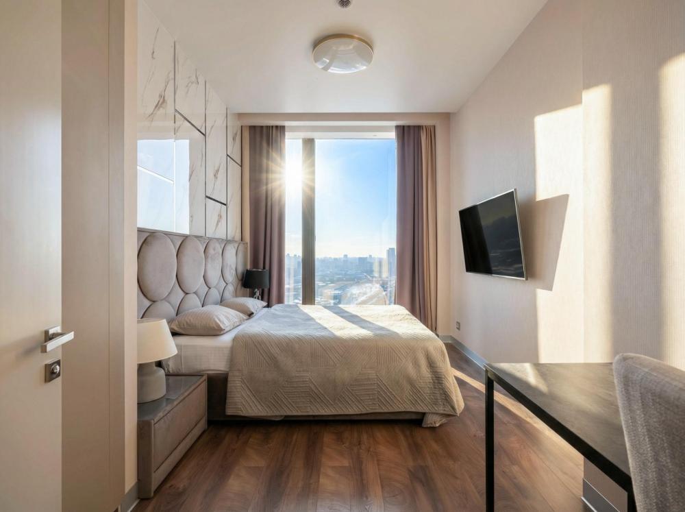 Уютная студия апартамент в башне "Нева" Shedar 51 кв.м. на 28 этаже с дизайнерским ремонтом и видом на городскую панораму. Вид на закатную сторону! Одна из самых новых башен Москвы Сити.