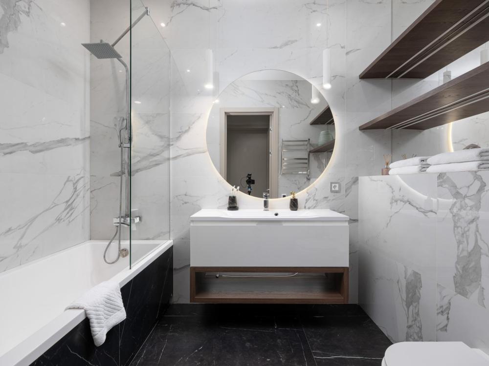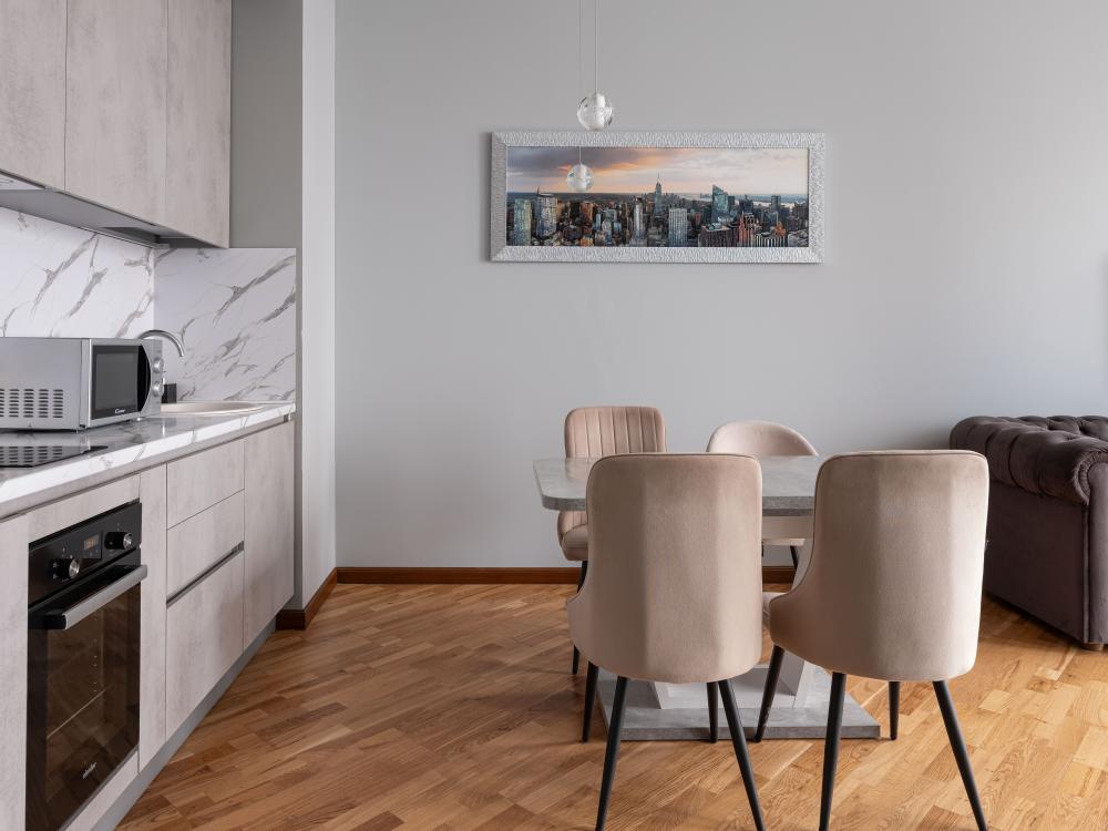 В башне ОКО на 51 этаже расположен прекрасный двухкомнатный апартамент с замечательным видом на город, а также видны башня Федерация и Меркурий. В апартаментах находится всё необходимое для комфортного проживания: кухня со встроенной бытовой техникой, два санузла, полноценная ванная комната, включающая в себя ванную, душевую кабину, туалет, раковину и все необходимые туалетные принадлежности. На 85 этаже расположен знаменитый ресторан Русский, который не оставит вас равнодушным своим шикарным видом на город. Система Климат-контроля, бесплатный Wi-Fi. В квартире имеется всё необходимое для проживания.