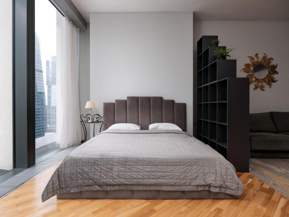 Уютная студия апартамент в башне "Нева" Sky 50 кв.м. на 28 этаже с дизайнерским ремонтом и видом на городскую панораму. Вид на Москву Сити! Одна из самых новых башен.