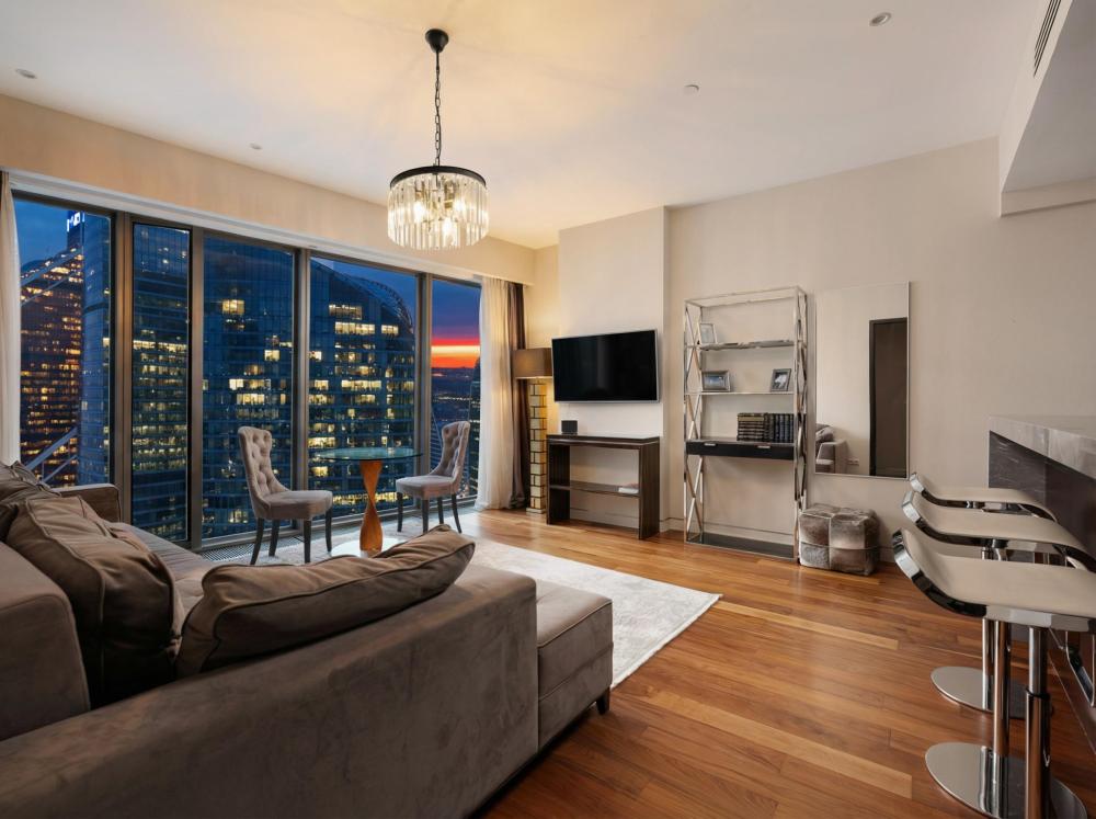2х комнатные апартаменты находятся в самом центре Москвы в ММДЦ Москва Сити в башне ОКО на 51 этаже. В апартаментах находится всё необходимое для комфортного проживания: кухня со встроенной бытовой техникой, ванную, туалет, раковину и все необходимые туалетные принадлежности. На 85 этаже расположен знаменитый ресторан Русский и Инсайт, которые не оставят вас равнодушными своим шикарным видом на город. Система Климат-контроля, бесплатный Wi-Fi. В квартире имеется всё необходимое для проживания.