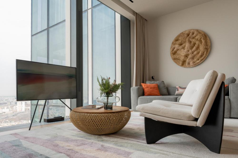 Добро пожаловать в стильный угловой апартамент на 62 этаже башни Neva Towers, созданный для тех, кто ценит эстетику, комфорт и современный скандинавский стиль. Интерьер был разработан известной дщизайн-студией и мы постарались создать максимальный уют и комфорт для вашего проживания! Из панорамных окон открывается панорама на Москву закат большого города! Апартамент станет идеальным для деловых встреч, романтического свидания, бизнес-командировки, творческого вдохновения, съемки контента (возможна почасовая аренда) или просто комфортного отдыха. В вашем распоряжении: - Просторная кухня-гостиная с большим столом, за которым удобно проводить переговоры или собраться дружной компанией за бокалом чая. В столовой зоне есть все необходимое для приготовления и приема пищи, а центр пространства - уютная диванная зона с креслом и столиком для настольных игр. Угловая просторная спальня с кроватью queen-size и шторами blackout для комфортного сна. А также спальня для Ваших деток или партнеров с панорамой на город. Стильная ванная комната, с просторной душевой кабиной. Скрытые системы хранения, которые поддерживают ощущение чистого пространства и акцентируют внимание на дизайнерские детали. Мы уже позаботились о вас, в апартаменте есть все необходимое для комфорта: - уютные халаты и тапочки, - полотенца, гигиенические наборы и фен, - посуда, все необходимое электроприборы, чай и кофемашина. А для любителей спорта: на 4 этаже башни расположен фитнес-клуб Crocus Fitness c открытым подогреваемым бассейном и возможностью оформления гостевых посещений (20 000 руб - на 1 мес. ) подземный паркинг - 4 500 руб/сутки. Вход в башню - строго по пропускам, регистрация гостей на ресепшн по оригиналам документов! Не более 10 человек! ⏰ ЗАЕЗД: после 15:00 ⏰ ВЫЕЗД: до 12:00 Есть опция позднего выезда / раннего заселения, за доп плату, от 4 000 руб/час. С целью сохранности имущества, мы взимаем страховой депозит и возвращаем его в день выезда после уборки и проверки апартамента! Под мероприятия размер депозита выше, рассчитывается индивидуально. Для несовершеннолетних апартамент сдается только с условием внесения двойного депозита и расписки от родителей каждого из гостей.