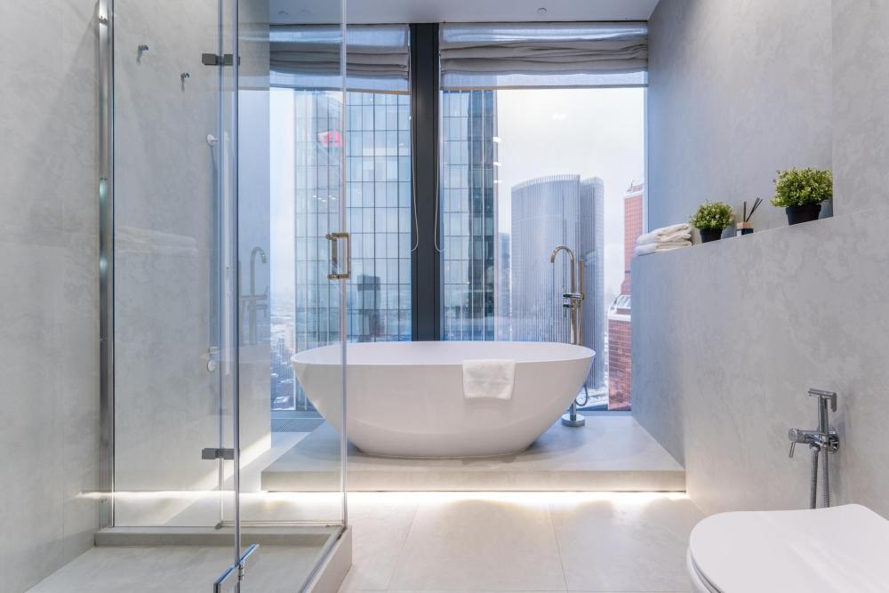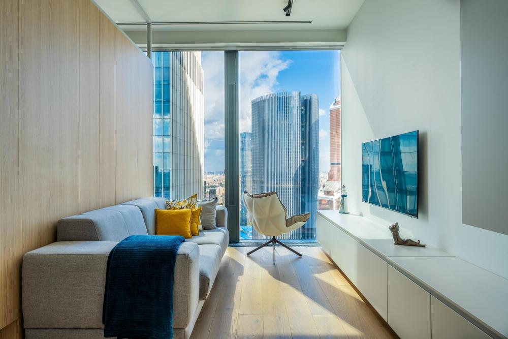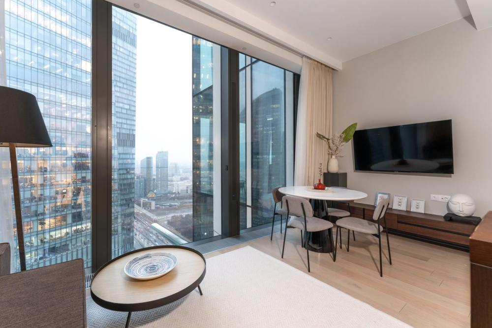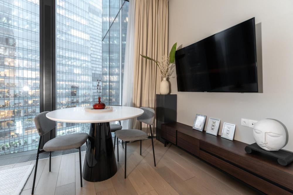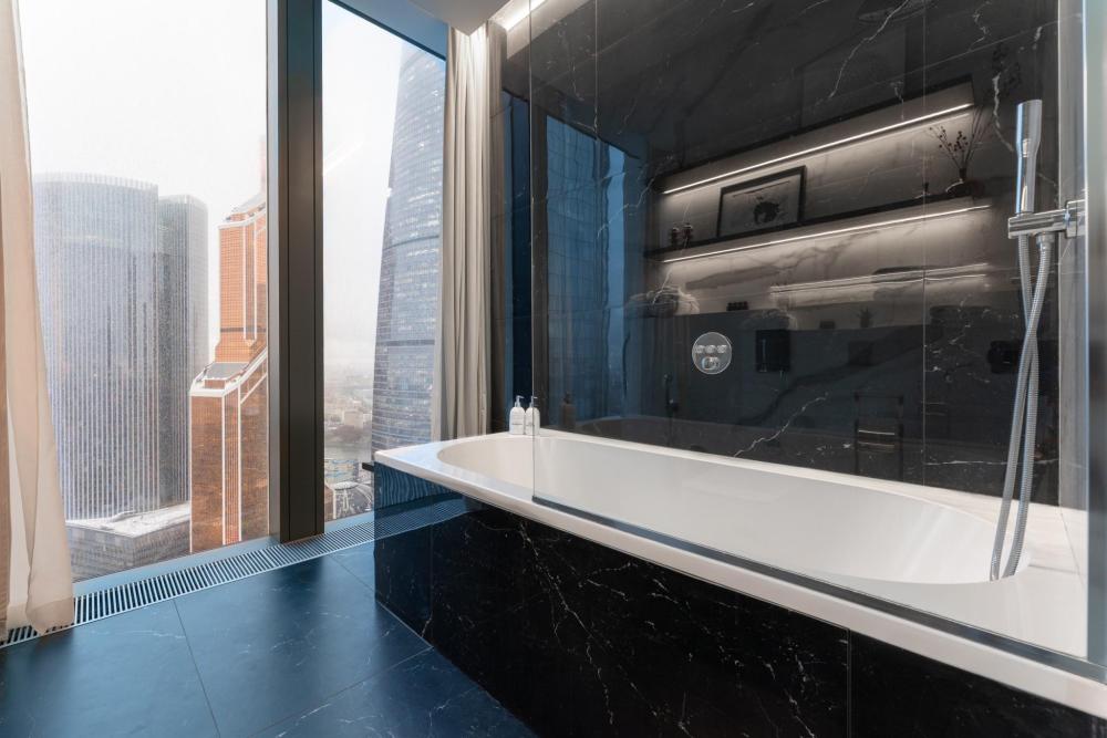Представляю вам самый долгожданный апартамент с ванной у окна! Потрясающий минималистичный дизайн, консервативные цвета в интерьере, стильная отделка и угловой вид на две стороны Москвы что ещё нужно для комфортного пребывания в Москве сити?! Прочувствуйте настоящий комфорт и уют, принимаю ванну после трудового дня или встретившись со своей второй половиной за бокалом вина. Возможно размещение до 10 человек, если Вы решите отметить свой день рождения или просто собраться в компании друзей. Мы позаботились обо всем необходимом: посуда, тапочки, халаты, полотенца, гигиенические наборы все это уже ждёт Вас в апартаментах. Инфраструктура башни позволит не выезжать из МоскваСити, а наслаждаться жизнью в деловом центре сполна. Совсем недавно на первом этаже нашей башни открылся стейк хаус Azur by Erdal, напротив него ресторан Blueffin, в этом же здании - Кофемания, и еще несколько кофеен распахнули свои двери для Вас. В шаговой доступности круглосуточная Азбука вкуса, Перекресток, EuroSpar. Для любителей активной жизни, на 4 этаже располагается Crocus фитнес, в котором есть возможность посещения гостевых посещений и SPA комплекса.