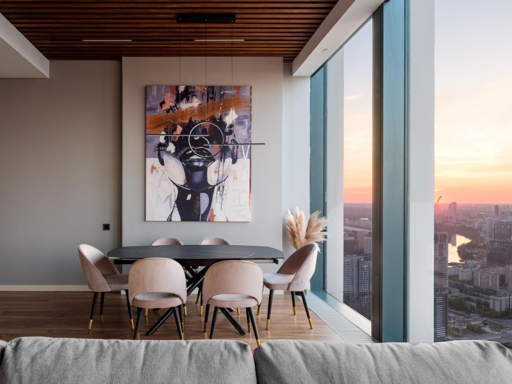 Трехкомнатные апартаменты на 40 этаже с потрясающим видом на башни и город. 2 изолированные спальни + 2 санузла, большая кухня-гостиная и гардеробная комната. Возможность проведения мероприятий, а также проживания семейных пар и детей. Прекрасный звук, колонки по всему апартаменту, встроенная кофемашина, 3 больших ТВ в каждой из комнат, винный шкаф, духовка, микроволновая печь, варочная плита - вся техника от SMEG и Kuppersberg. Апартаменты очень просторные, более 100 кв. м., выполнен дизайнерский ремонт с сочетанием современного и классического стилей, красивые аксессуары создают уют и комфорт. Очень крутое расположение - середина башни, вид на всю Москву-Сити. И при этом не просто стекла в стекла, городская панорама также видна. В башне расположились лучшие рестораны: Erdal, Blueffin, Кофемания, Angel's cake, в башнях напротив - магазины 24/7 - Азбука вкуса, SPAR, химчистка ICleaning, аптека 36,6, кинотеатр ОККО. В самой башне есть SPA-комплекс и фитнес-клуб Crocus Fitness с открытым круглогодично подогреваемым бассейном. Для детей на 4 этаже небольшой приватный парк, а для взрослых там же глоток свежего воздуха.