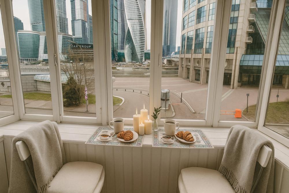 • Панорамный балкон с видом на Сити