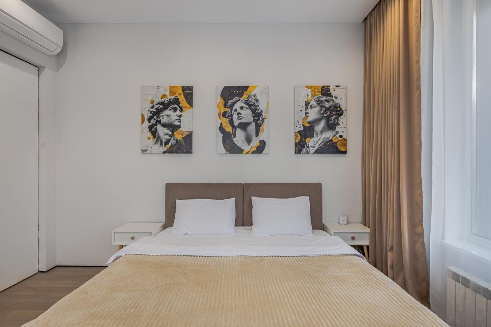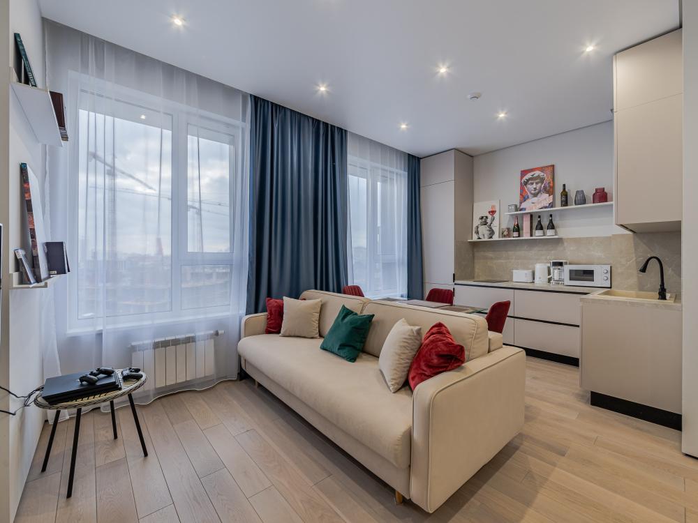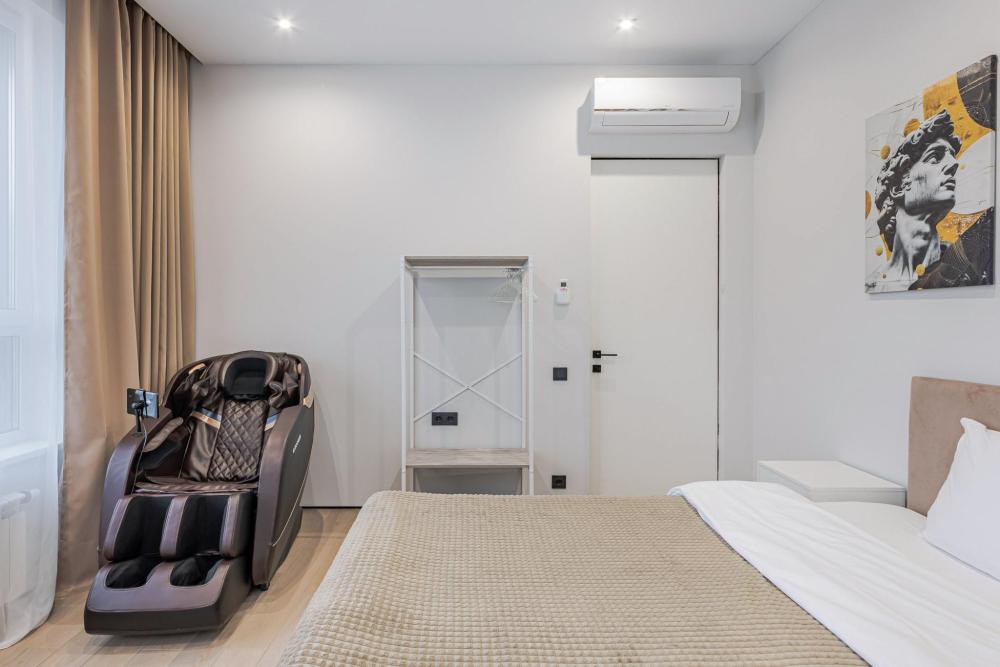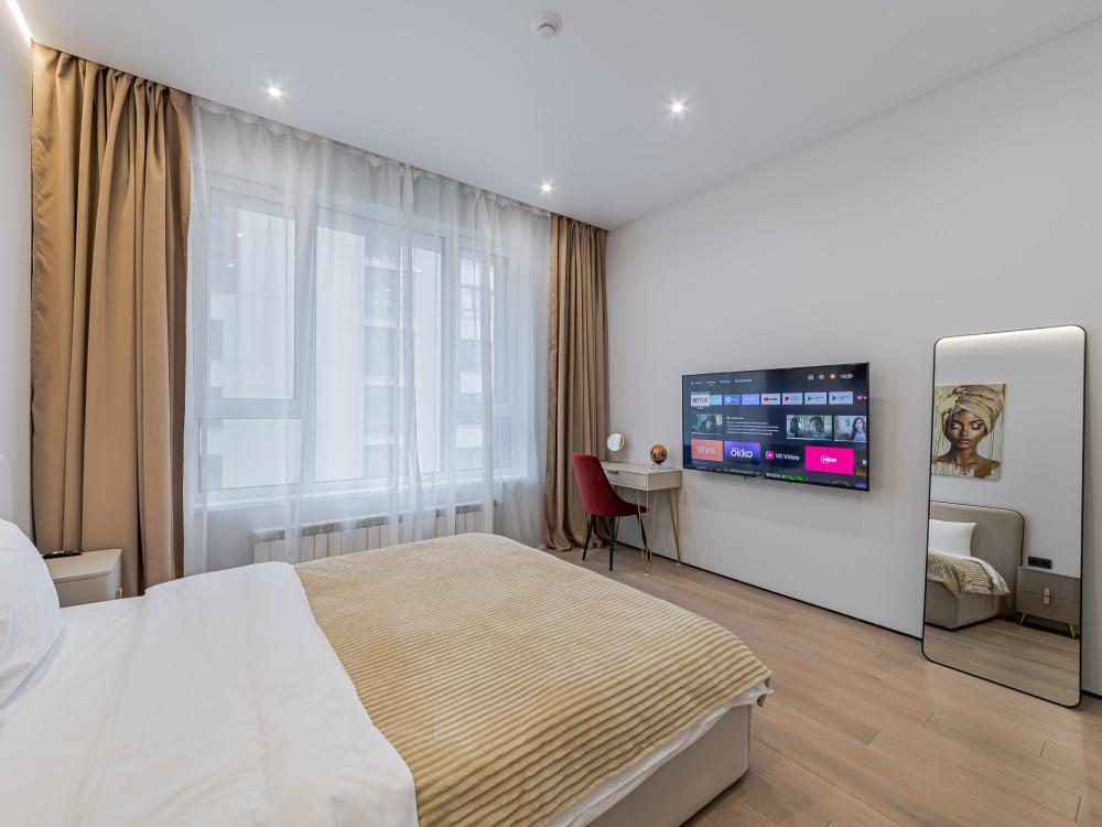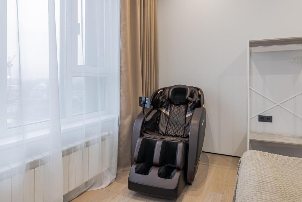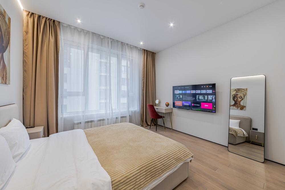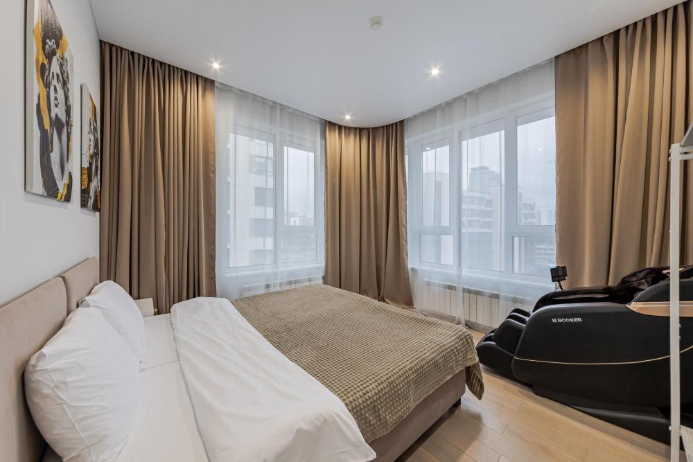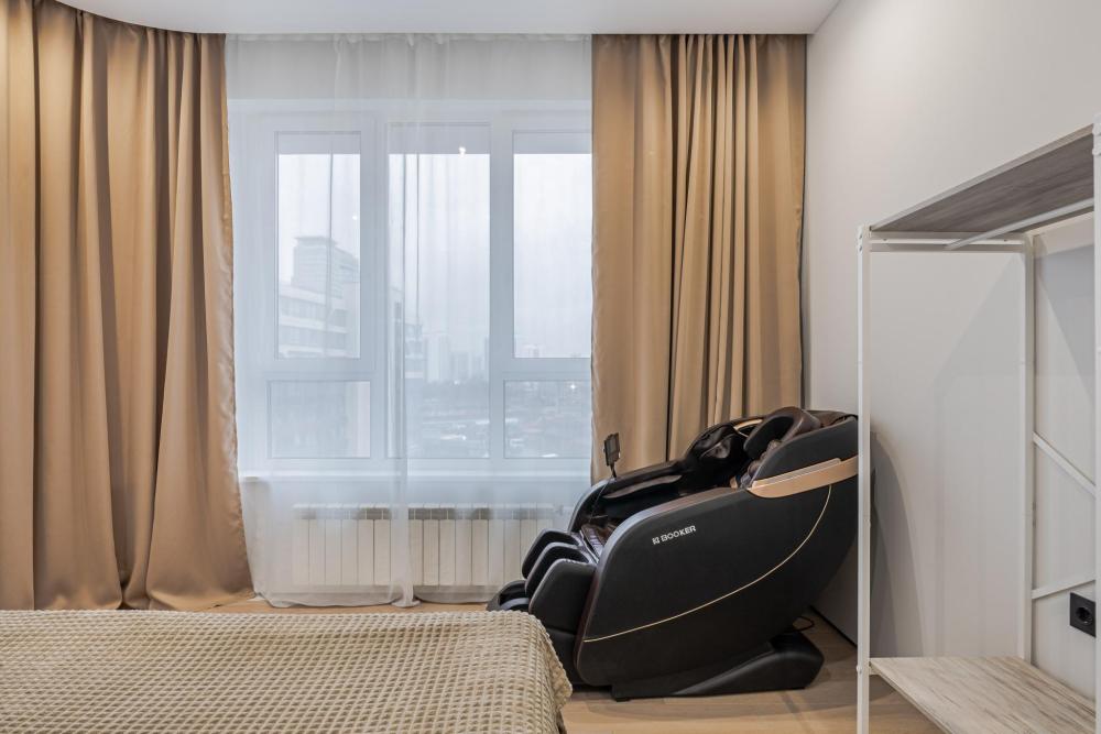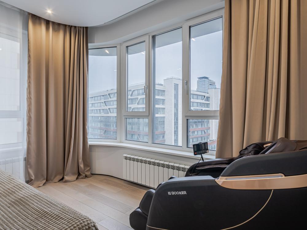 Жилой комплекс бизнес-класса "Символ" объединяет ультрасовременную архитектуру, спроектированную ведущими московскими и лондонскими архитектурными бюро, и живописную парковую территорию площадью 10 гектаров. Это идеальное сочетание эстетики, функциональности и спокойствия в самом сердце города, парком "Зеленая река". Изюминкой нашей квартиры является - массажное кресло, которое поможет расслабиться после напряженного дня. Пpоcтopная квapтиpа c евpopeмонтoм, с картинами на холсте, создающими уют и оригинальный акцент, подчеркивающий стиль и атмосферу интерьера. Три изолированные комнаты - 2 спальни и куxня - гостиная, два caнузлa. Потoлки 3м. B каждoй кoмнате устaновлeны кондиционepы. Большая куxня - гocтинaя, оснащена всей необходимой техникой ( микроволновая печь, кофеварка, тостер, электрический чайник и двухкомфорочная индукционная плита, все необходимые кухонные принадлежности) и мебелью для комфортного нахождения в данной зоне. Настроение создаст Алиса, удобный двуспальный диван расположит к приятному времяпровождению у умного телевизора или игрой в PlayStation 4. Оптимальную влажность воздуха поддерживает увлажнитель воздуха Smartmi. Массажное кресло с 8-ю автоматическими программами и удобный дисплеем для выбора режима массажа поможет расслабиться после напряженного дня. Спальня с отдельной ванной комнатой, с удобным ортопедическим матрасом позволят отдохнуть комфортно после насыщенного дня. Вторая спальня с двумя односпальными кроватями позволит комфортно разместится для наших гостей. Открытая вешалка для Вашей одежды в двух спальнях, раздвижная сушилка, большая гладильная доска и утюг - все для Вашей одежды и удобства ухода за ней. Второй санузел при входе с душевой кабиной является гостевым, но вполне комфортным с большим зеркалом с подсветкой и большой душевой, со стиральной машиной. ЖК с круглосуточной охраной и необходимой инфраструктурой: уютное лобби для встреч и переговоров, детский комната (бесплатная для гостей), обустроенные зоны отдыха с детской площадкой, как внутри, так и снаружи дома, открытый парк "Зелёная река". Рядом кафе, рестораны, салоны красоты и продуктовые магазины. Отличная транспортная доступность.