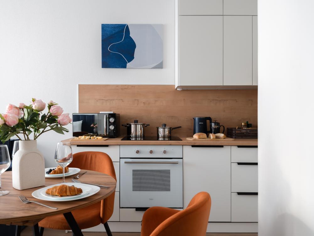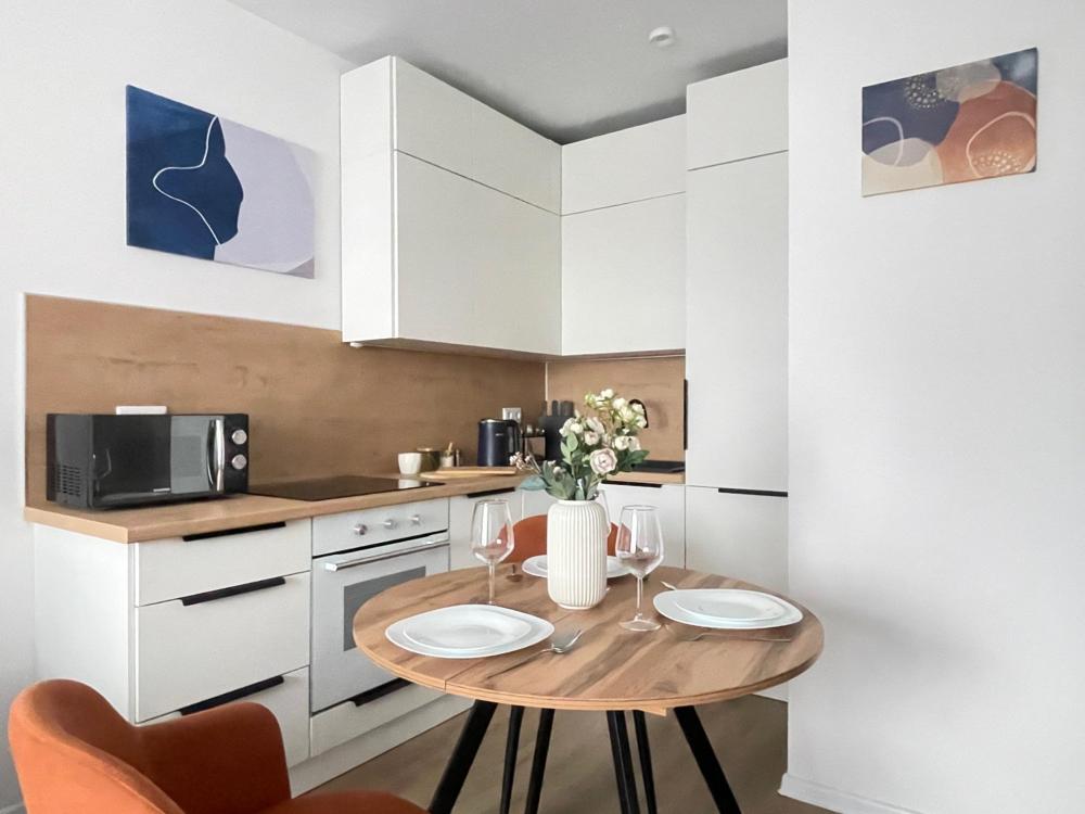 Дизайнерские апартаменты с панорамными окнами в новом ЖК “Руставели 14” - Рассчитаны на 4 гостей (отдельная спальня с двуспальной кроватью 180х200 и кухня-гостиная с раскладным диваном 150х200) - Кухня с полным набором техники, включая посудомоечную машину - Двухкамерный холодильник и СВЧ-печь - К услугам гостей - Идеально чистое постельное белье, полотенца, гель для душа, шампунь, одноразовые тапочки, утюг, фен - Стиральная машина - Бесплатный Wi-Fi - Smart TV - Рядом с домом множество бесплатных и платных парковочных мест.