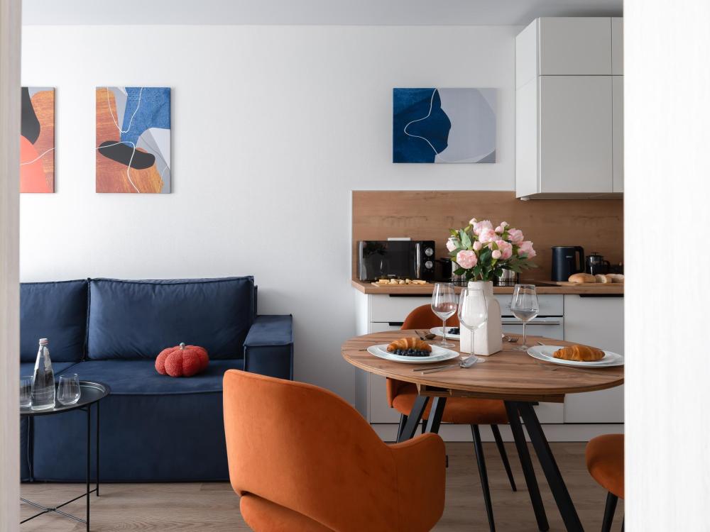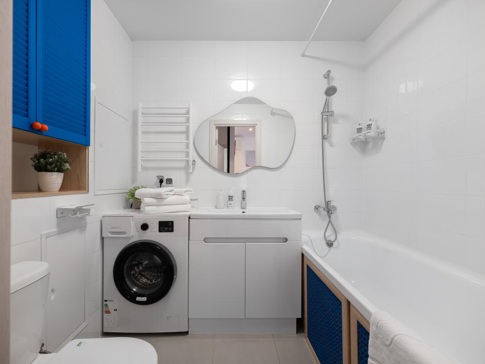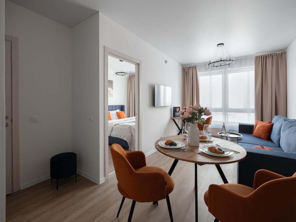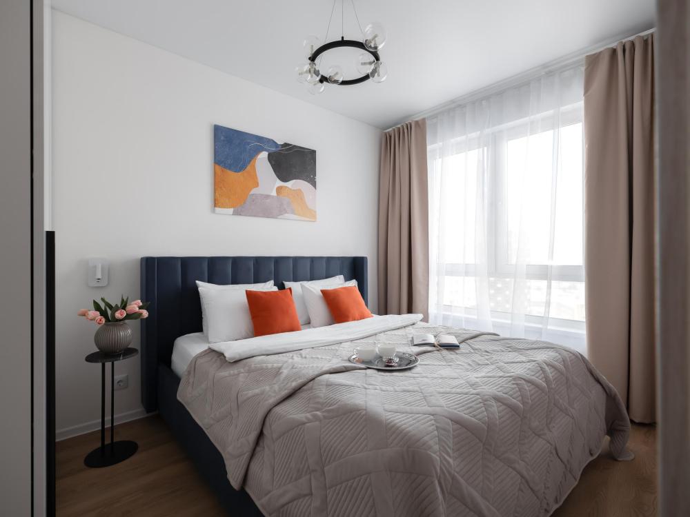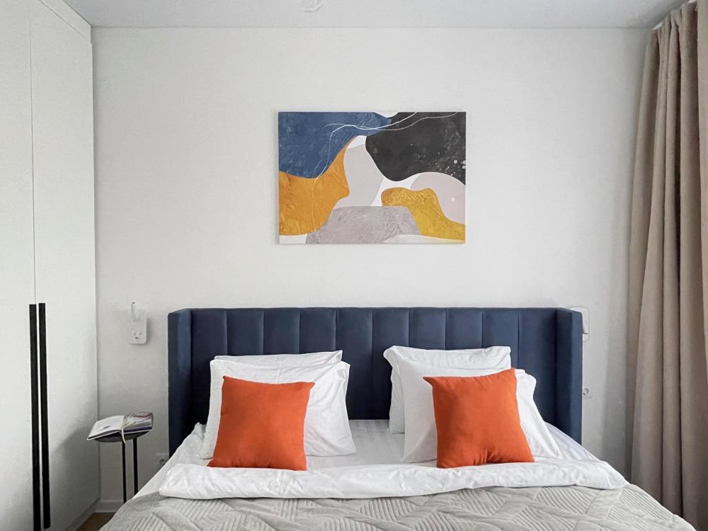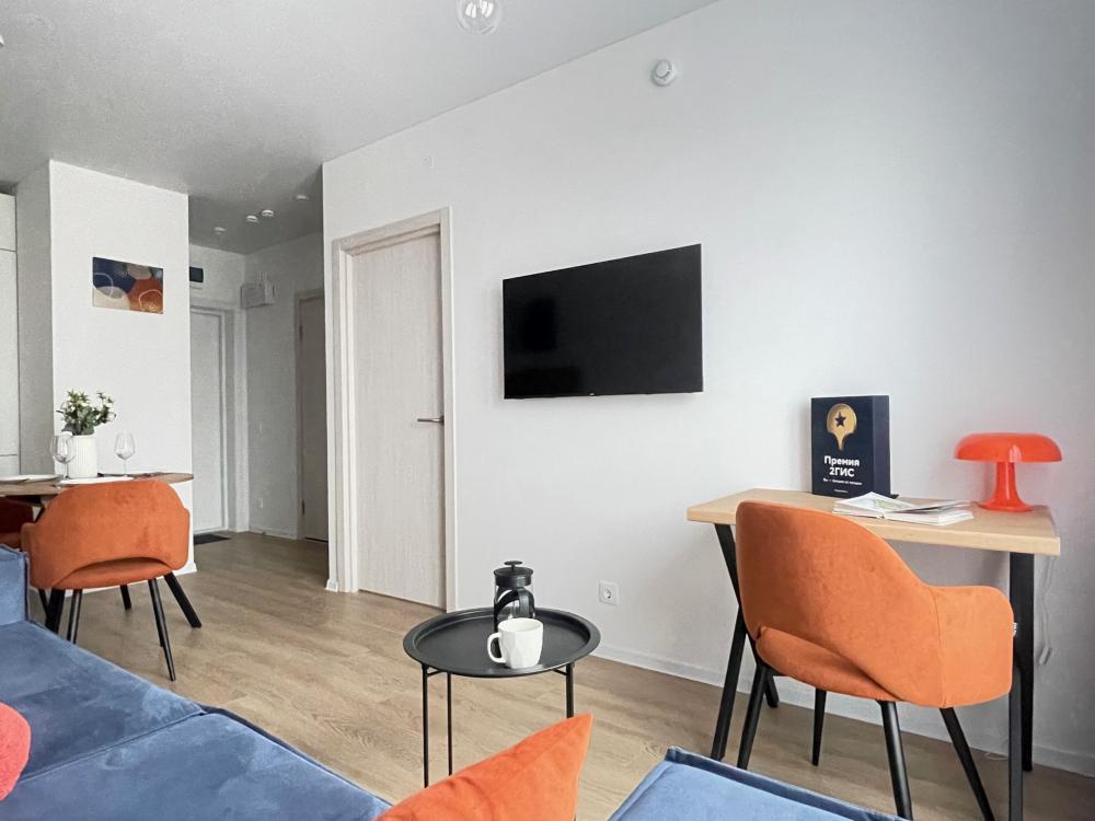 Дизайнерские апартаменты с панорамными окнами в новом ЖК “Руставели 14” - Рассчитаны на 5 гостей (отдельная спальня с двуспальной кроватью 160х200 и раскладным диваном 120х200, и кухня-гостиная с раскладным диваном 140х190) - Кухня с полным набором техники, включая посудомоечную машину - Двухкамерный холодильник и СВЧ-печь - К услугам гостей - Идеально чистое постельное белье, полотенца, гель для душа, шампунь, одноразовые тапочки, утюг, фен - Стиральная машина - Кондиционер - Бесплатный Wi-Fi - Smart TV - Рядом с домом множество бесплатных и платных парковочных мест.