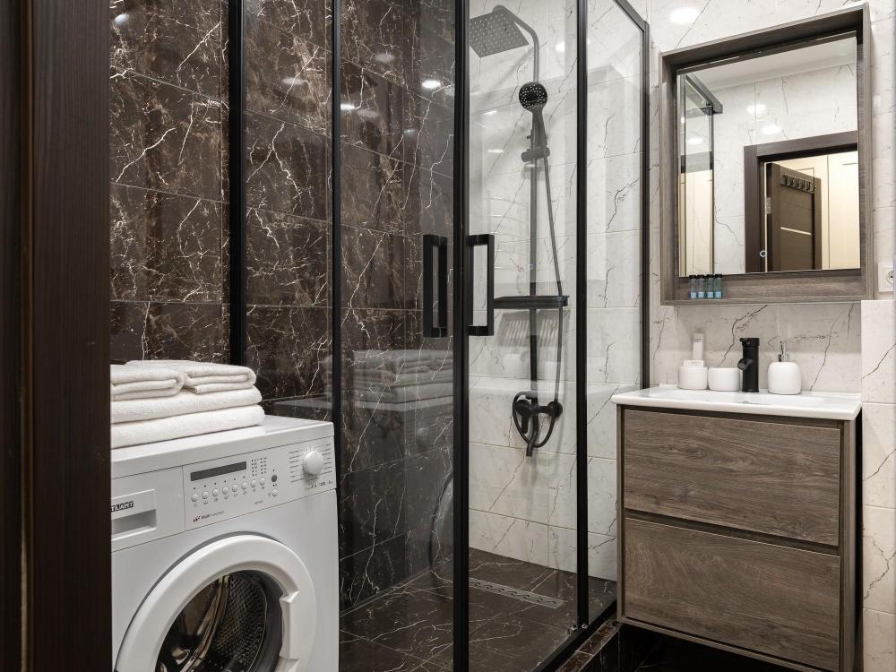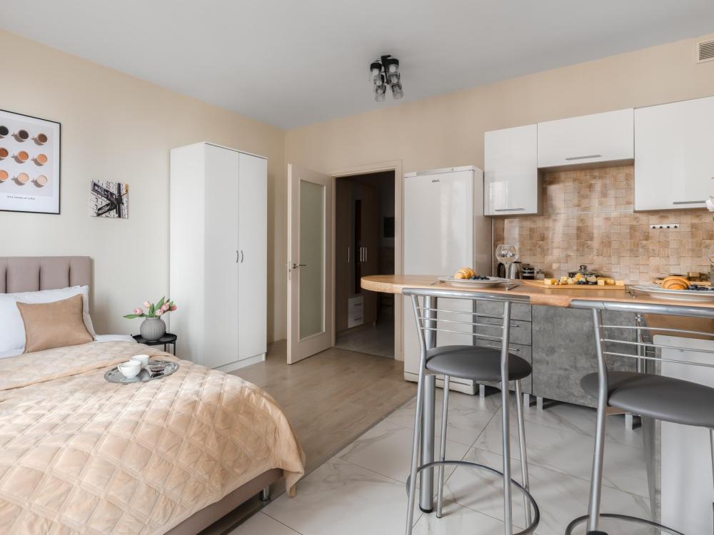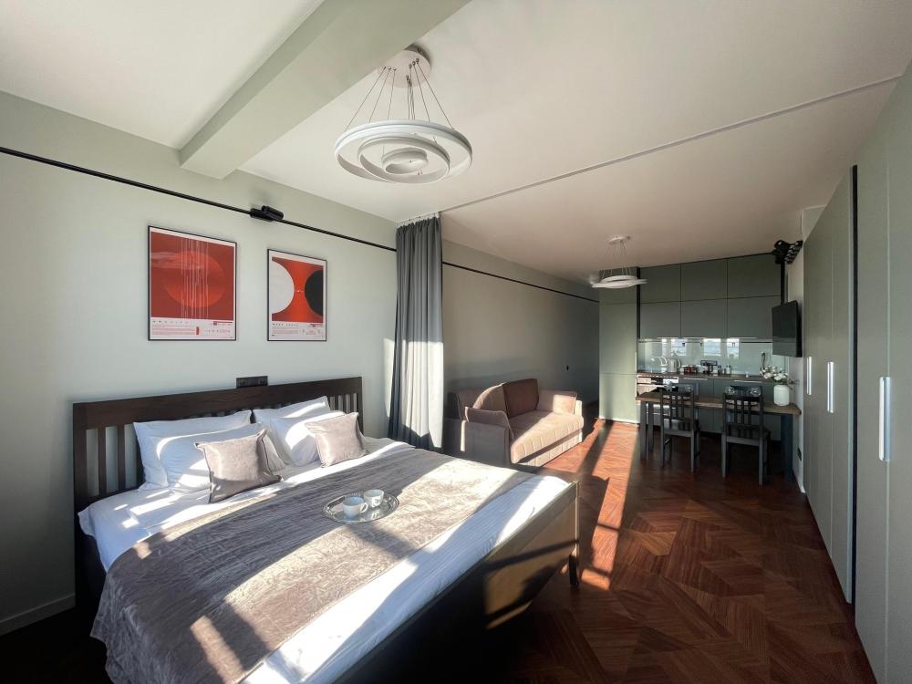 Дизайнерские апартаменты около м. Дмитровское на 14 этаже нового жилого комплекса "Савеловский Сити" - Рассчитаны на 3 гостей (двуспальная кровать 180х200, раскладной диван 130х190) - К услугам гостей - Идеально чистое постельное белье, полотенца, гель для душа, шампунь, одноразовые тапочки, утюг, фен - Стиральная машина - Бесплатный Wi-Fi - Smart TV 43” - Кухня с полным набором техники, включая посудомоечную машину - Кондиционер - Холодильник с морозильной камерой и СВЧ-печь - Рядом с домом бесплатные и платные парковочные места.