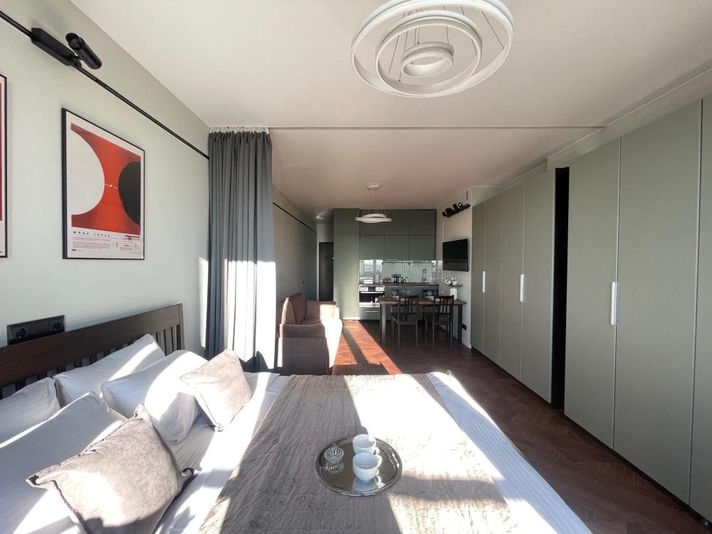 Дизайнерские апартаменты около м. Дмитровское на 17 этаже нового жилого комплекса "Савеловский Сити" - Рассчитаны на 2 гостей (двуспальная кровать 160х200) - К услугам гостей - Идеально чистое постельное белье, полотенца, гель для душа, шампунь, одноразовые тапочки, утюг, фен - Кондиционер - Стиральная машина - Бесплатный Wi-Fi - Smart TV - Полноценная кухня - Холодильник с морозильной камерой и СВЧ-печь - Рядом с домом бесплатные и платные парковочные места.