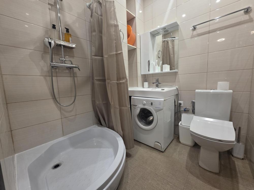 Необычный апартамент с ванной с гидромассажем на 2-х человек с прекрасным панорамным видом с 36-го этажа. “Парящая” кровать шириной 160см с ортопедическим матрасом и подсветкой по периметру, зеркальные откосы окон, вид на закат – все этот оставит незабываемые впечатления от пребывания в нашем апартаменте. Встроенный шкаф в средиземноморском стиле, мини кухня, стиральная машина и кондиционер сделает комфортным длительное пребывание у нас. Телевизор со Смарт ТВ и подключению к WIFI позволит посмотреть любимые фильмы и каналы.