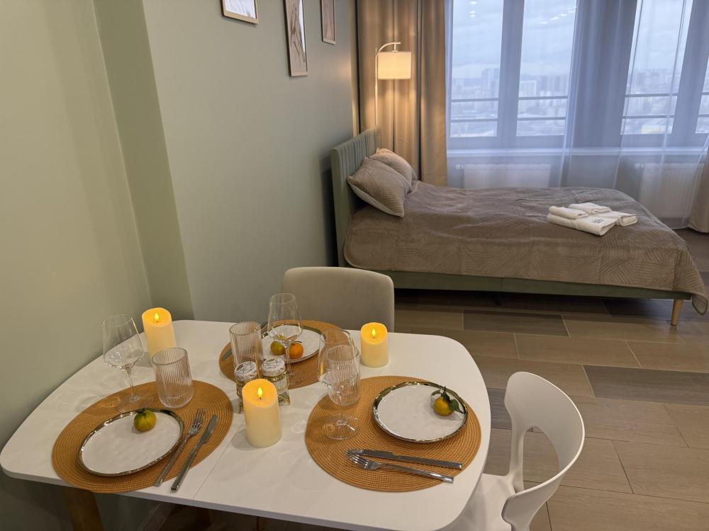 Апартамент Simple идеален для проживания семьи с детьми или компании друзей. В мастер спальне установлена двуспальная кровать и дополнительный стильный диван для отдыха, который при необходимости может раскладываться в спальное место 120х200см. В кухне-гостиной так же установлен диван для 2-х человек раскладывающийся в спальное место 140х200см. Кухня оборудована холодильником, элктроплитой, микроволновкой, электрочайником и комплектом посуды обеспечивающем комфортное проживание 5-ти человек. 29 этаж обеспечит отличный вид на город, а уютно оформленный балкон позволит им насладиться.