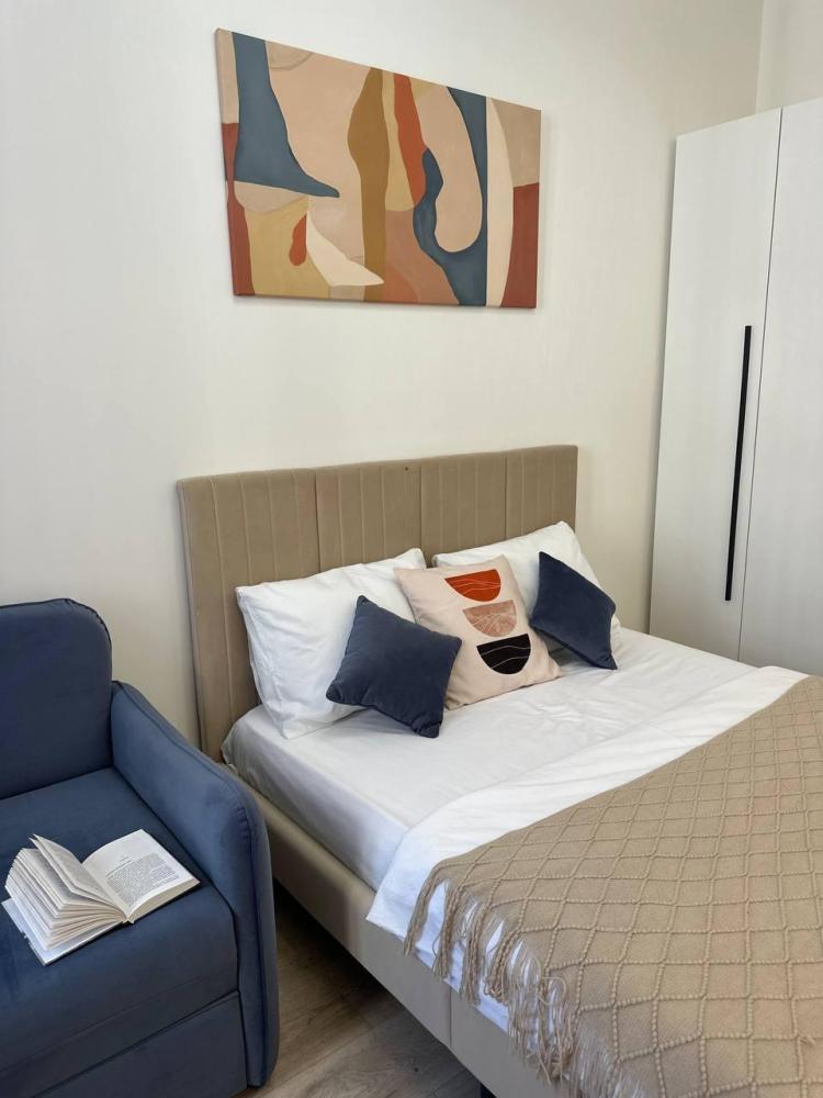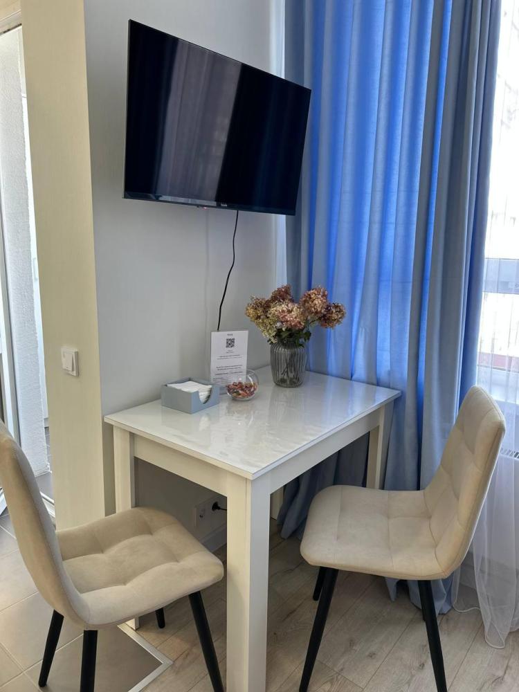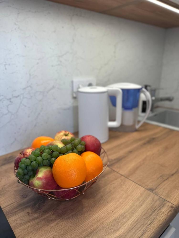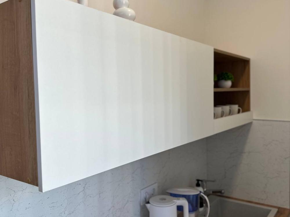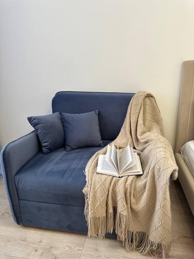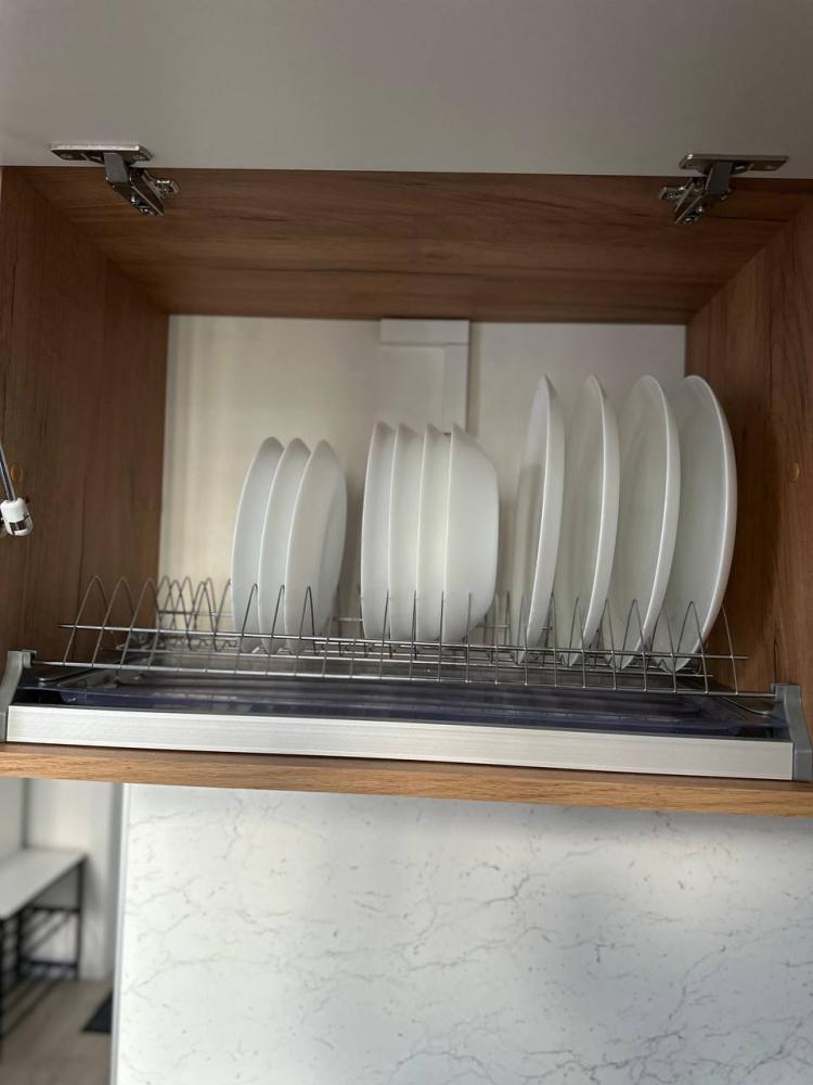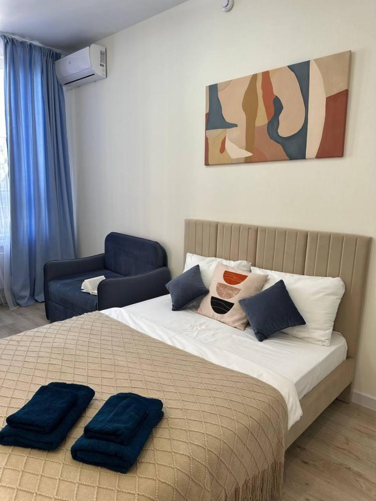 Квартира полностью оборудована бытовой техникой: — Кровать 140*200 см. — Раскладное кресло 100*200 см (укажите количество гостей при бронировании). — SMART TV. — Высокоскоростной Wi-Fi. — Вся необходимая посуда и продукты на первое время. — Развлечения для детей.
